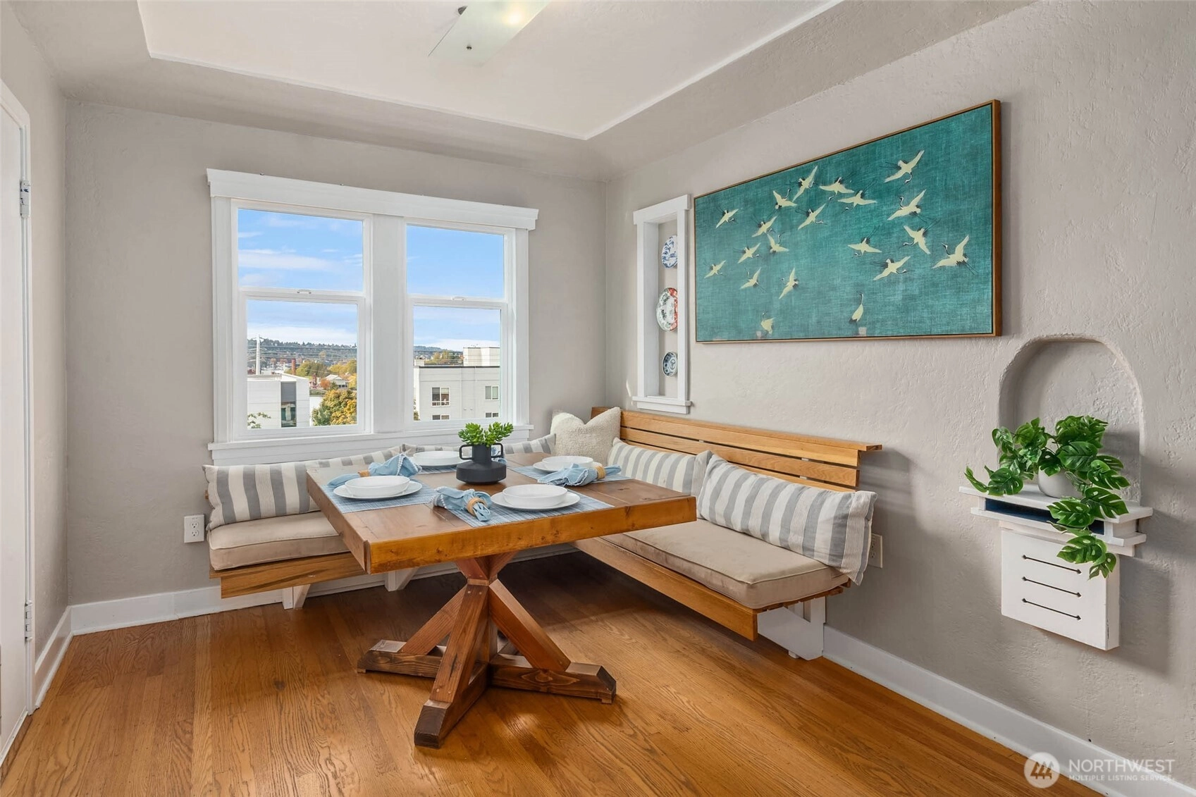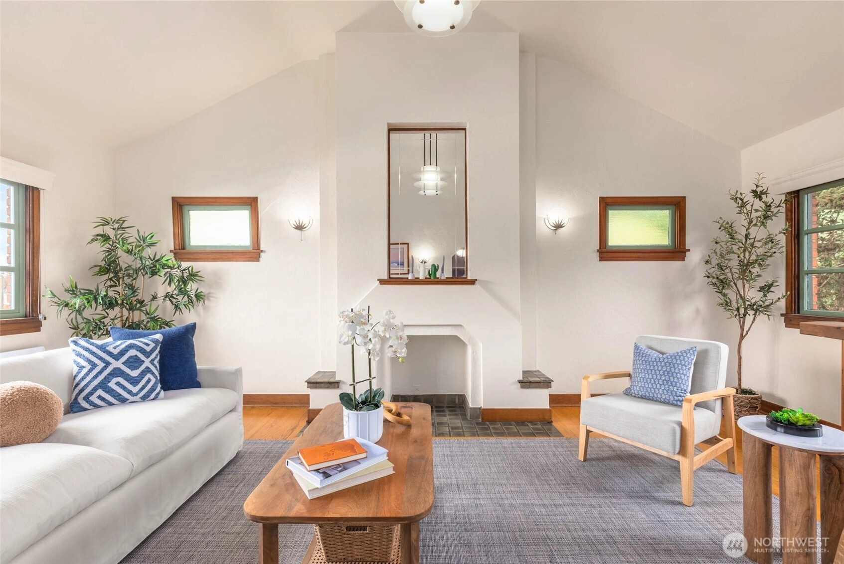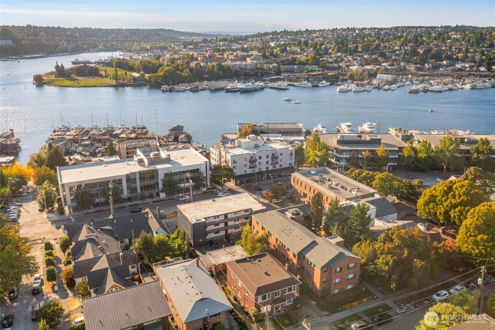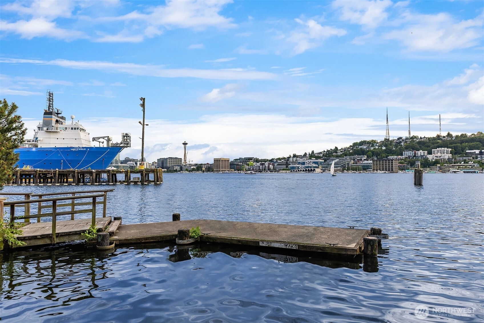 Comfort. Character. Class. Soul. You’ll find it all here in this light-filled one-bedroom penthouse at Eastlake’s stately Castlewood, envisioned by renowned architect Paul Thiry. Vaulted ceilings and three sides of exposure—west, east, and north—flood the home with warmth and timeless charm. Enjoy sweeping lake, city, and Olympic Mountain views, oak floors, a newly remodeled bathroom, vintage lighting, in-unit washer/dryer, private garage, and a massive 15x8' storage room. Impeccably maintained residence in a classic building with a well-run HOA. Enjoy sunsets and fireworks shows from your living room!