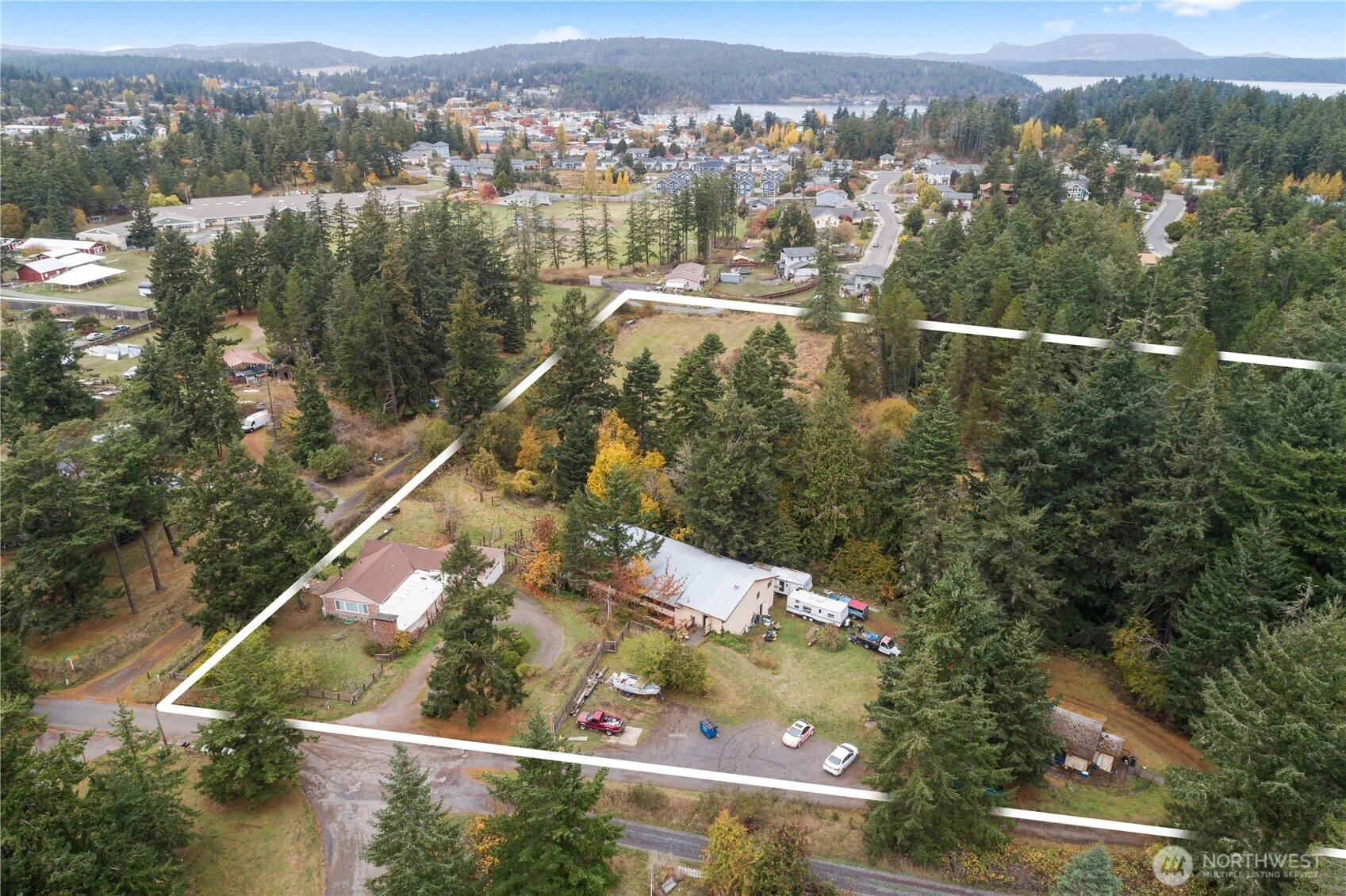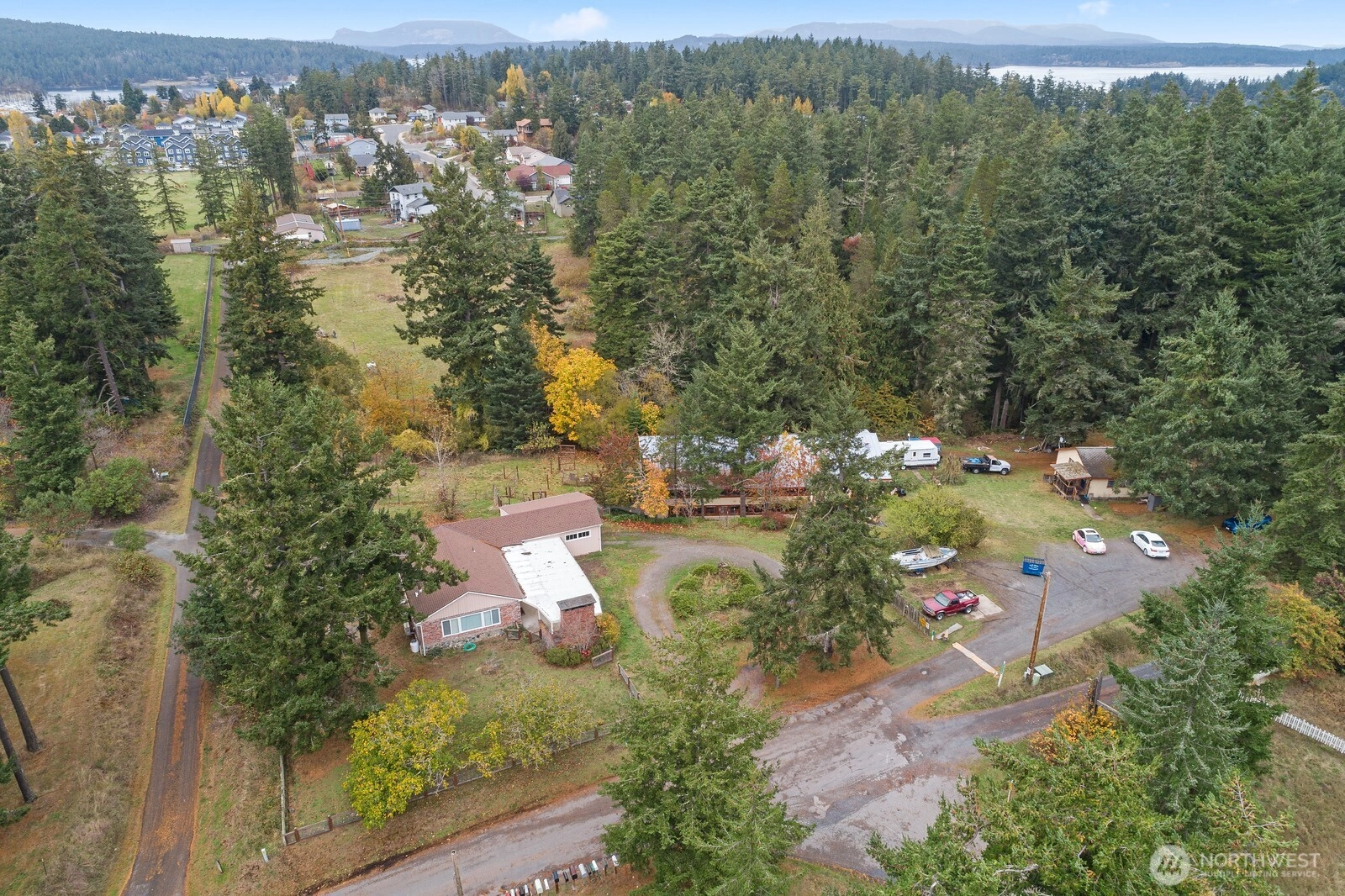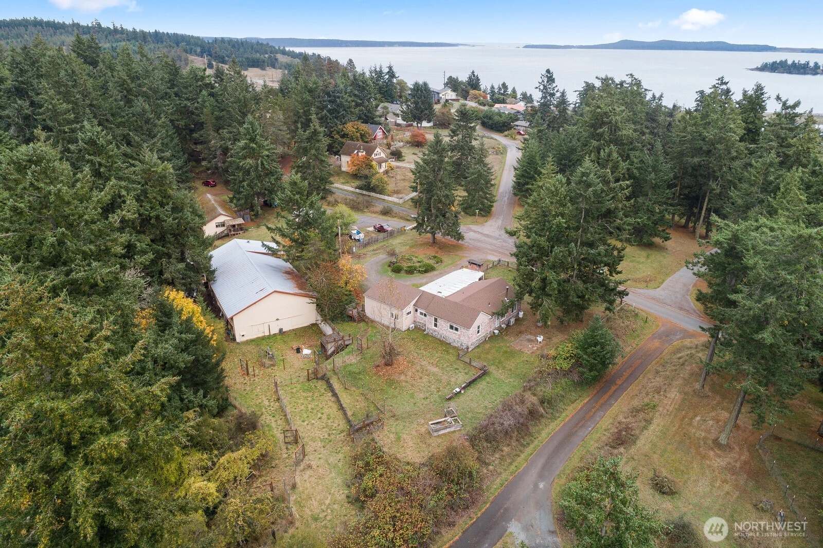 OUTSTANDING OPPORTUNITY in this 6.84 acre parcel, adjacent to town of Friday Harbor, with charming main home, 6000+ sf barn (on 2 levels) PLUS duplex with separate driveway. Town water plus private 2.8 gpm well. Property partially treed plus open pasture. Main home (1199 sf) is remodeled with newer windows and floors, mini-split heat, lovely newer kitchen with granite countertops and propane stove, and elegant marble bathroom with large shower and radiant heated floors. Kitchen has pass through to covered patio with substantial outdoor fireplace. Two car attached garage. Duplex features two 1 bdrm units, each 720 sf. Two separate septic systems. Barn has been used for chickens, goats, storage. So much potential here! Shown by appointment.