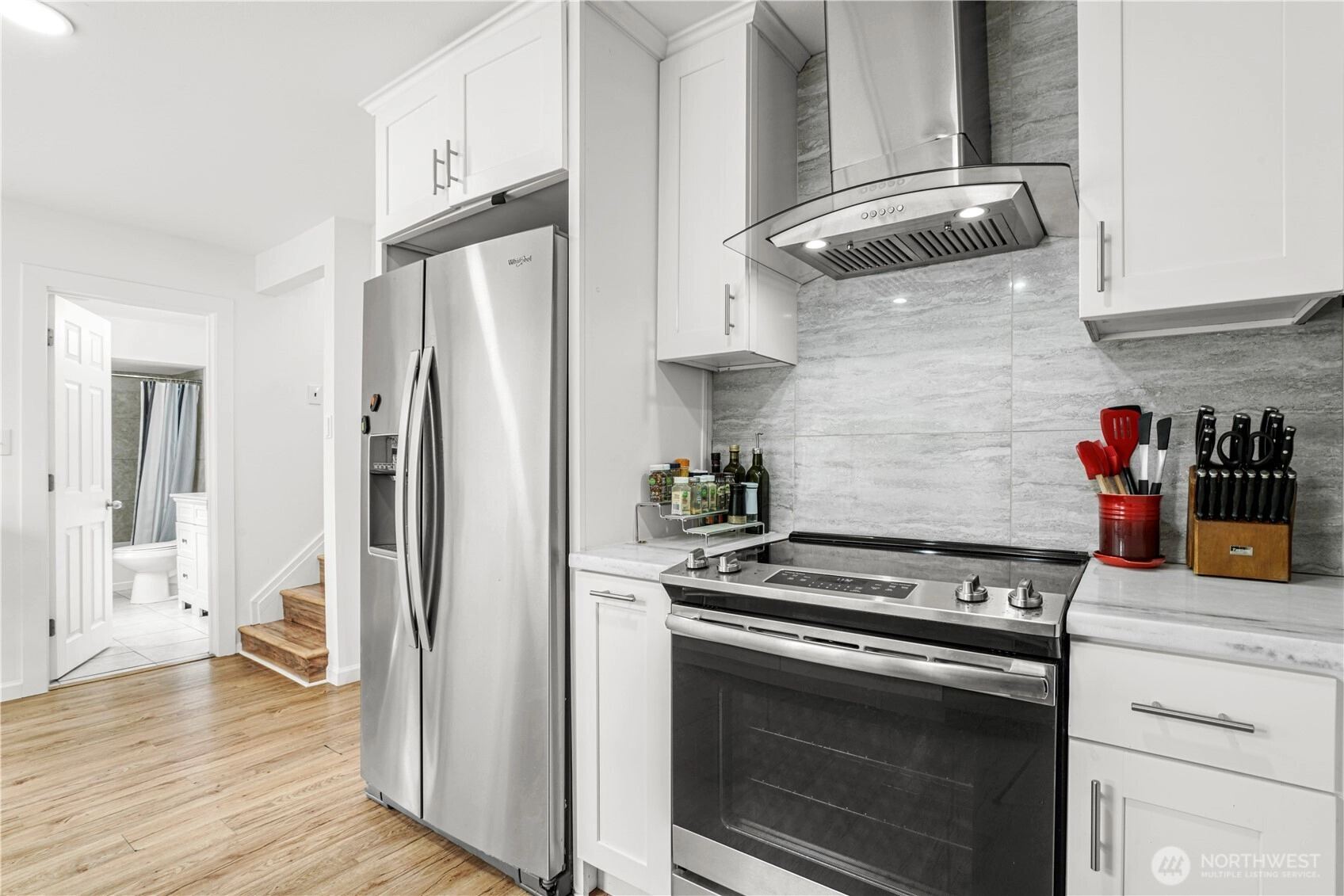 Charming remodeled home in the heart of Crown Hill featuring an open kitchen floor plan and stylish updates throughout. Light-filled living and dining areas flow into a refreshed kitchen with quartz countertops and stainless steel appliances. New flooring on the main, with one bedroom and a full bath on the main floor, plus two bedrooms and another full bath upstairs. Thoughtful upgrades inside and out over the years, including fresh interior paint in June 2025. Fully fenced level yard with an updated deck,perfect for relaxing or entertaining. Nestled on a quiet street with easy access to Ballard, Green Lake, and everyday amenities. Just minutes from Shilshole Marina, Golden Gardens, Woodland Park Zoo, and top-rated schools. Move-in ready!