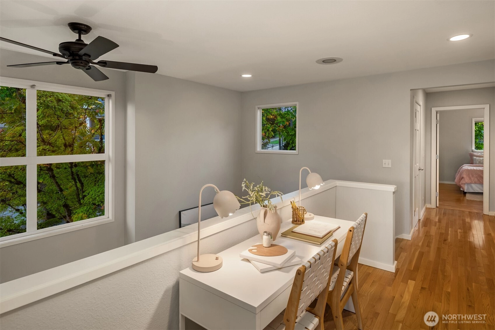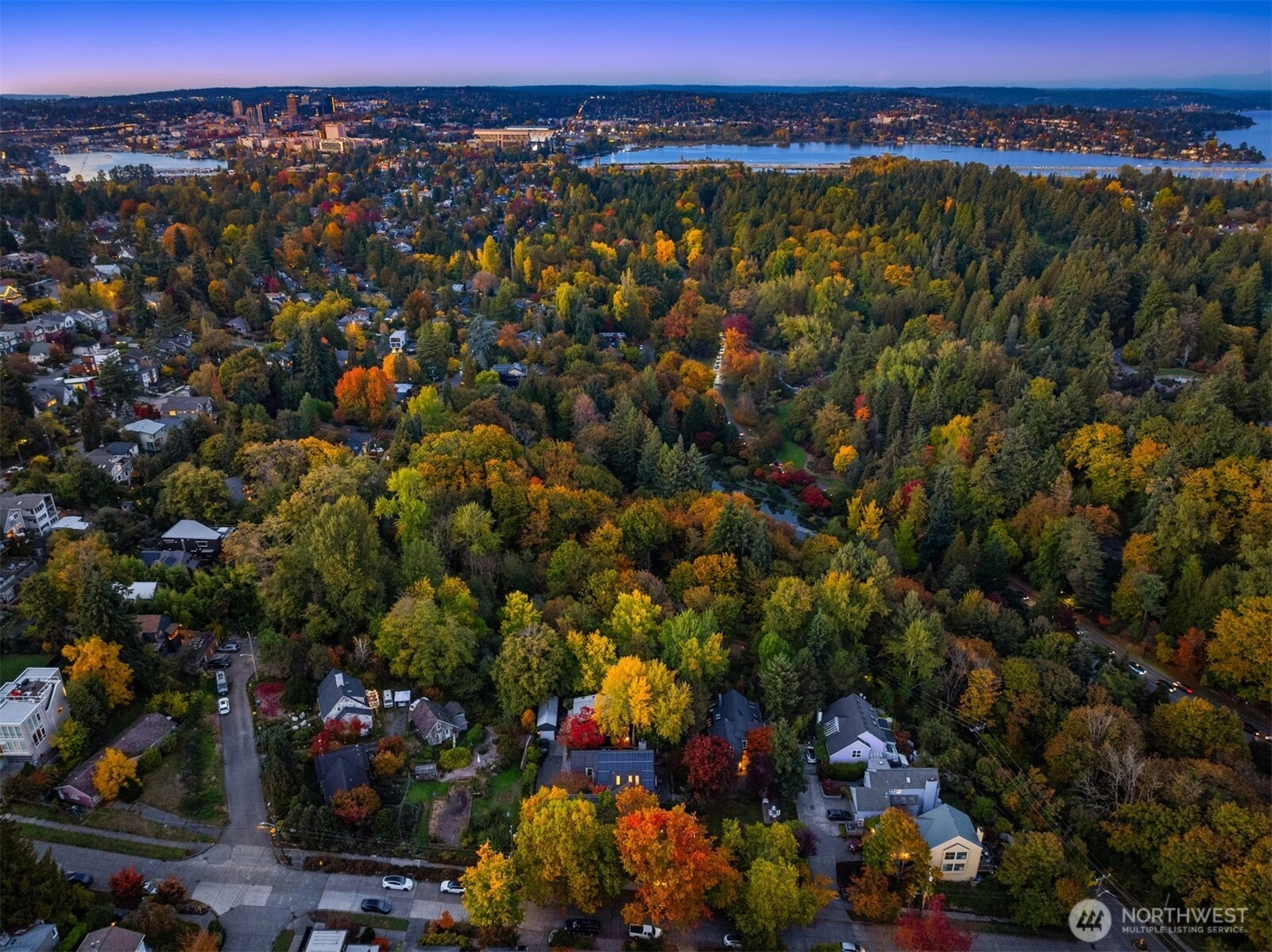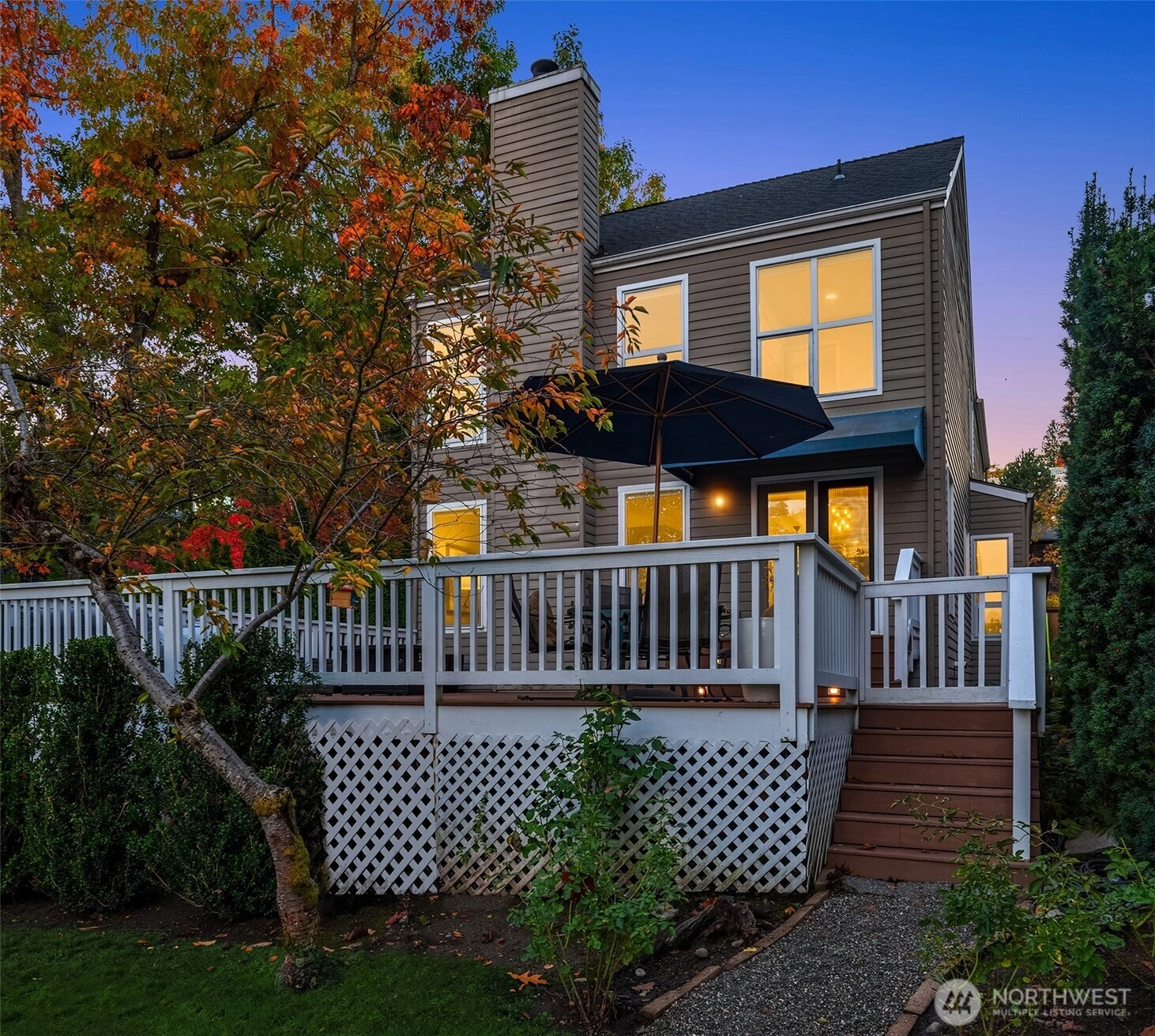 Beautifully maintained NW modern on enviable corner lot in Montlake's Arboretum. The main level features a grand, open floor plan ideal for daily living and entertaining anchored by a chef's kitchen/great room with modern styling. The dining space opens to a spacious deck and attached, deeded, shared lawn, which is fully-fenced, offering a private-park-like setting. The upper level is highlighted by a primary suite and bath with double-sink vanity and ample closet space. Two additional bedrooms and shared bath offer an ideal upper level layout. Rare, two-car garage with new door/equipment, ideally situated near the Arboretum and just blocks from the Madison Valley shops and restaurants.