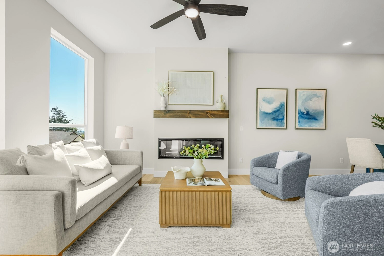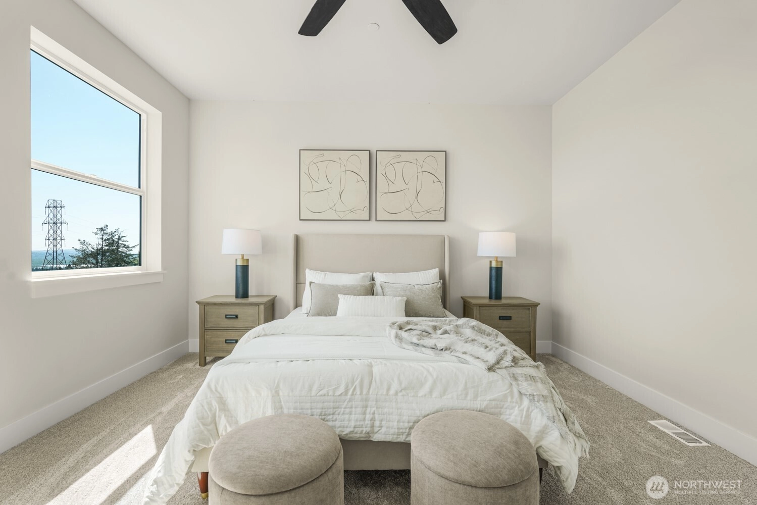 Build your portfolio or project w/ less reliance on traditional lenders. Brand-new 4-bedroom, 3-bath home on extra deep lot w/ views of Columbia River & hills. Open-concept w/ elegant kitchen w/ quartz countertops, custom cabinetry & SS appliances. Great room offers space to relax or entertain, w/ fireplace & windows framing views. Main level bedroom & full bath for guests or home office. Upstairs primary suite w/ views, walk-in closet, dual quartz vanities, water closet & tile shower. Two more bedrooms & full bath complete upper level. Outside w/ covered deck. Deep backyard w/ room to garden. Highlights include wine storage in garage, modern finishes & established neighborhood with no HOA. Minutes from amenities & excellent schools.