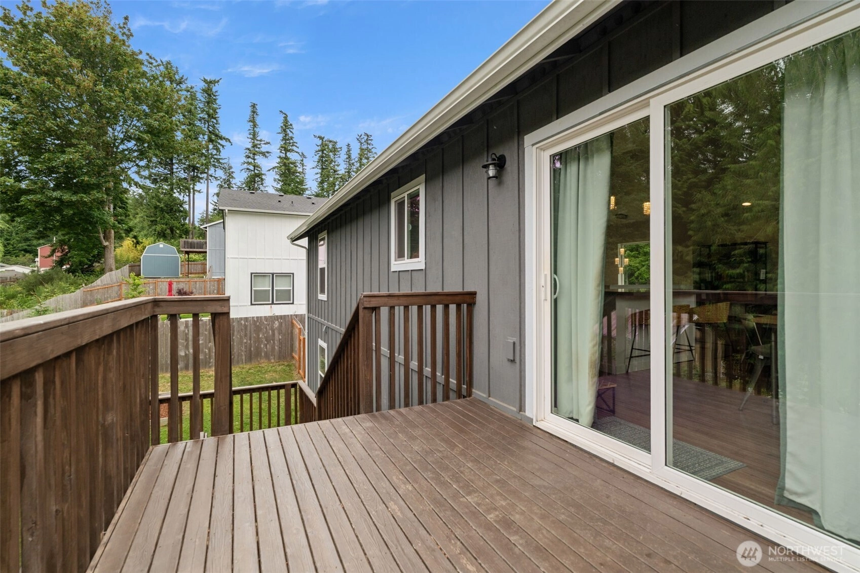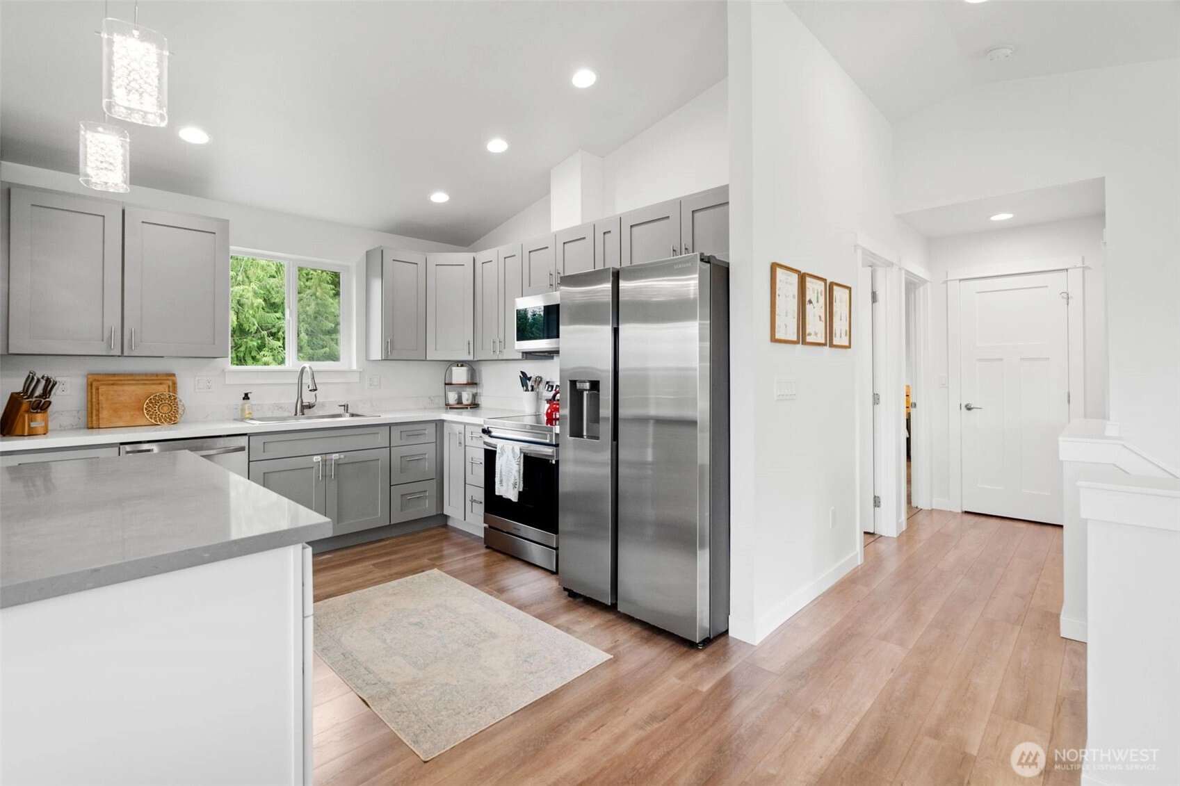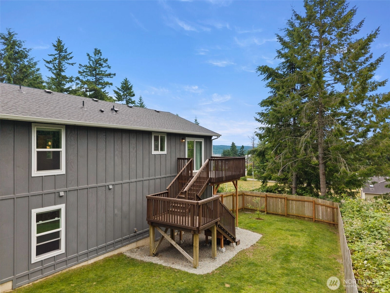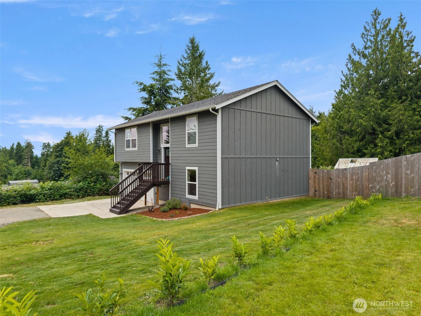 Welcome to this nearly new gem in sunny Port Ludlow! Minutes from the Hood Canal Bridge in the Trails End community, this beautifully built, modern split-level home offers 3 bedrooms, 2 baths, & 1,849 SF of stylish living space on a fully-fenced, oversized lot. Set well back from the road, it offers privacy, all-day sun, & a peek-a-boo view of the Hood Canal & Mt Rainier. Inside, you’ll find vaulted ceilings, luxury vinyl plank flooring, & an open-concept layout that flows effortlessly to a huge entertainment deck—perfect for summer barbecues or peaceful mornings. Enjoy the quiet of the neighborhood while being just 10 mins from 3 waterfront parks and 15–20 mins from Chimacum, Kingston and Poulsbo. Home inspection available - move-in ready!