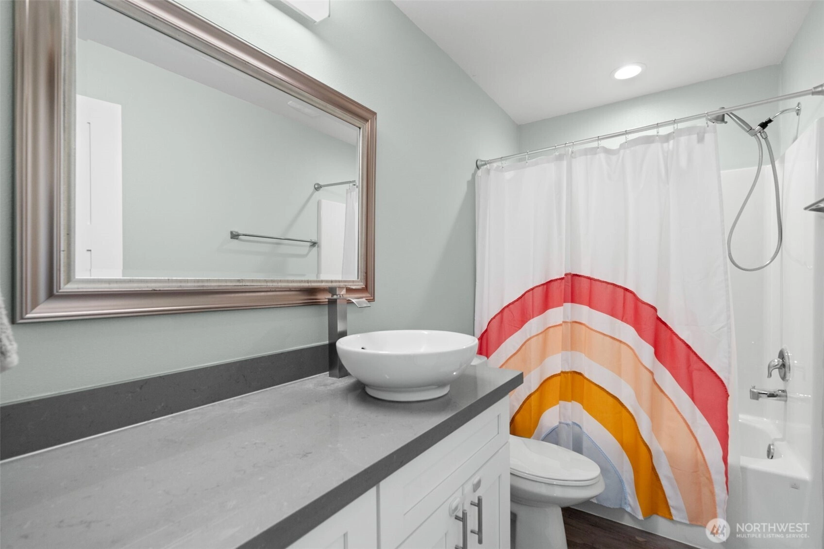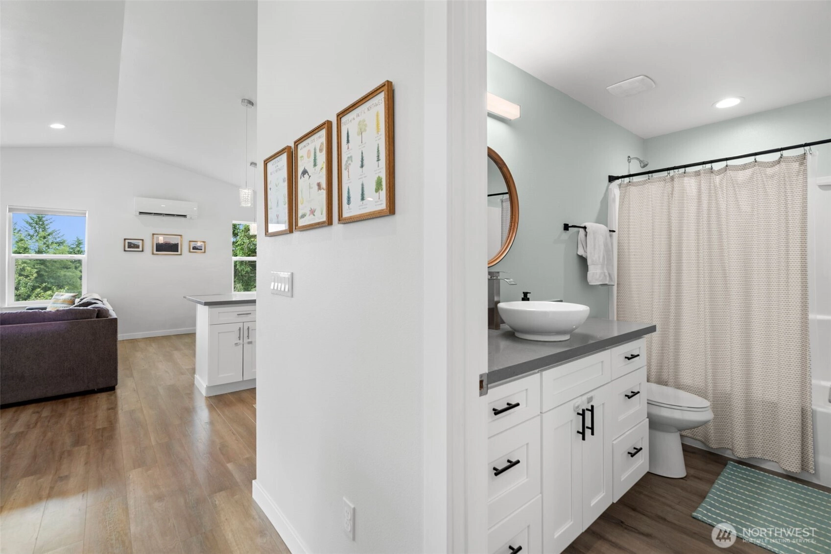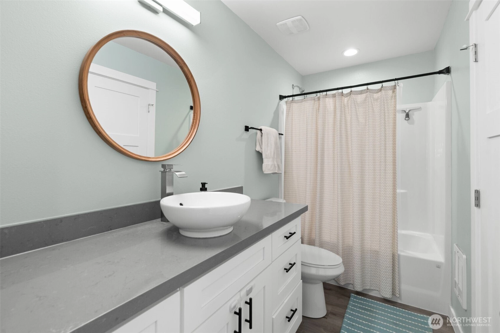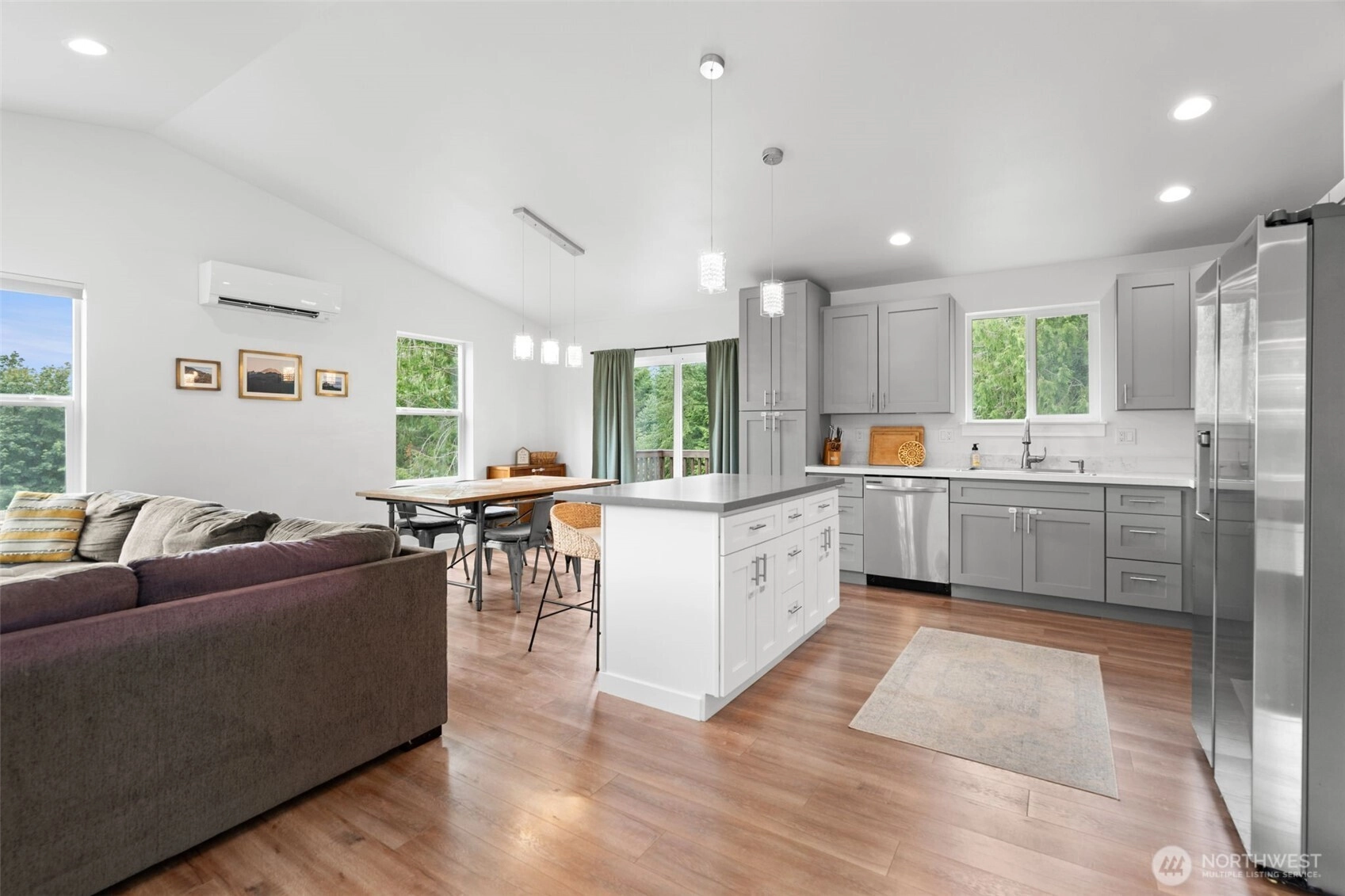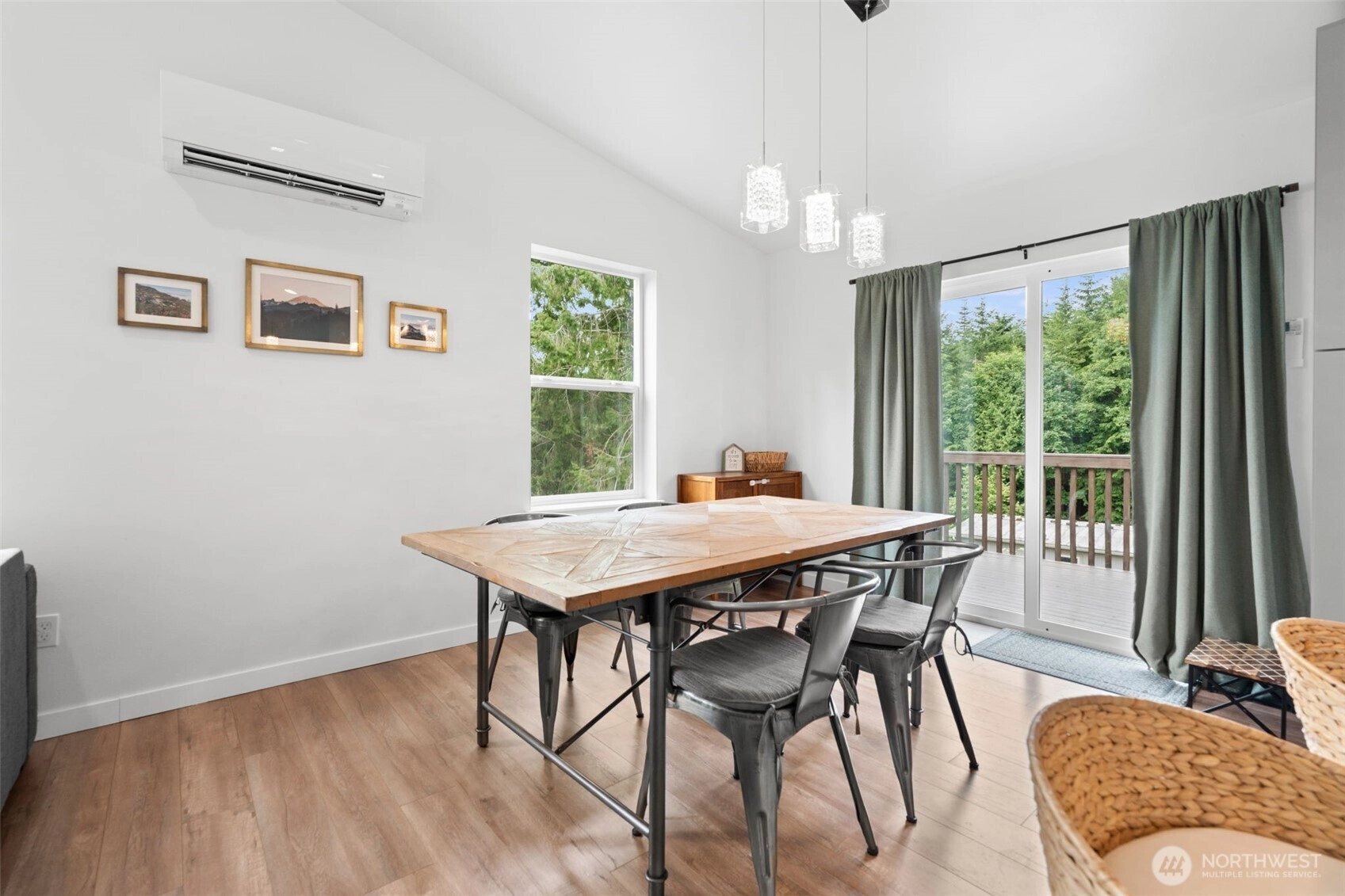 Welcome to this nearly new gem in sunny Port Ludlow! Minutes from the Hood Canal Bridge in the Trails End community, this beautifully built, modern split-level home offers 3 bedrooms, 2 baths, & 1,849 SF of stylish living space on a fully-fenced, oversized lot. Set well back from the road, it offers privacy, all-day sun, & a peek-a-boo view of the Hood Canal & Mt Rainier. Inside, you’ll find vaulted ceilings, luxury vinyl plank flooring, & an open-concept layout that flows effortlessly to a huge entertainment deck—perfect for summer barbecues or peaceful mornings. Enjoy the quiet of the neighborhood while being just 10 mins from 3 waterfront parks and 15–20 mins from Chimacum, Kingston and Poulsbo. Home inspection available - move-in ready!