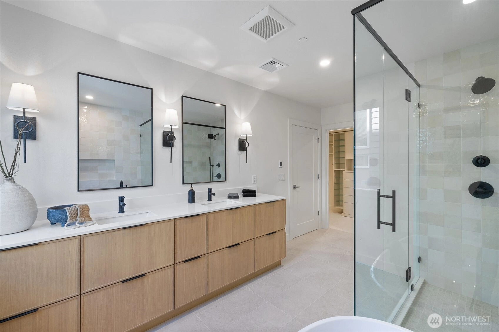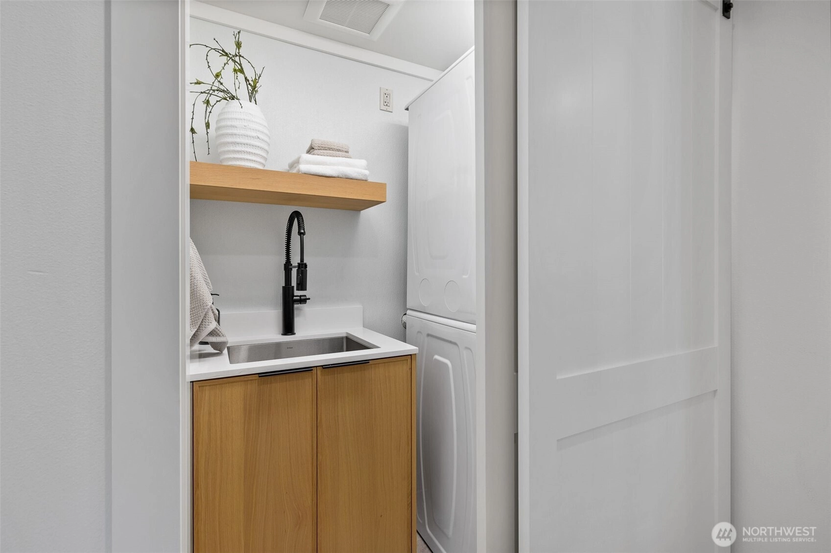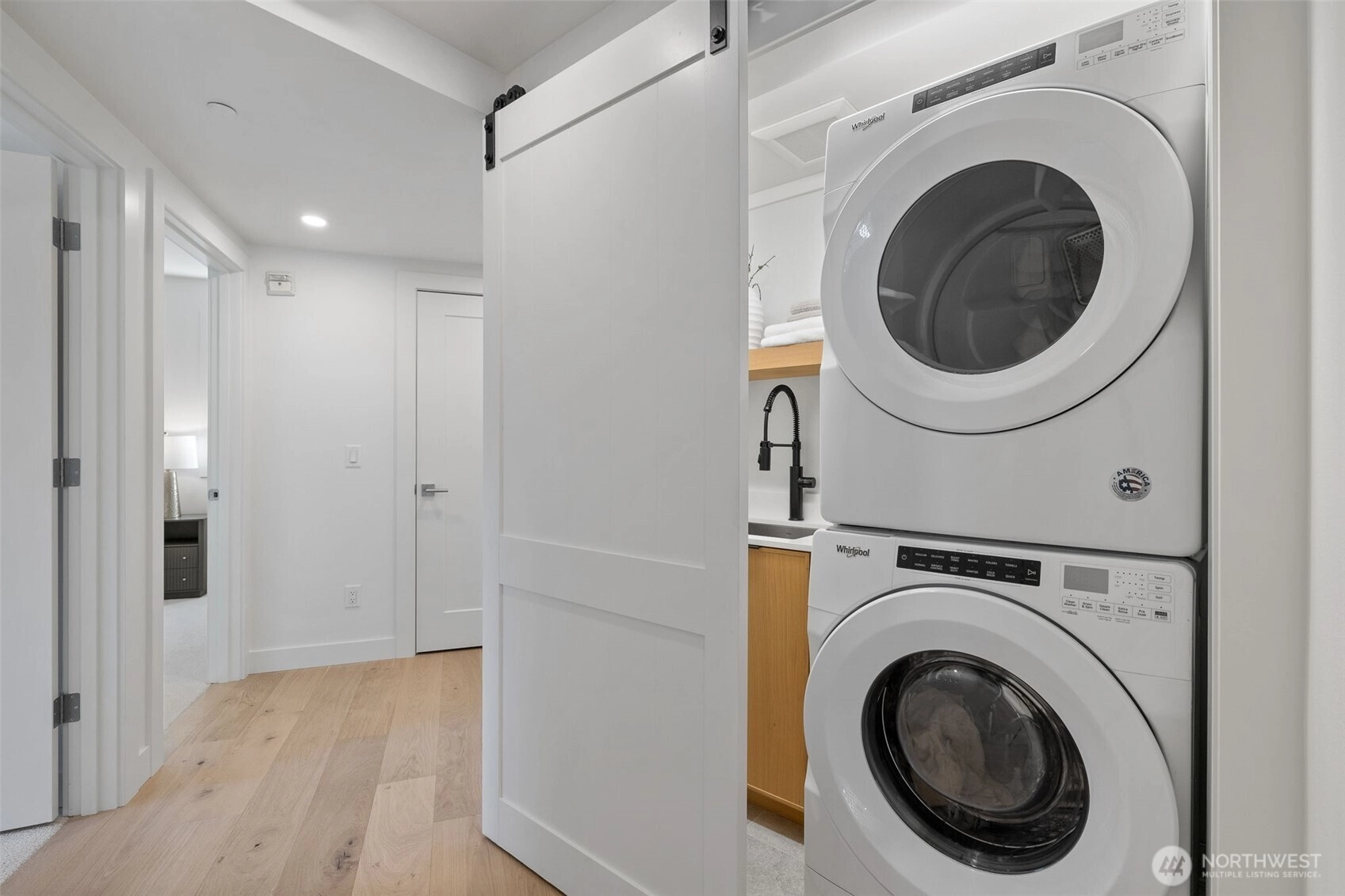 Modern Luxury in the Heart of Kirkland. Rare, fully remodeled condo steps from Kirkland’s marina, shopping, dining, parks. Every inch of this home was reimagined in 2025 by a prof designer to create a stunning blend of style, sophistication, and comfort. This bright, 3-bedroom, 2.5-bath residence features an open layout w/ walls of windows, sleek gas frplc, & large island, perfect for entertaining. The chef’s kitchen impresses w/ hi-end appliances, granite counters, & custom cabinets. Primary suite is it's own private retreat, w/ a spa-inspired bath. Soaking tub, modern shower, heated floors, & huge walk-in closet. Main floor unit of an exclusive 4-Unit building, elevator access from secure garage, 2 parking spaces, & private storage unit.