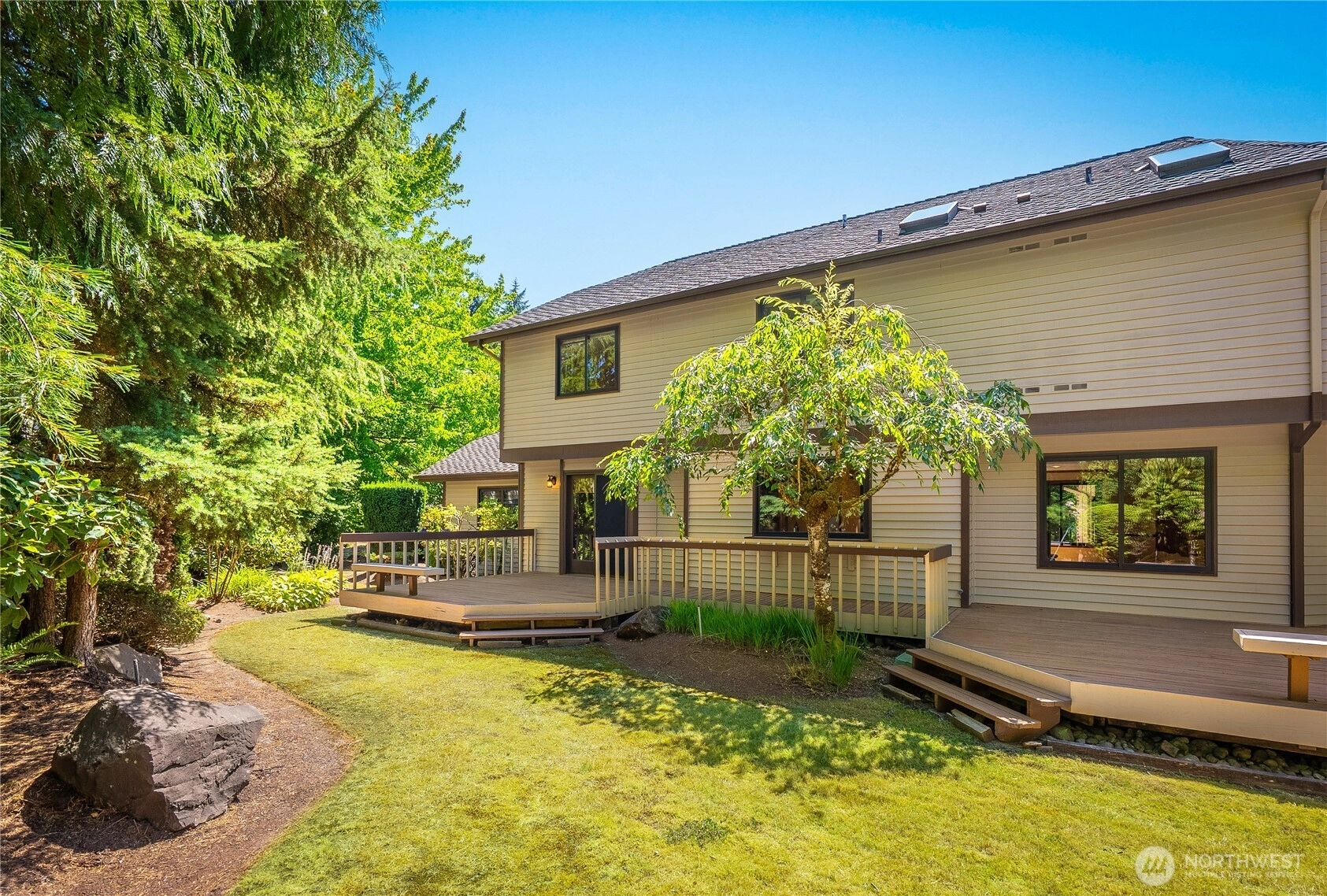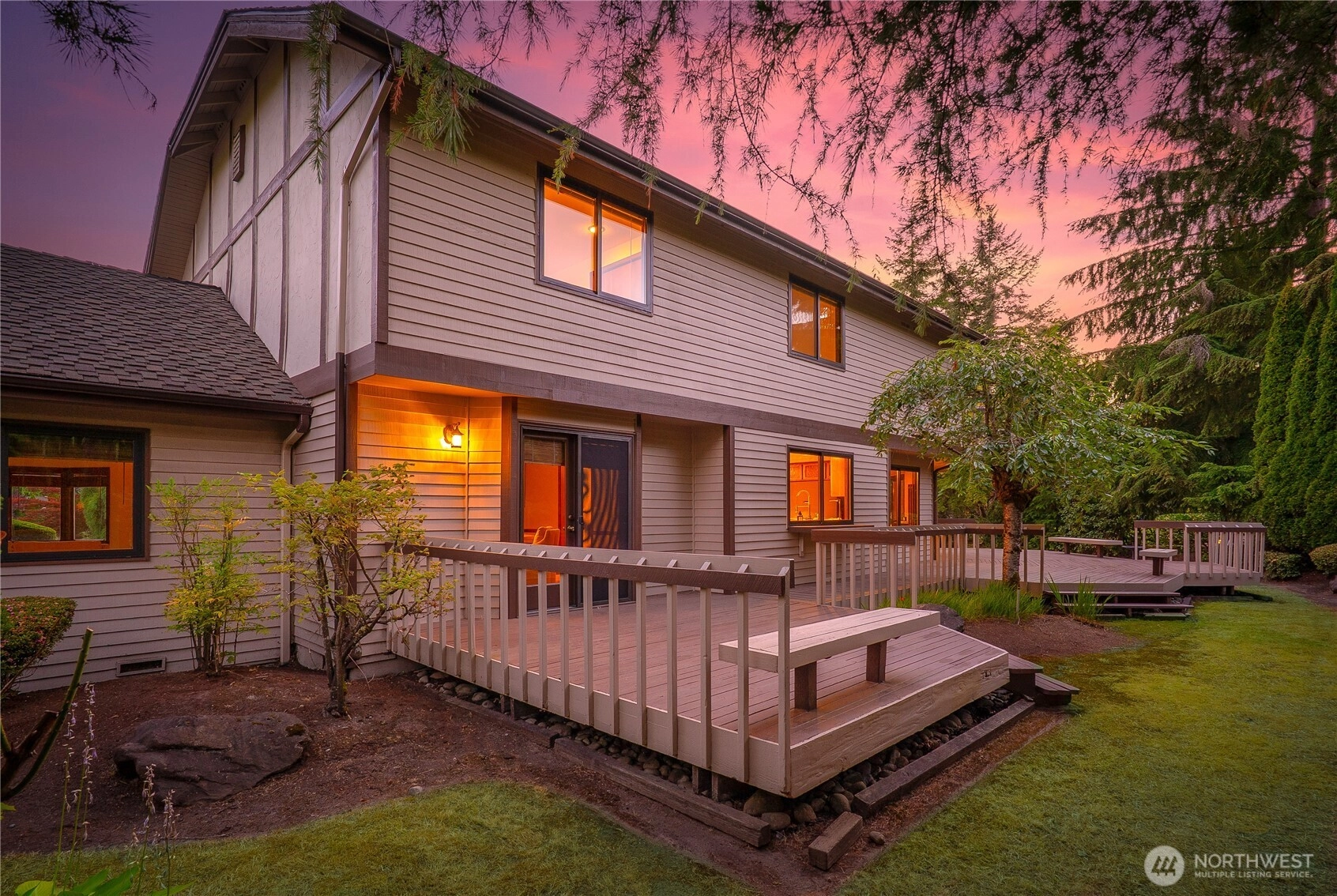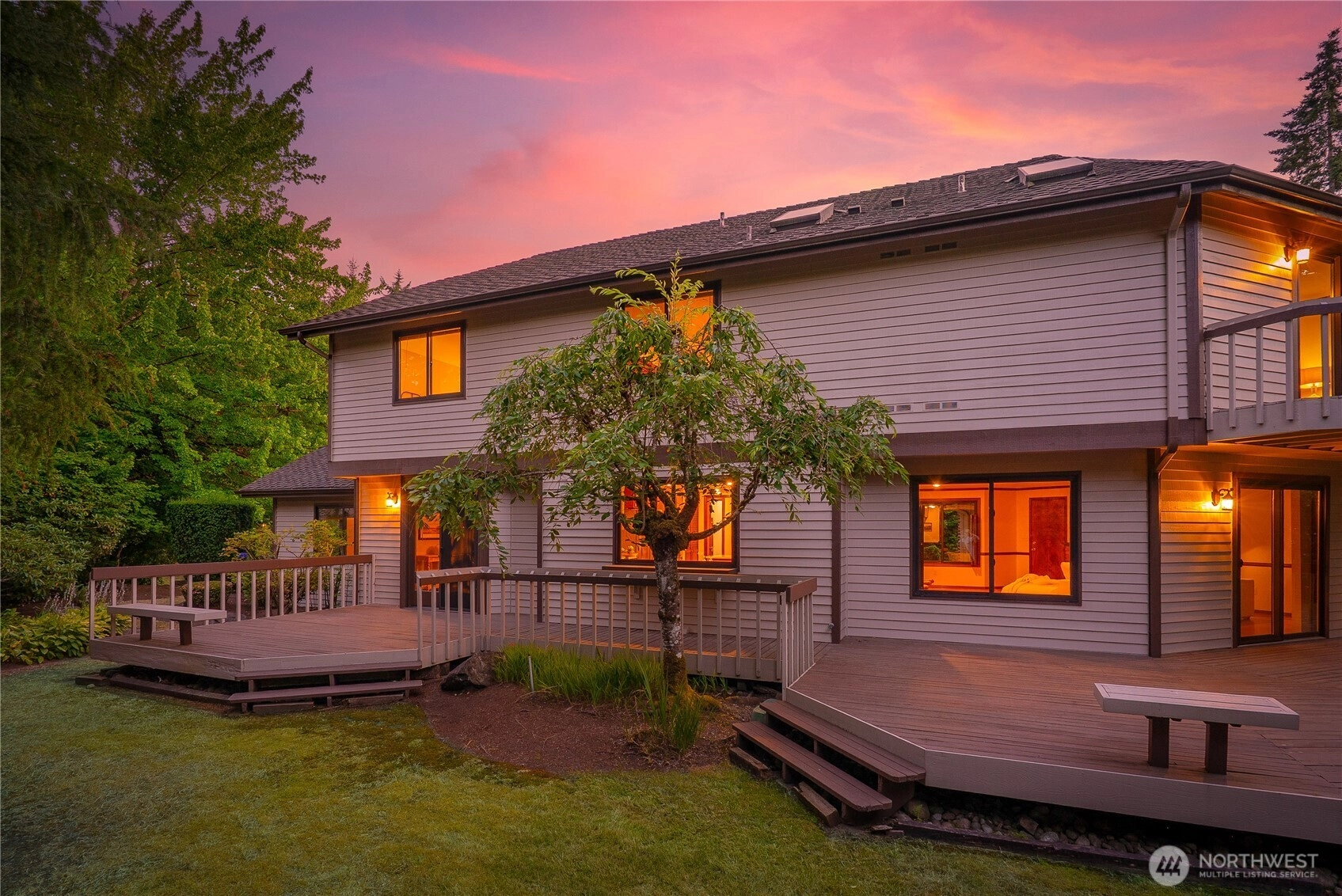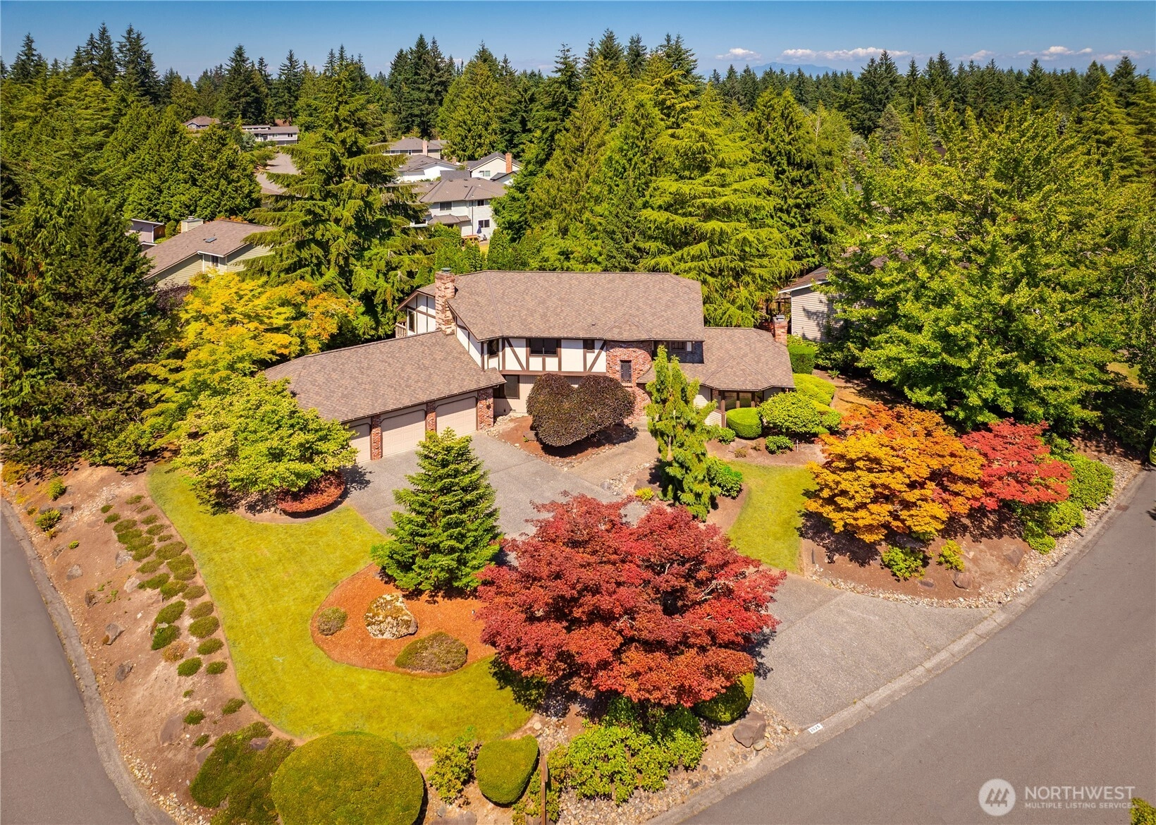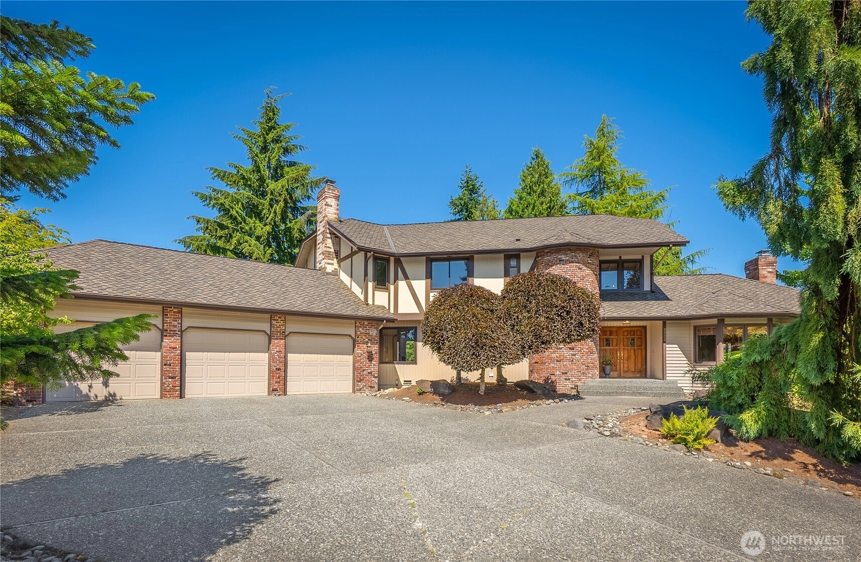 [VINE MAPLE IN THE MILL CREEK COUNTRY CLUB] Stately home majestically positioned on elevated grounds with a commanding presence. Old World Tudor style seamlessly blends timeless architecture with modern conveniences. The crown jewel is the stunning brick turret with lead-paned window, a testament to exceptional quality & craftsmanship. Copper fireplace serves as elegant focal point. Chef's kitchen with quartz counters & KitchenAid appliances. Rich hardwood floors & wood-wrapped black-framed windows (2022). Primary Suite with private balcony. Landscaped grounds & large deck for entertaining. Presidential roof (2017). Near award-winning schools, community parks, trails, tennis, pool, golf & vibrant Mill Creek Town Center. [ELEVATED ELEGANCE]