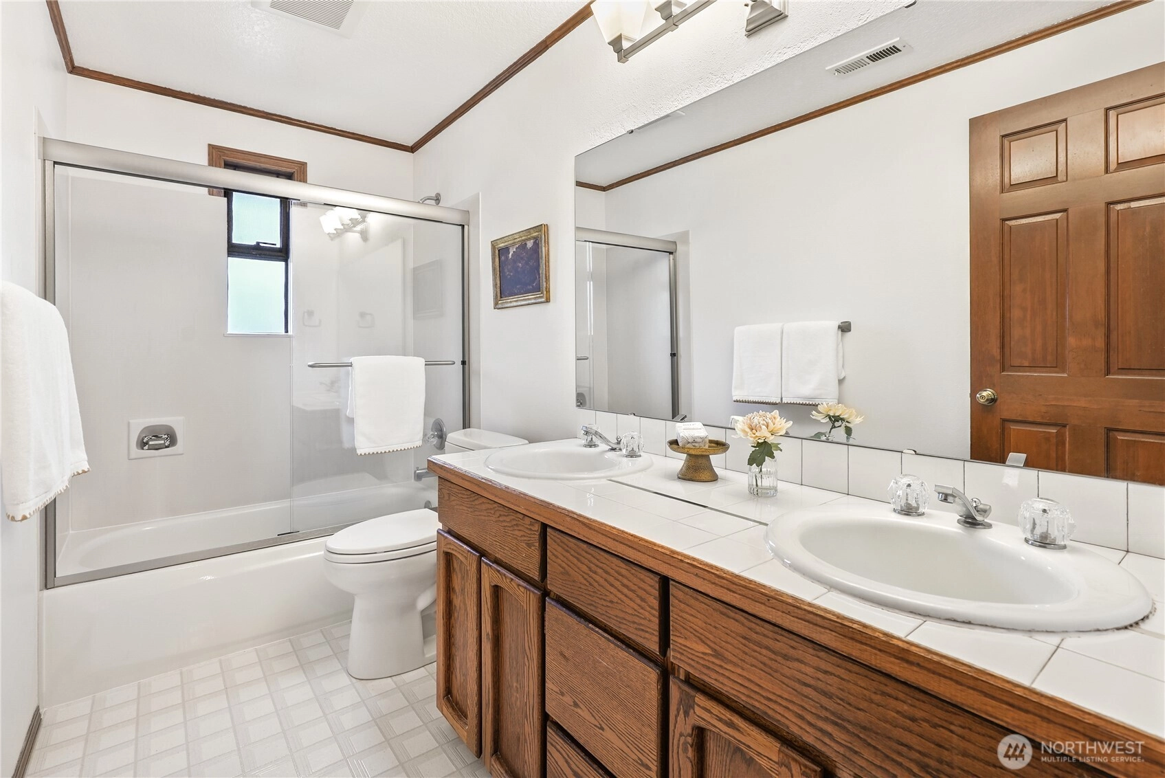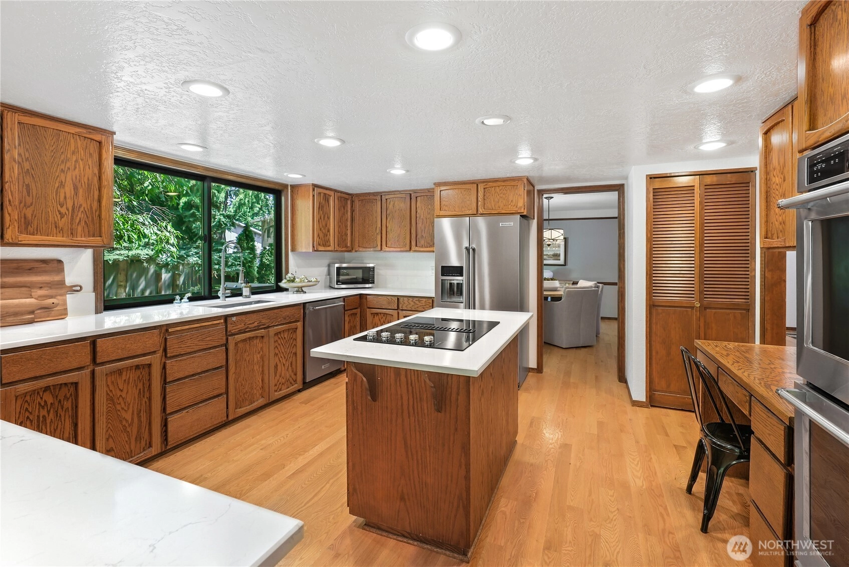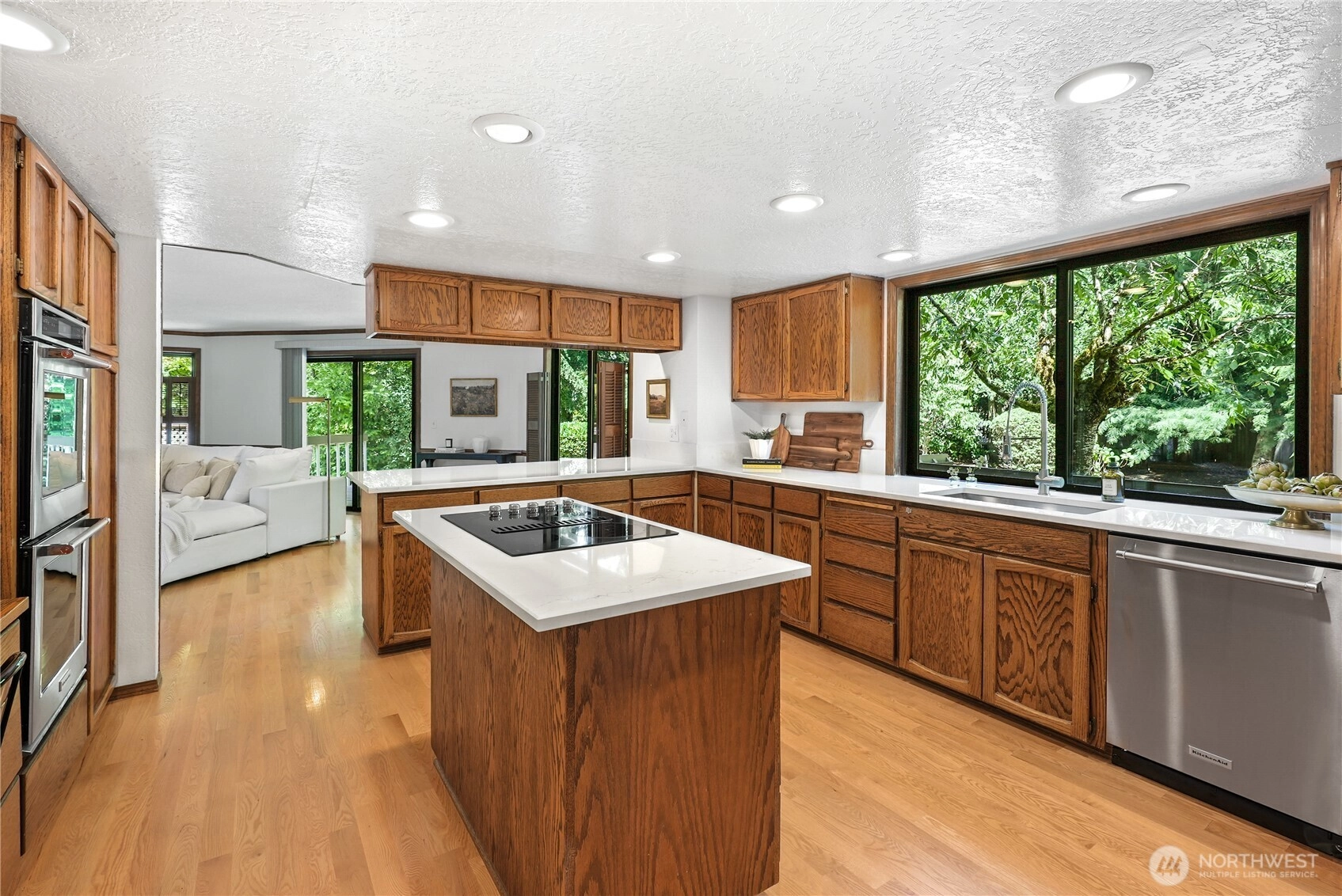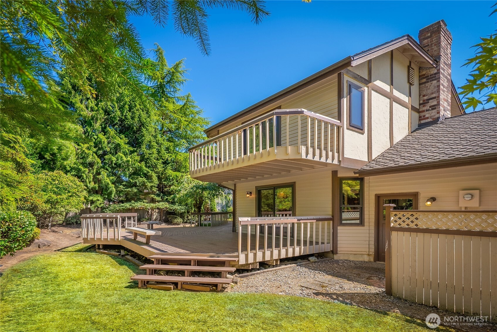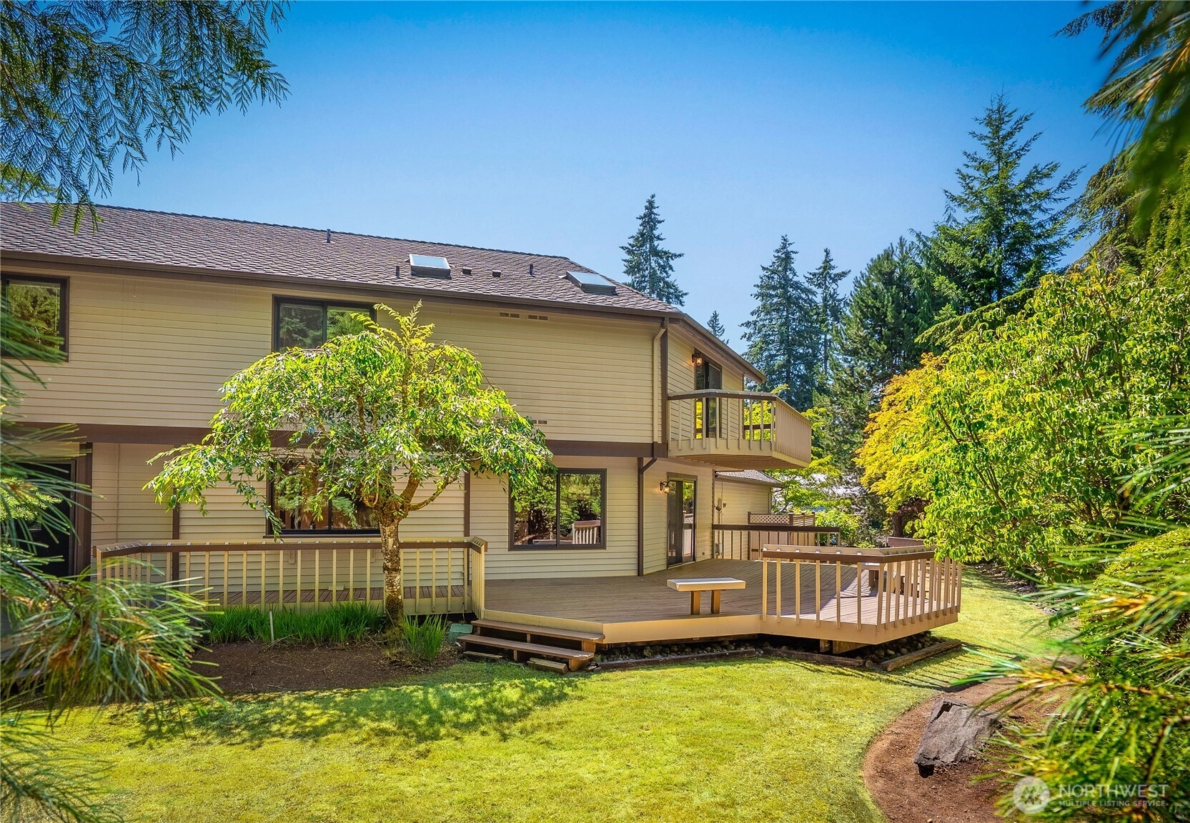 [VINE MAPLE IN THE MILL CREEK COUNTRY CLUB] Stately home majestically positioned on elevated grounds with a commanding presence. Old World Tudor style seamlessly blends timeless architecture with modern conveniences. The crown jewel is the stunning brick turret with lead-paned window, a testament to exceptional quality & craftsmanship. Copper fireplace serves as elegant focal point. Chef's kitchen with quartz counters & KitchenAid appliances. Rich hardwood floors & wood-wrapped black-framed windows (2022). Primary Suite with private balcony. Landscaped grounds & large deck for entertaining. Presidential roof (2017). Near award-winning schools, community parks, trails, tennis, pool, golf & vibrant Mill Creek Town Center. [ELEVATED ELEGANCE]