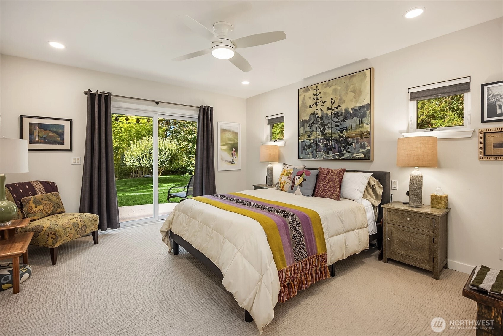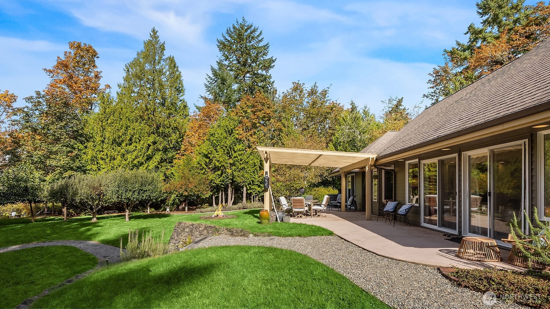 Private, elegant island retreat on 1+ acres beckons via a winding drive. Beautifully sited home with gracious room sizes; 1 level living plus flex space. Soaring ceilings, and attention to detail are hallmarks of this very special custom home. Built-ins enhance a spacious den and overlooks a west facing patio and pergola. Light pours in from windows overlooking a beautiful, peaceful back yard with multiple “rooms” offering tranquil reflection. An unfinished sunroom or a sweet shed in the rear of the property are perfect for creating art or gardening. Radiant heat throughout, incl garage. Adjacent to 7 acres of public land, w beach access just 6 min on Veterane trail. So much potential! Existing 4 BR septic offers capacity for future ADU.