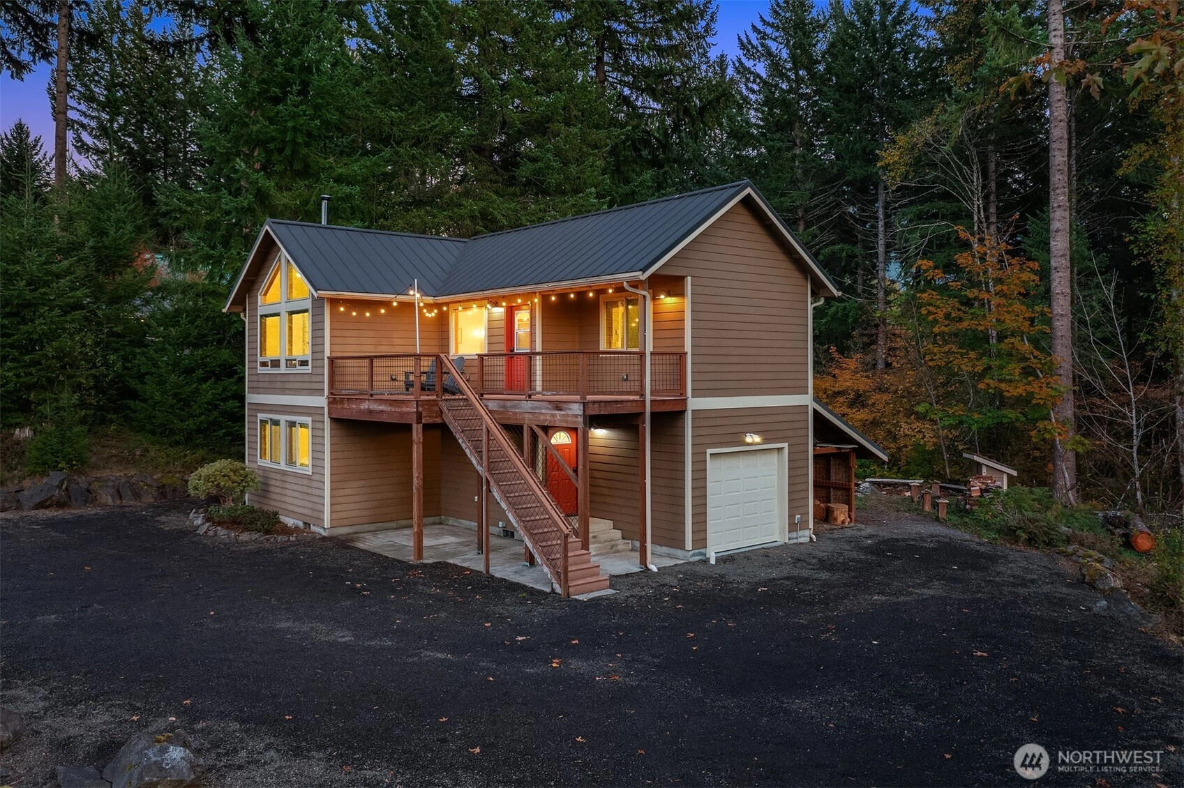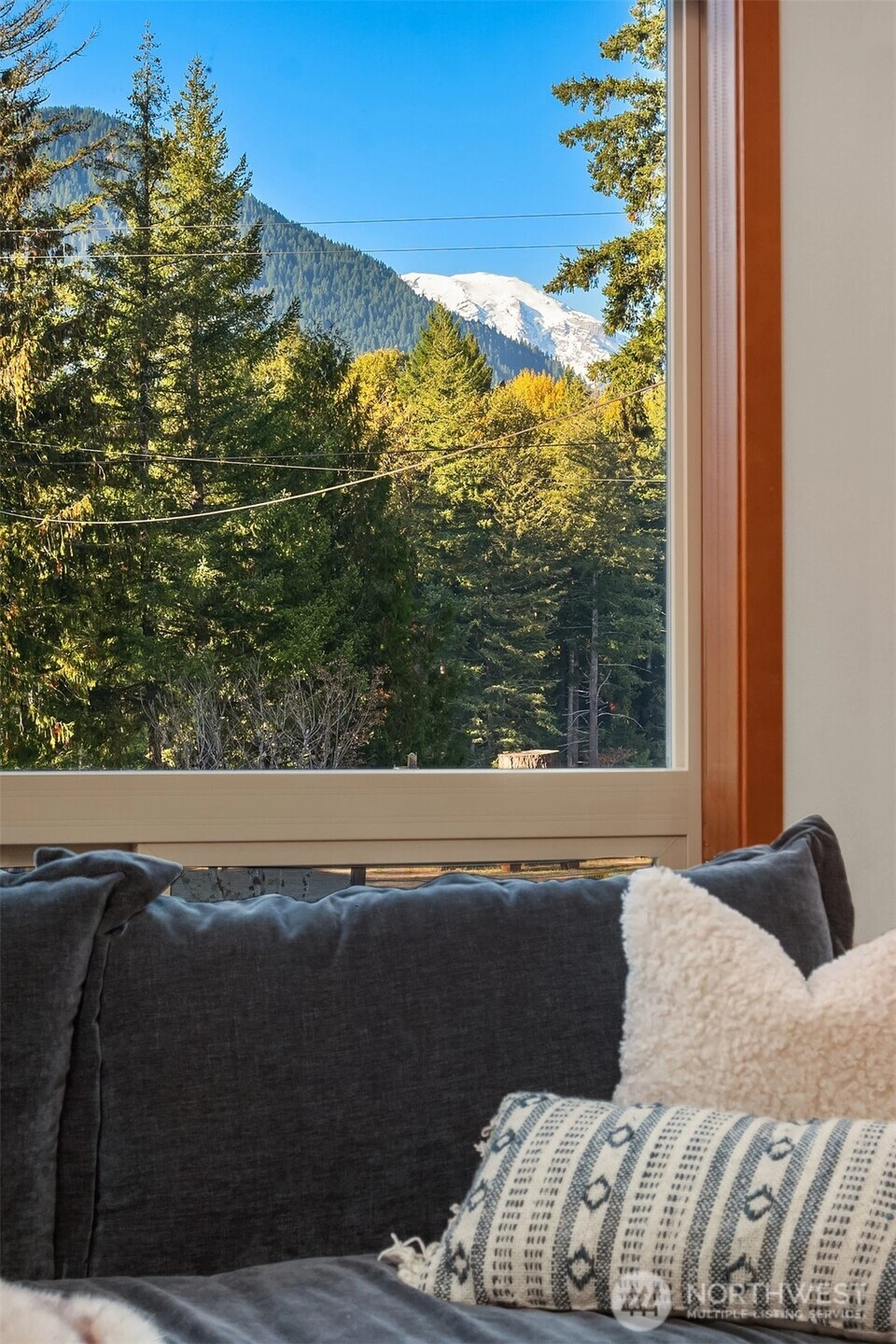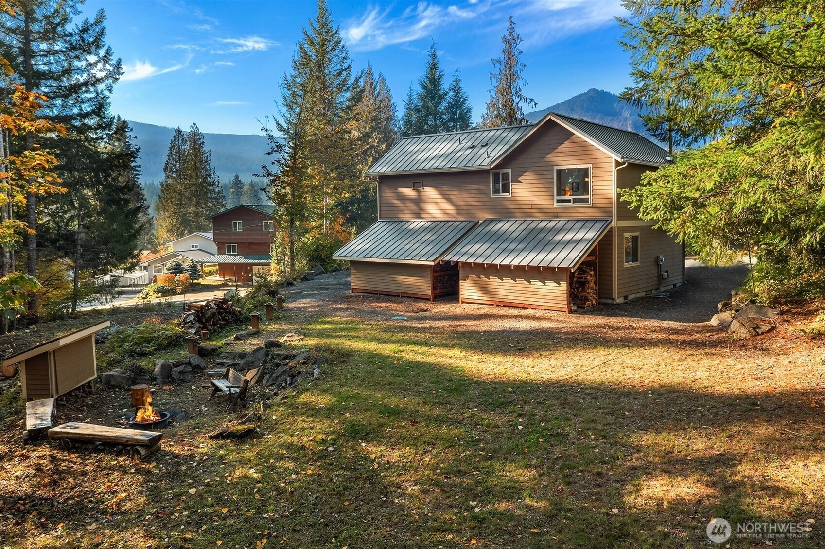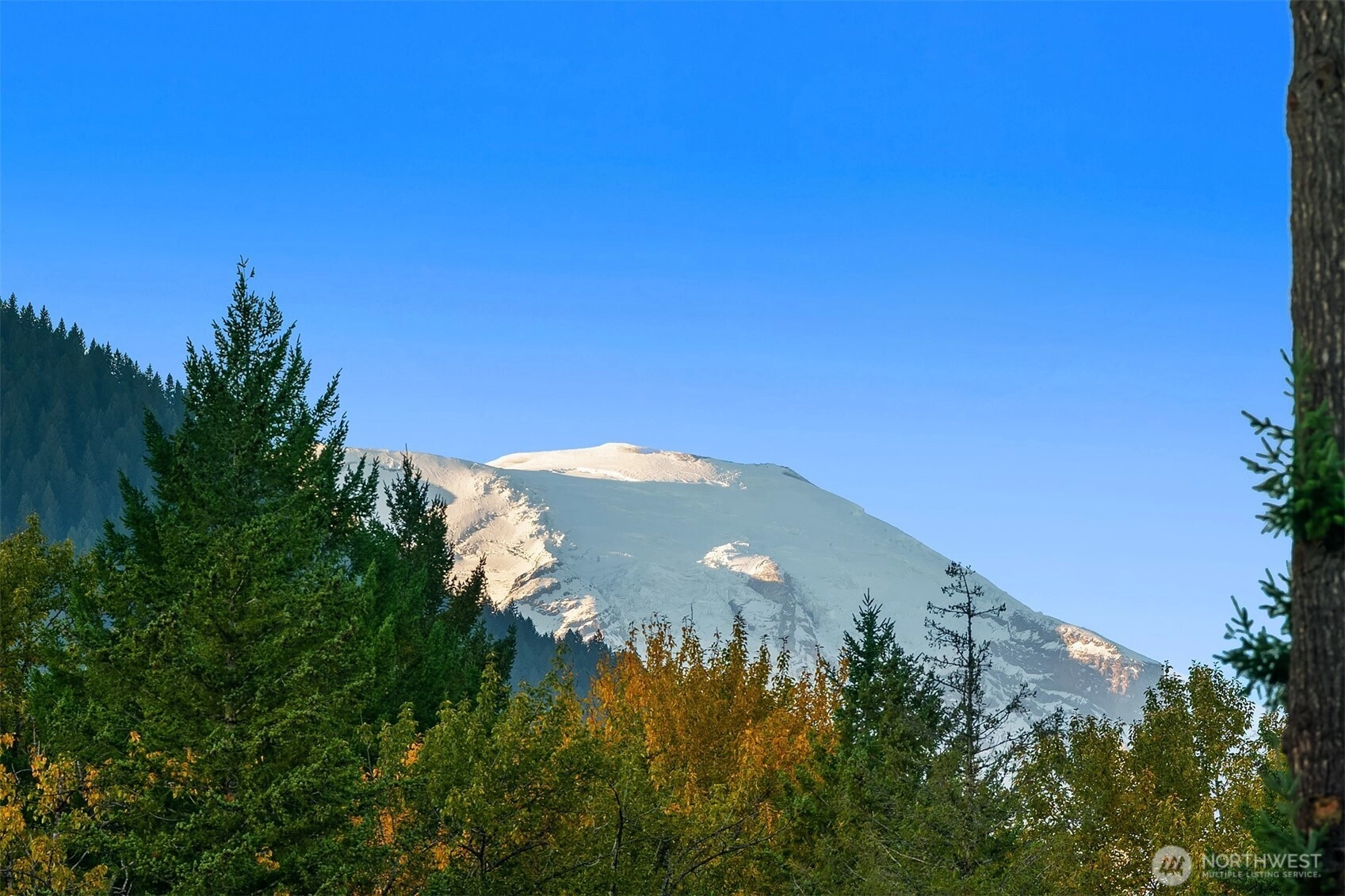 Turnkey 2011-built cabin with expansive views of Mt. Rainier, Butter Peak, and the Tatoosh Range, located in the popular Skyline neighborhood, a quarter mile from the dining and shopping of Packwood's town center. You'll love the open concept upper level with lofted beam ceilings. Prepare a meal with friends while the wood burning stove creates an incredibly relaxing cabin vibe. With a bed, bath, and gathering room on each floor, and a 3-bed septic, there is plenty of room for the whole crew. Built for durability with a metal roof and cement plank siding. Store gear for all seasons in the mini-garage. Follow the lighted path and gather around the outdoor firepit. Tons of firewood included in two massive fire sheds and sold mostly furnished.