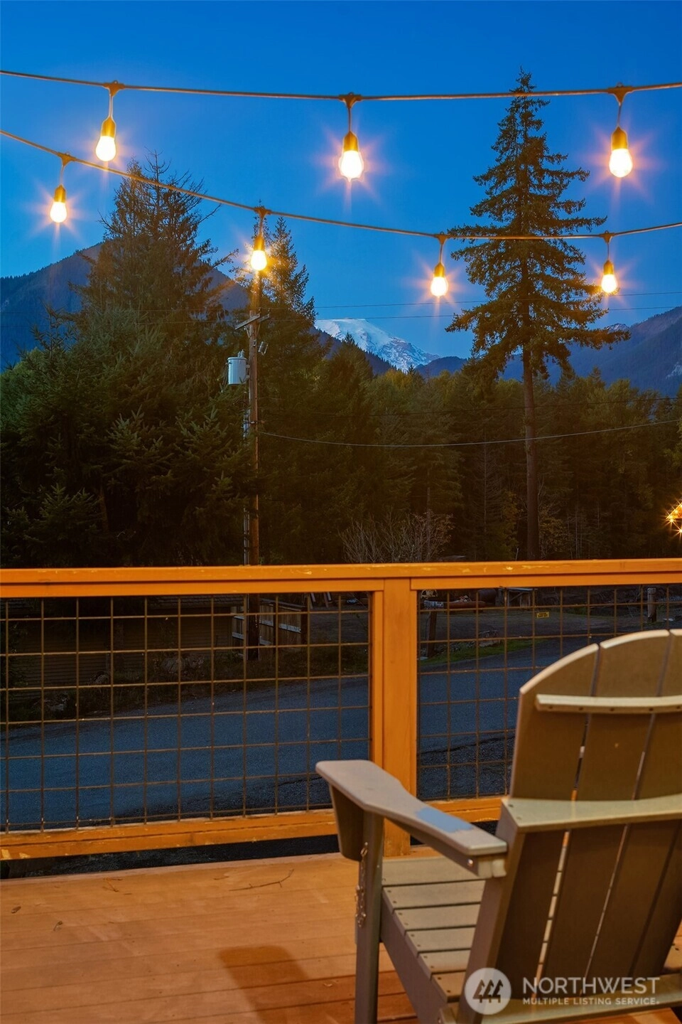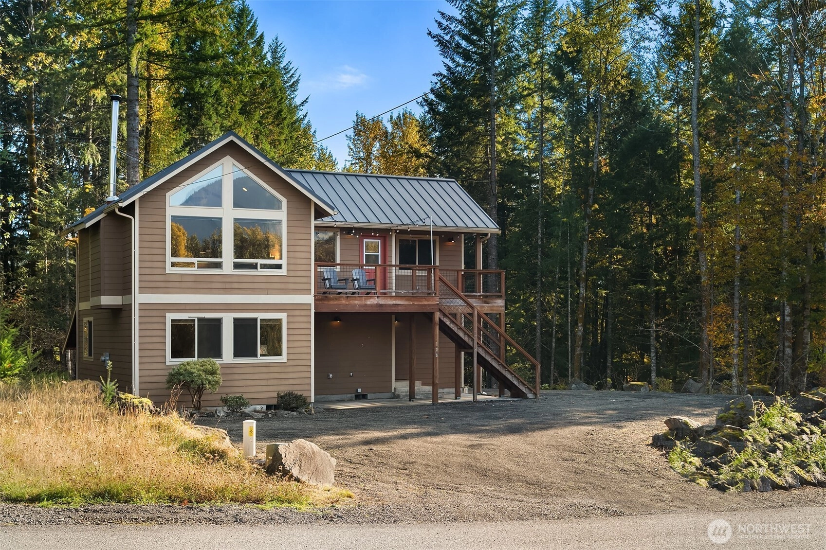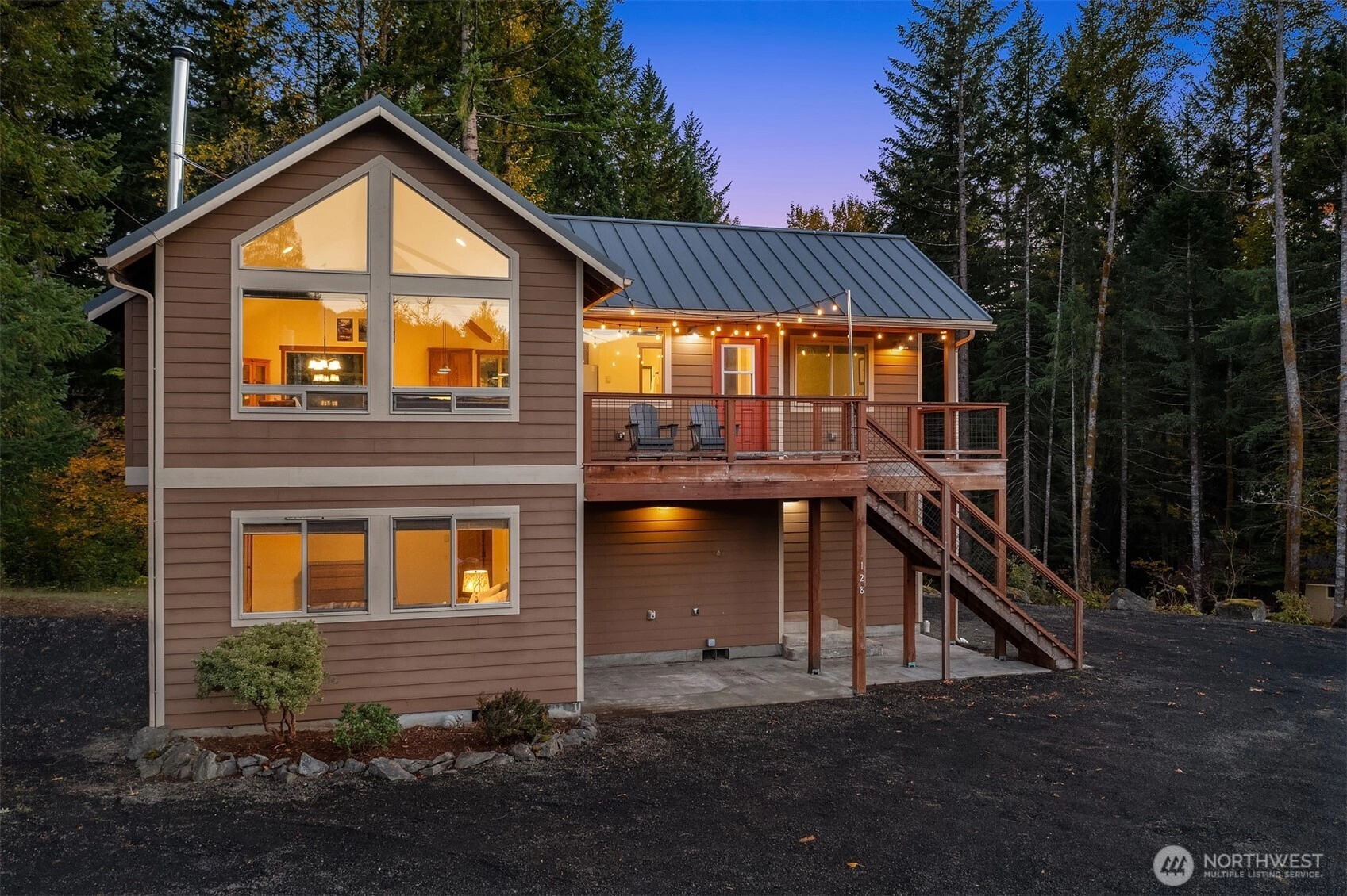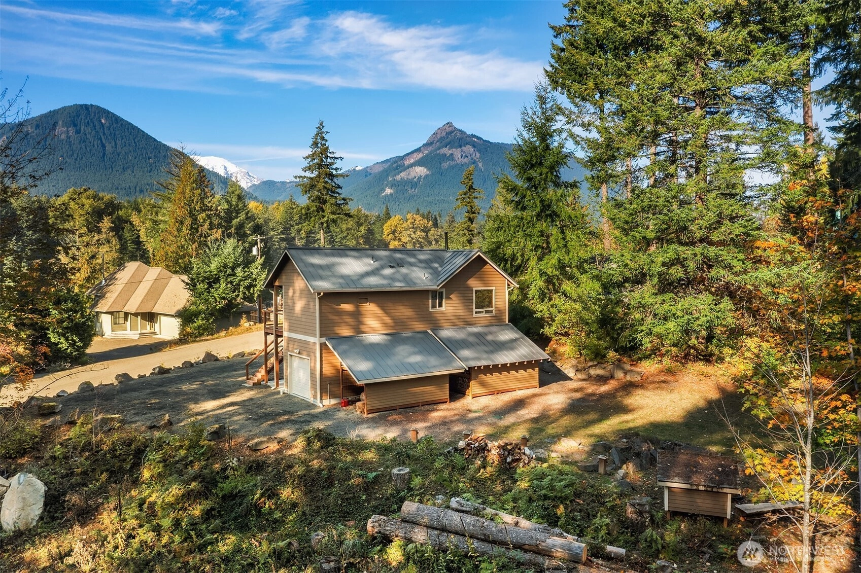 Turnkey 2011-built cabin with expansive views of Mt. Rainier, Butter Peak, and the Tatoosh Range, located in the popular Skyline neighborhood, a quarter mile from the dining and shopping of Packwood's town center. You'll love the open concept upper level with lofted beam ceilings. Prepare a meal with friends while the wood burning stove creates an incredibly relaxing cabin vibe. With a bed, bath, and gathering room on each floor, and a 3-bed septic, there is plenty of room for the whole crew. Built for durability with a metal roof and cement plank siding. Store gear for all seasons in the mini-garage. Follow the lighted path and gather around the outdoor firepit. Tons of firewood included in two massive fire sheds and sold mostly furnished.