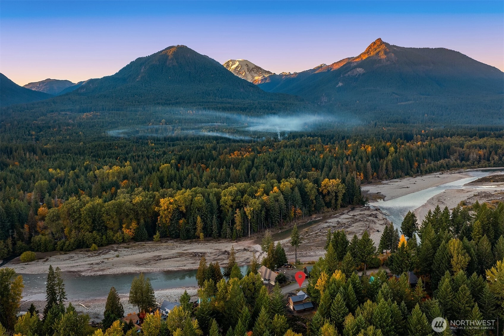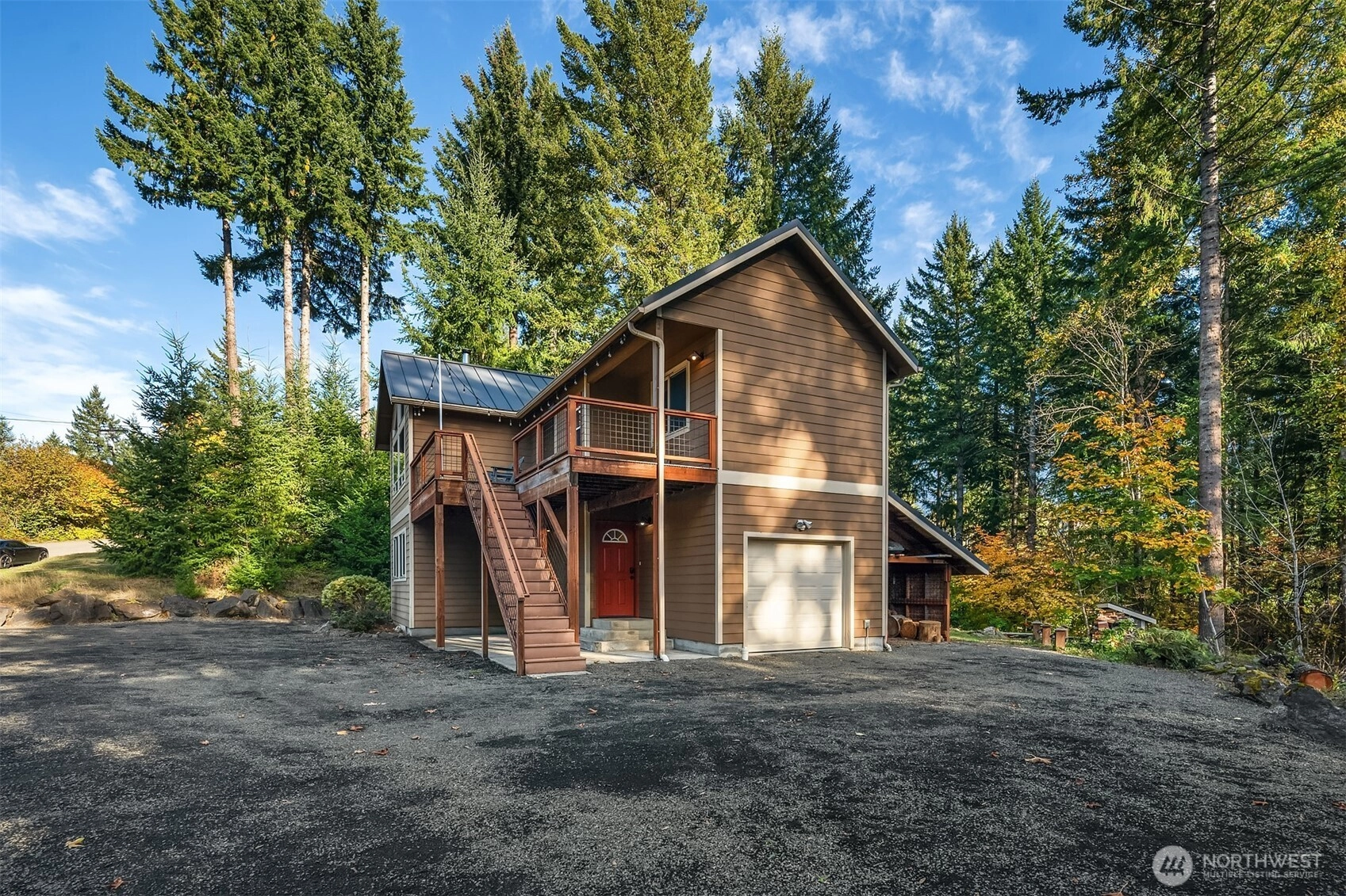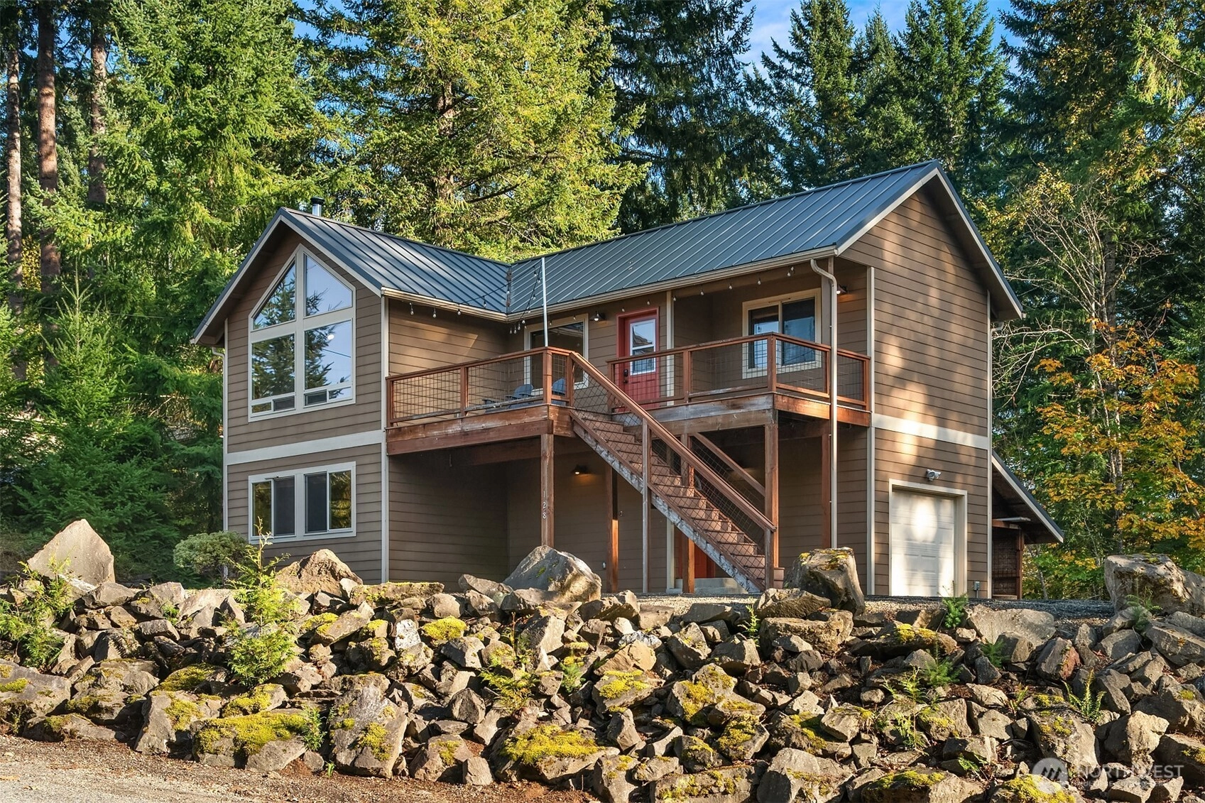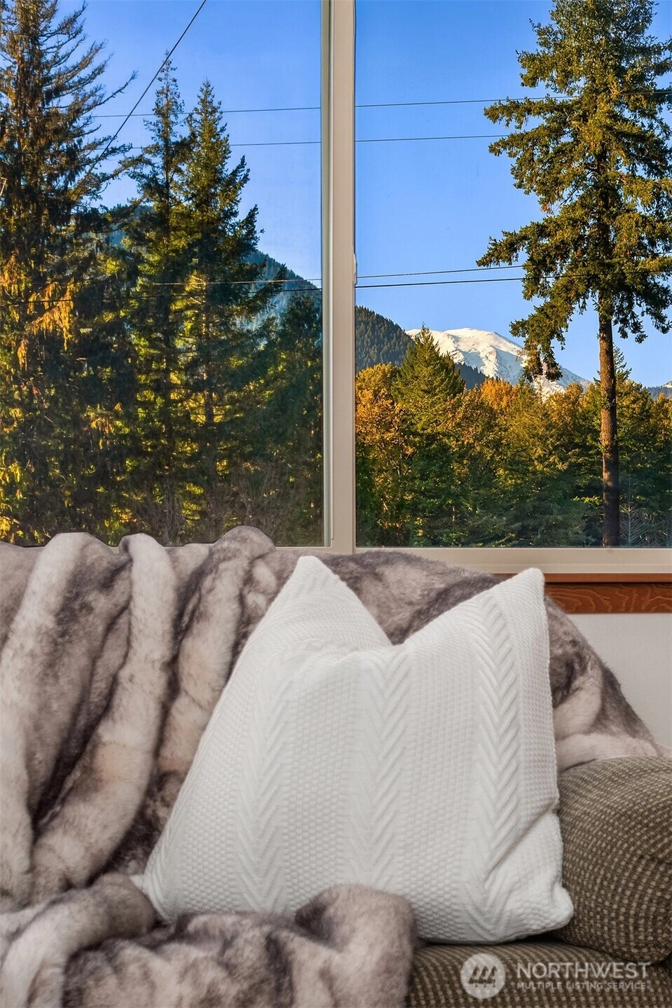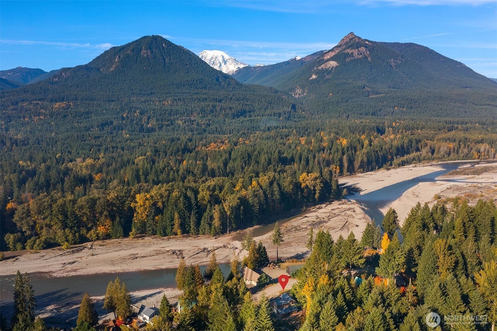 Turnkey 2011-built cabin with expansive views of Mt. Rainier, Butter Peak, and the Tatoosh Range, located in the popular Skyline neighborhood, a quarter mile from the dining and shopping of Packwood's town center. You'll love the open concept upper level with lofted beam ceilings. Prepare a meal with friends while the wood burning stove creates an incredibly relaxing cabin vibe. With a bed, bath, and gathering room on each floor, and a 3-bed septic, there is plenty of room for the whole crew. Built for durability with a metal roof and cement plank siding. Store gear for all seasons in the mini-garage. Follow the lighted path and gather around the outdoor firepit. Tons of firewood included in two massive fire sheds and sold mostly furnished.