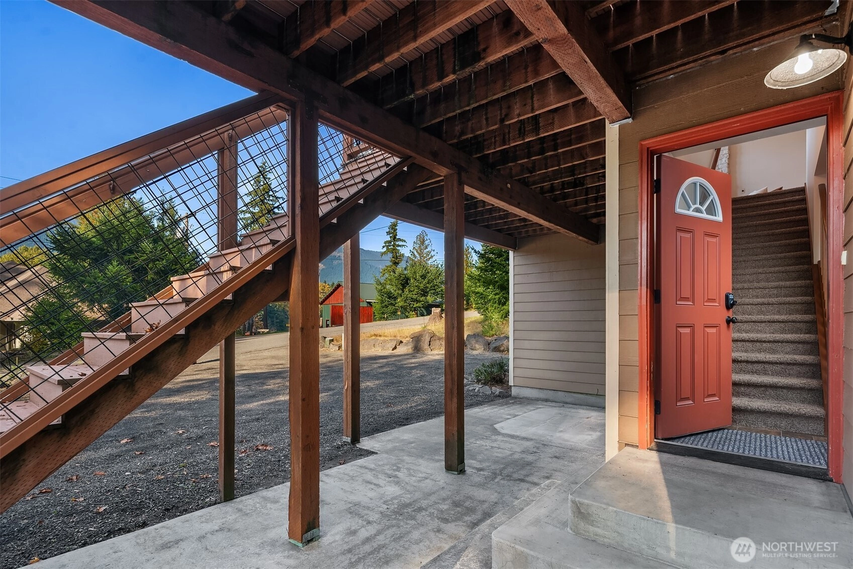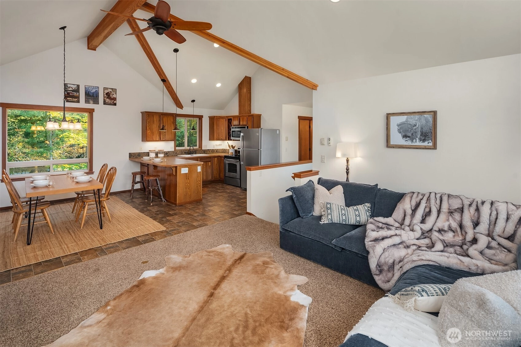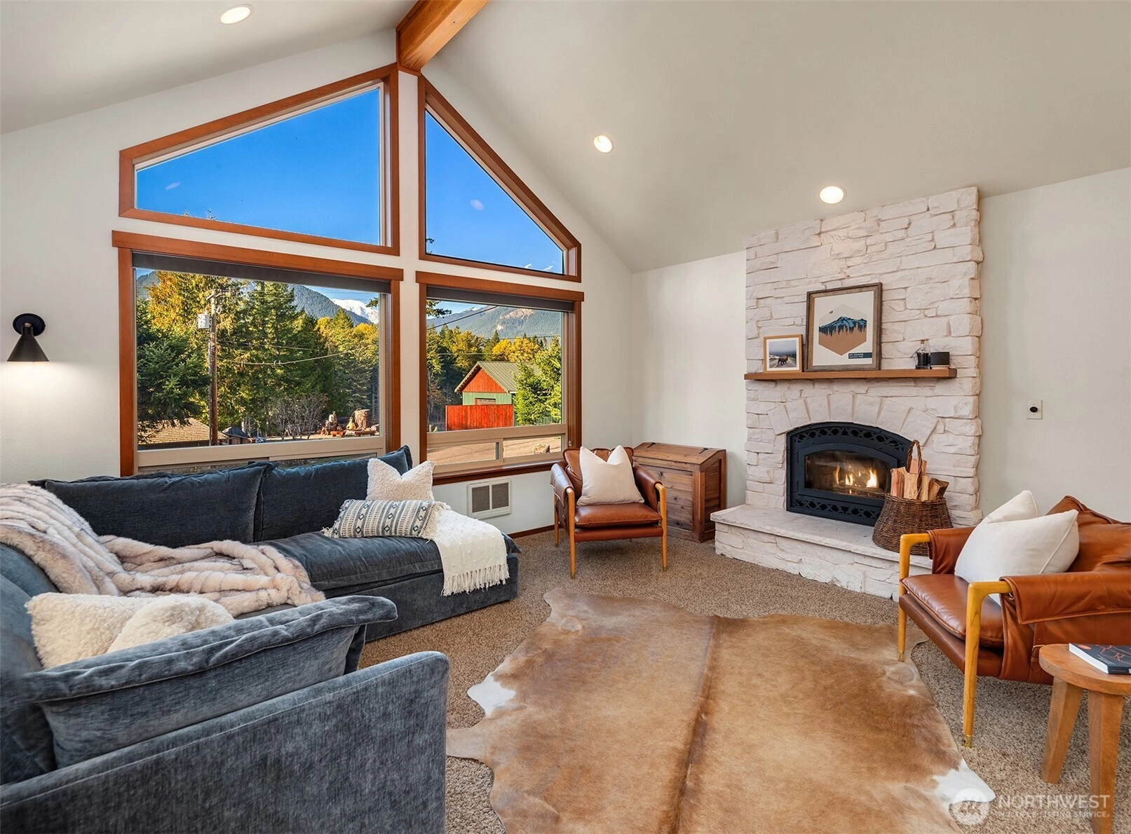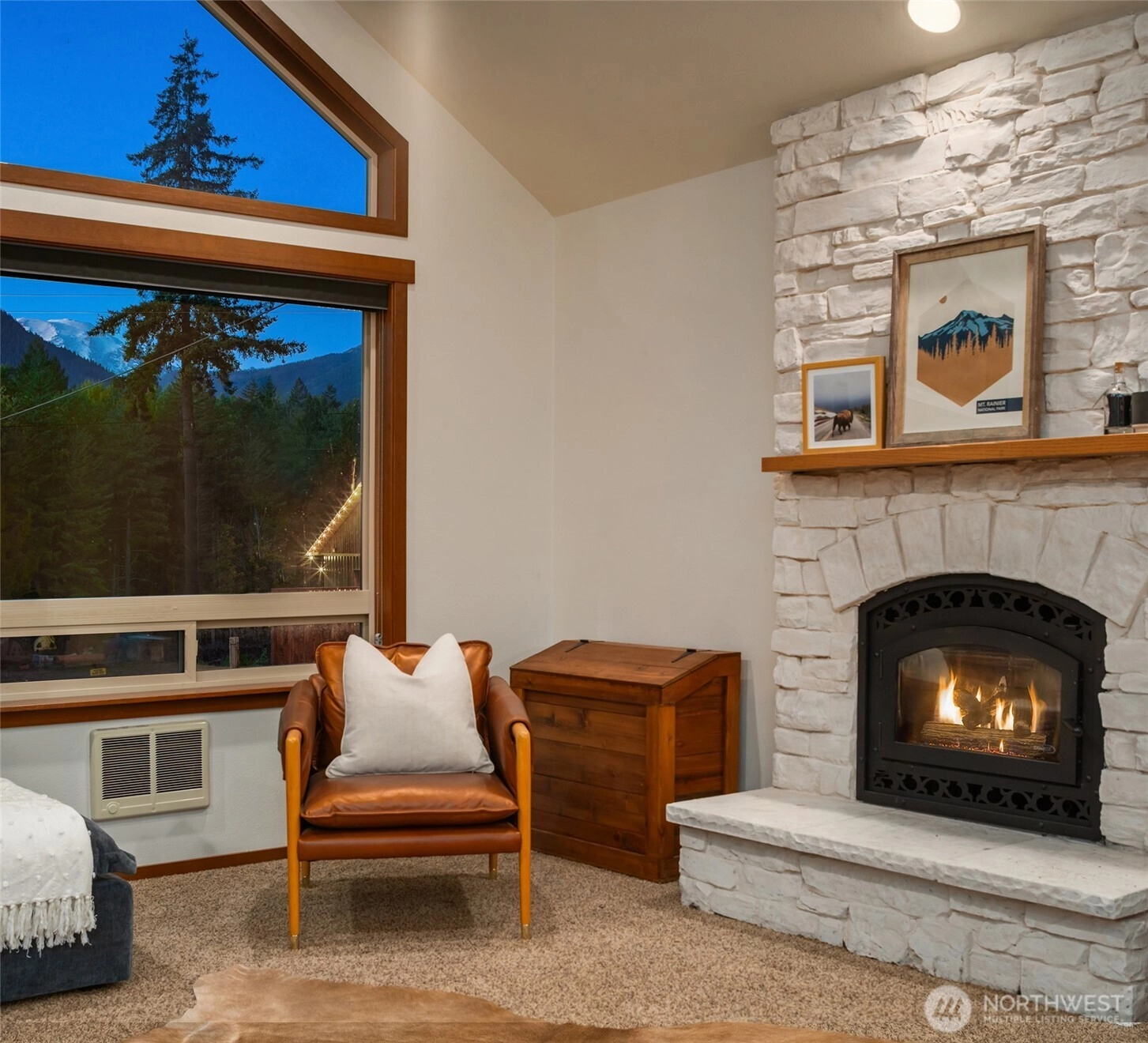 Turnkey 2011-built cabin with expansive views of Mt. Rainier, Butter Peak, and the Tatoosh Range, located in the popular Skyline neighborhood, a quarter mile from the dining and shopping of Packwood's town center. You'll love the open concept upper level with lofted beam ceilings. Prepare a meal with friends while the wood burning stove creates an incredibly relaxing cabin vibe. With a bed, bath, and gathering room on each floor, and a 3-bed septic, there is plenty of room for the whole crew. Built for durability with a metal roof and cement plank siding. Store gear for all seasons in the mini-garage. Follow the lighted path and gather around the outdoor firepit. Tons of firewood included in two massive fire sheds and sold mostly furnished.