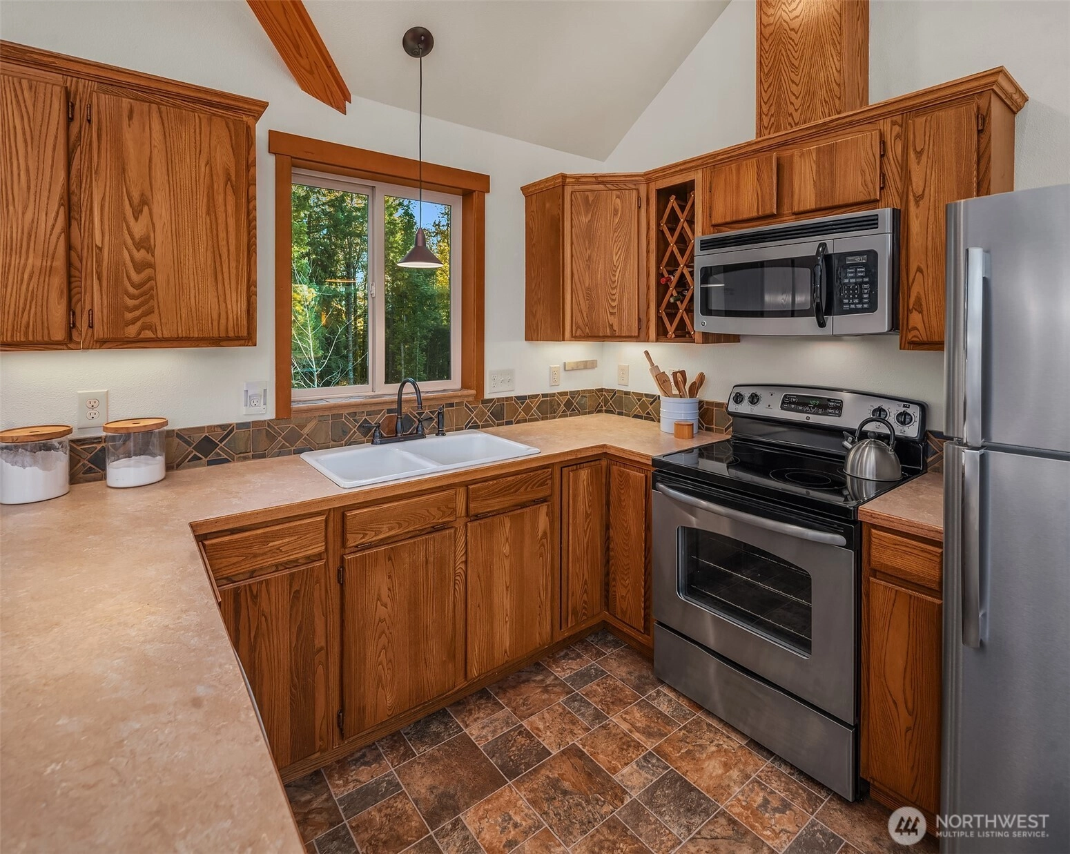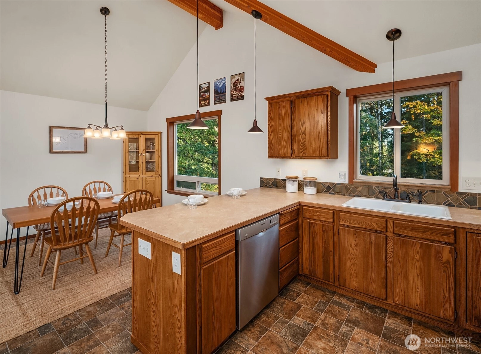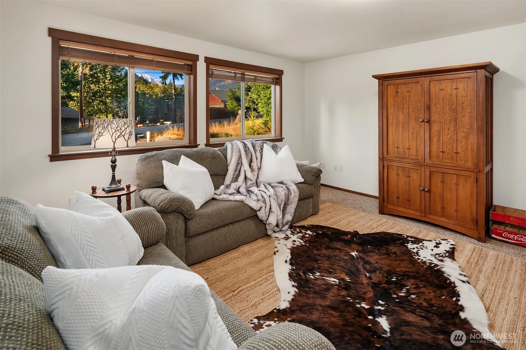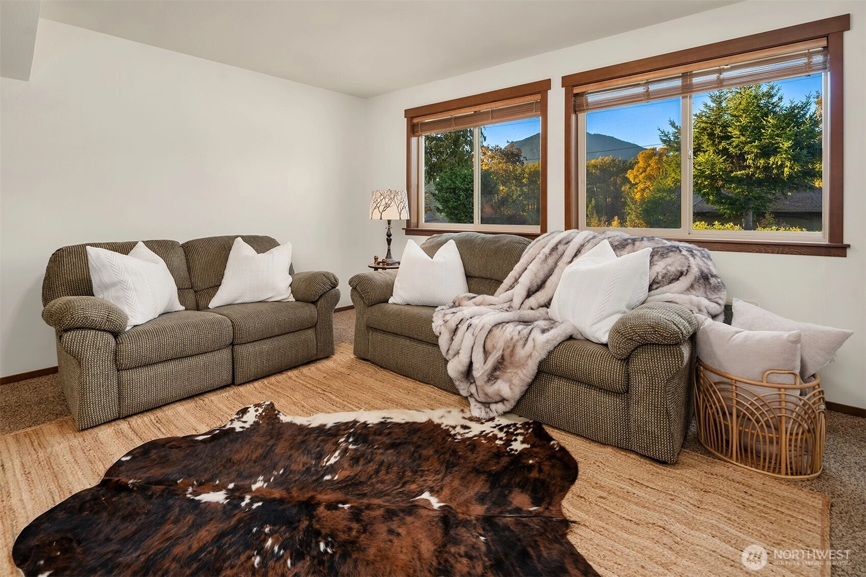 Turnkey 2011-built cabin with expansive views of Mt. Rainier, Butter Peak, and the Tatoosh Range, located in the popular Skyline neighborhood, a quarter mile from the dining and shopping of Packwood's town center. You'll love the open concept upper level with lofted beam ceilings. Prepare a meal with friends while the wood burning stove creates an incredibly relaxing cabin vibe. With a bed, bath, and gathering room on each floor, and a 3-bed septic, there is plenty of room for the whole crew. Built for durability with a metal roof and cement plank siding. Store gear for all seasons in the mini-garage. Follow the lighted path and gather around the outdoor firepit. Tons of firewood included in two massive fire sheds and sold mostly furnished.