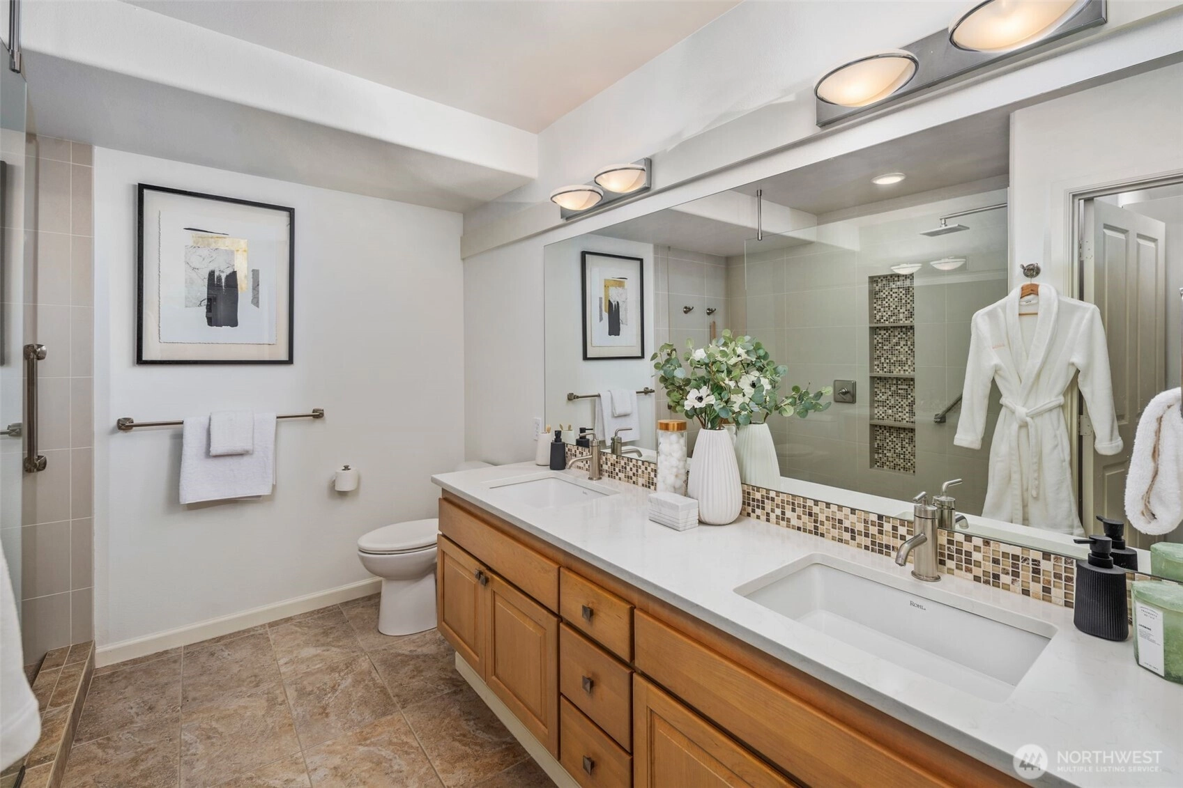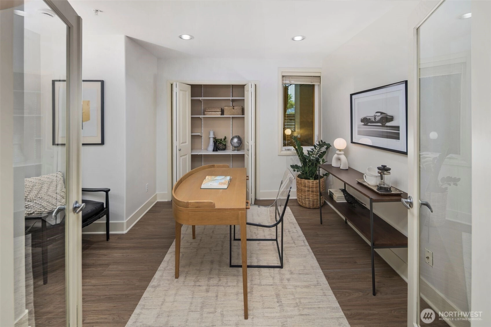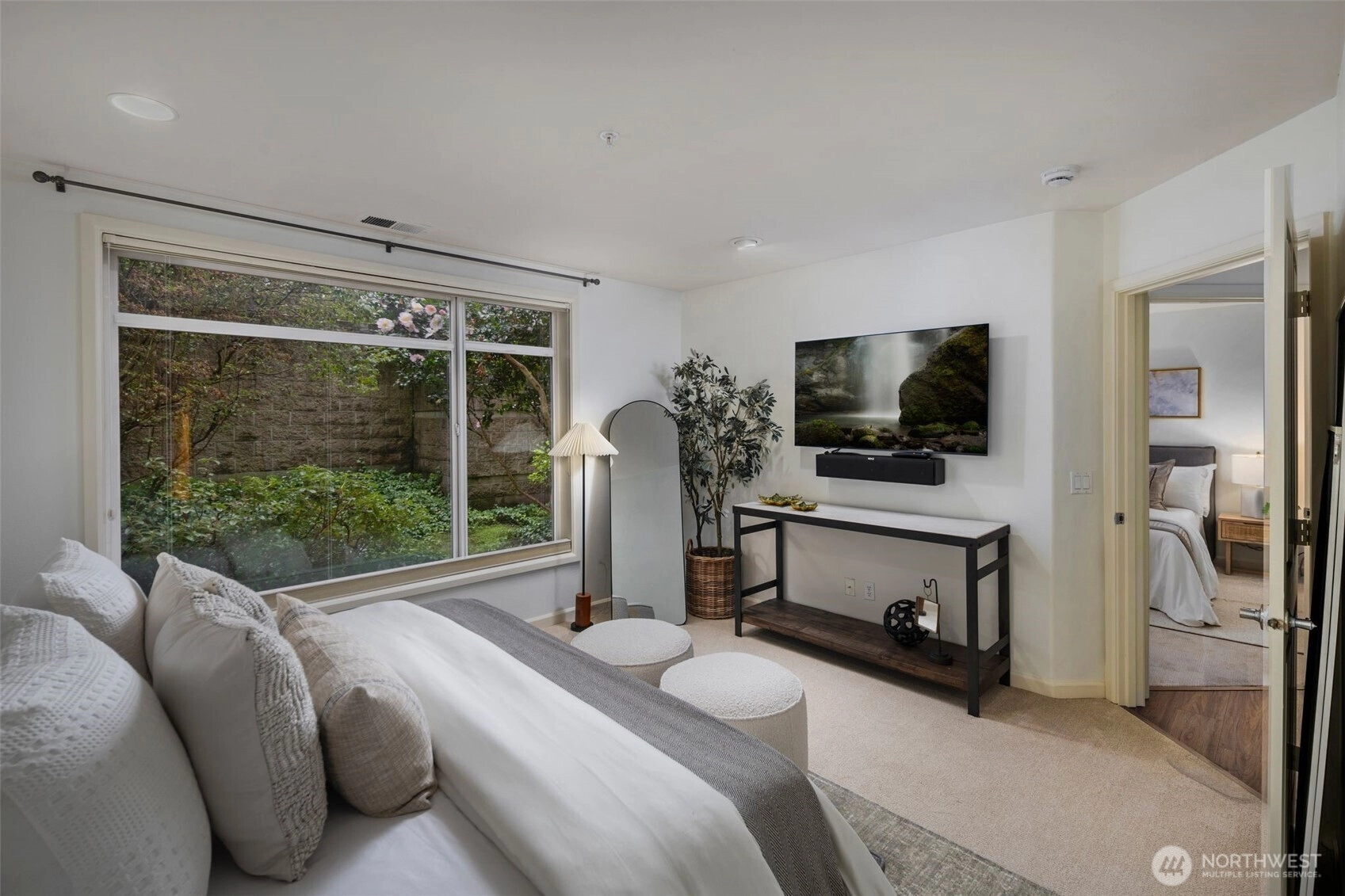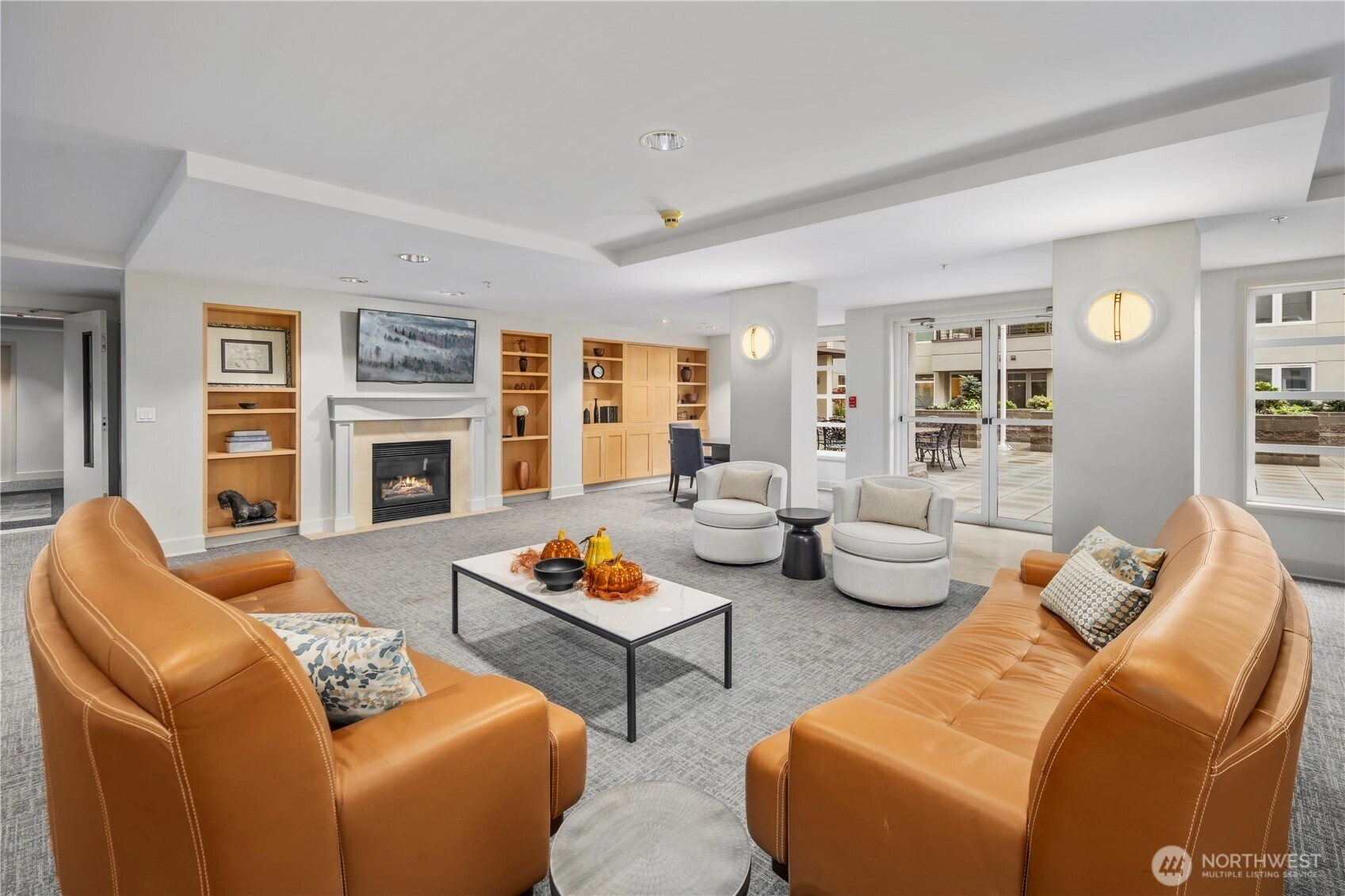 Gracious living in the heart of downtown Kirkland! A freshly painted, newly carpeted exquisite 2 bedroom , 1.75 bath. Updated kitchen, primary bath, hardwood floors & AC. Perfectly located over the garden courtyard w/ S. facing city views. Generous study that doubles as den. Gas fireplace creating cozy living & dining room. Below rental cap. Guest rental rooms available. 2 storage lockers.Well run HOA. Building recently painted inside & out. New roof & courtyard garden redesign. Pets allowed subject to restrictions. Minutes from transit & downtown shops & restaurants. Google a block away. 96 Walk Score. The best way to live in downtown Kirkland!