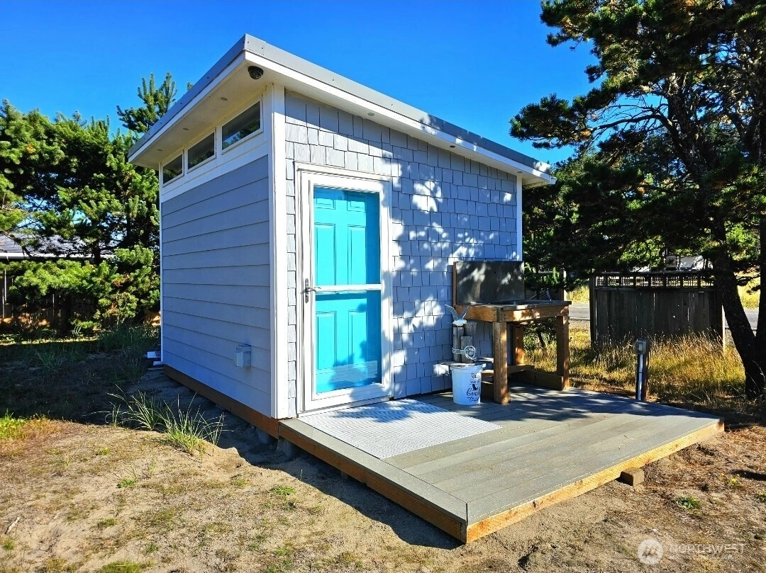 Campfires, Wildlife, Multiple Beach Access Trails, Lakes & Ocean Sunsets are beckoning! OCEAN PARK: 1 block North of the Oysterville Beach approach in Surfside Estates. This Large, 75' X 115', level, corner lot has multiple R.V. hookups w/Water, Septic & Power. The Coastal Vibe Outbuilding (10x12) has w/Clam Cleaning Station, Deck & Cozy Vaulted Storage. Water services provided with the yearly HOA fee. Septic System is updated for a 3 bedroom, 2 bath build.