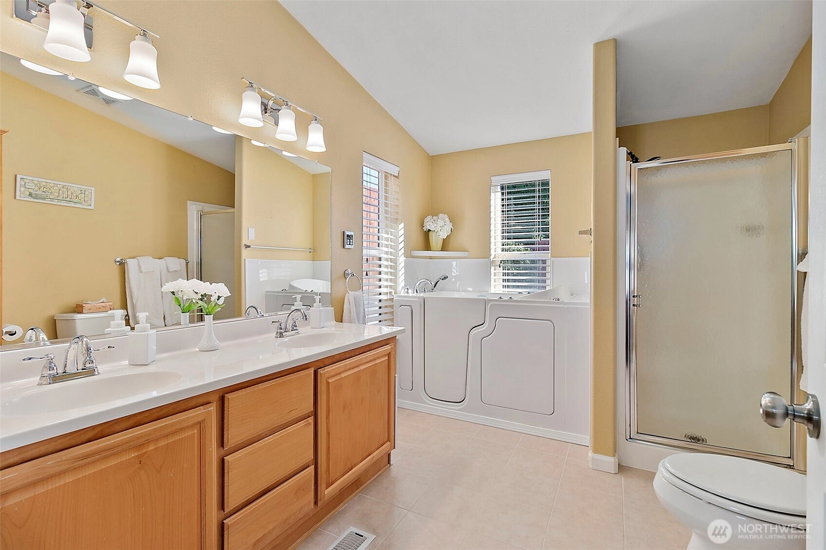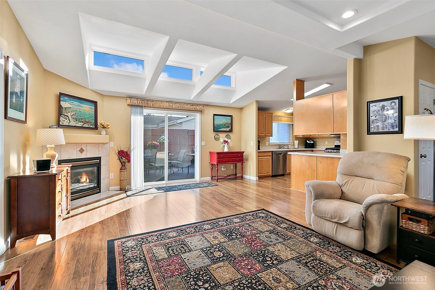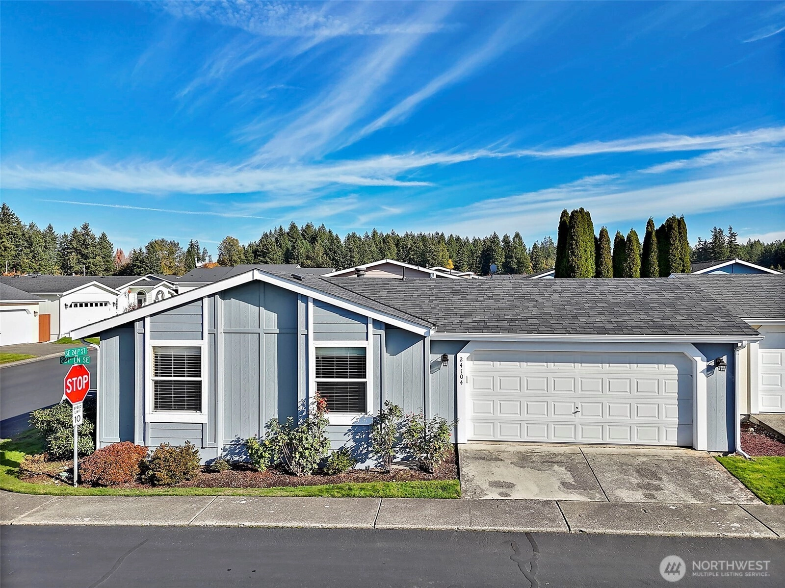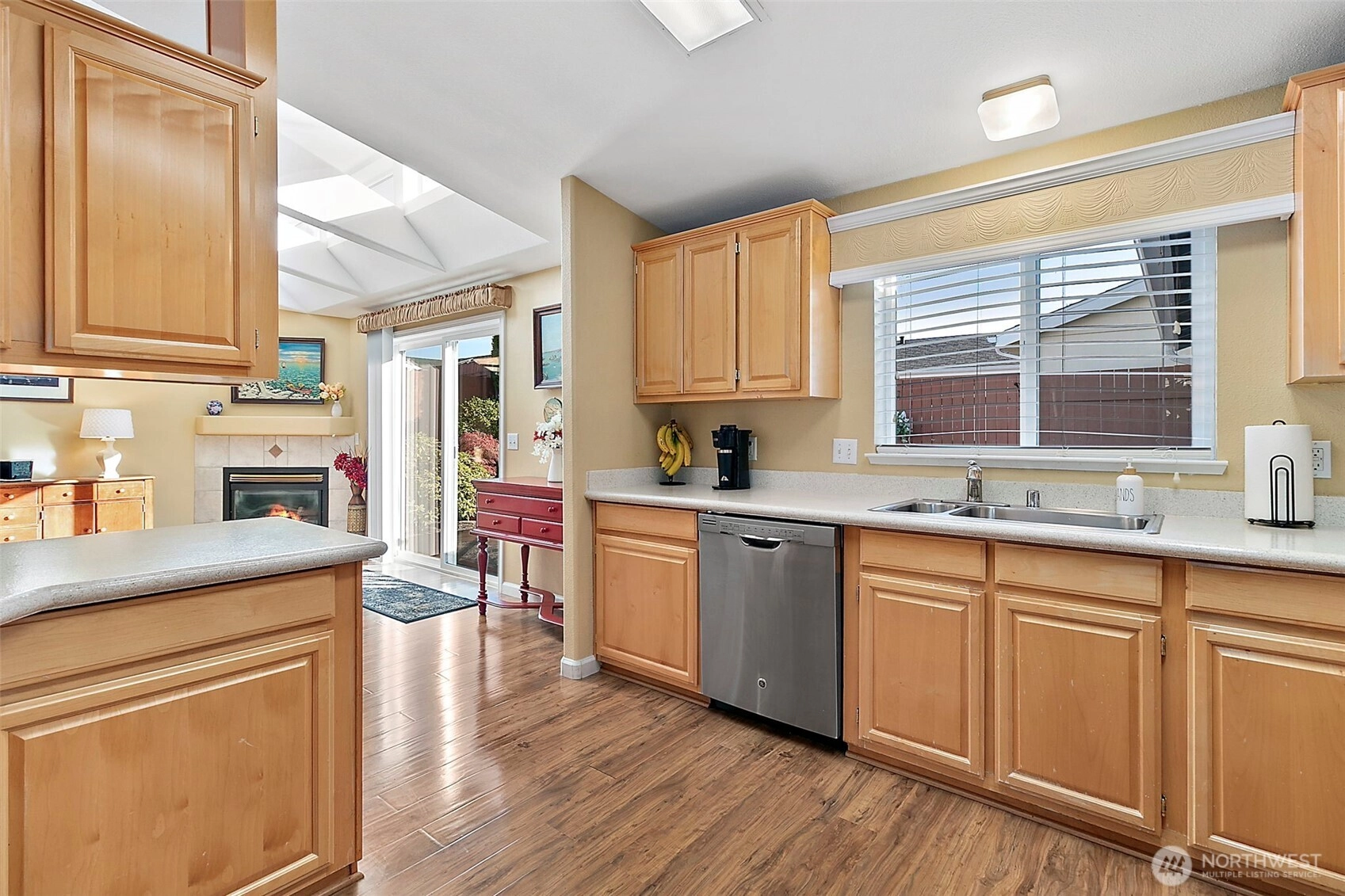 Welcome to sought-after Wilderness Villa, a vibrant 55+ community! This beautifully maintained 3-bed, 2-bath home offers comfort, style, and convenience just steps from the clubhouse and amenities. The spacious living area features vaulted ceilings, skylights, and a cozy gas fireplace that fills the home with warmth and natural light. The bright kitchen boasts newer SS appliances, abundant cabinetry, and plenty of counter space. Relax or entertain on the private, low-maintenance backyard deck surrounded by easy-care landscaping. The primary suite includes a walk-in tub and separate shower for added comfort. Additional highlights include a full laundry room, two-car garage, and prime location near shopping, dining, and medical services.