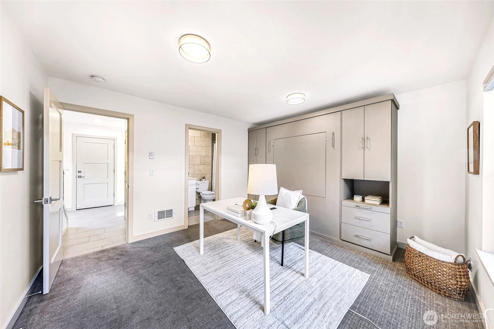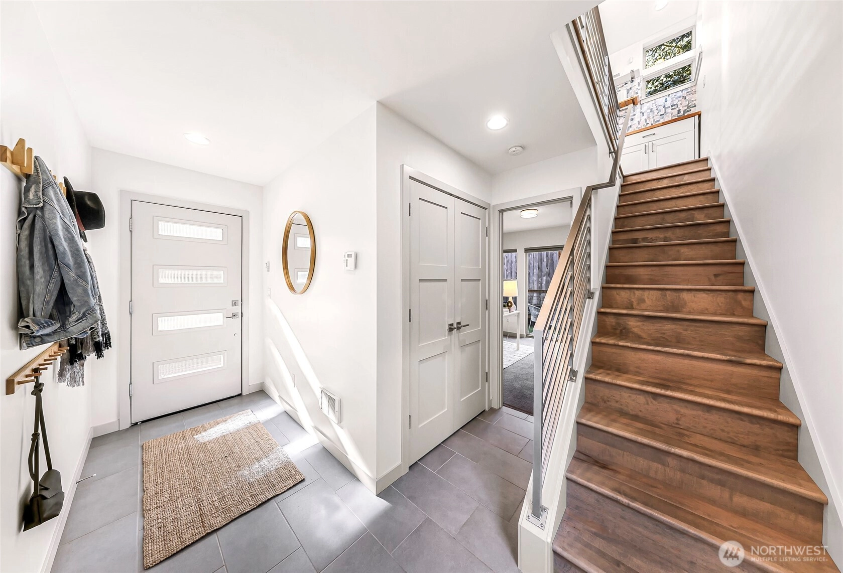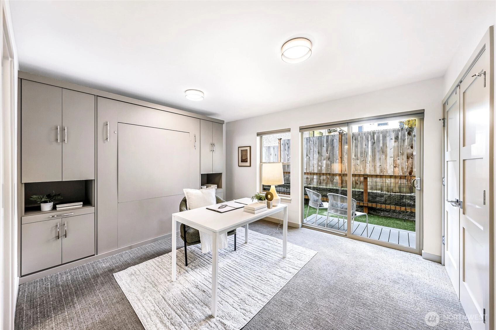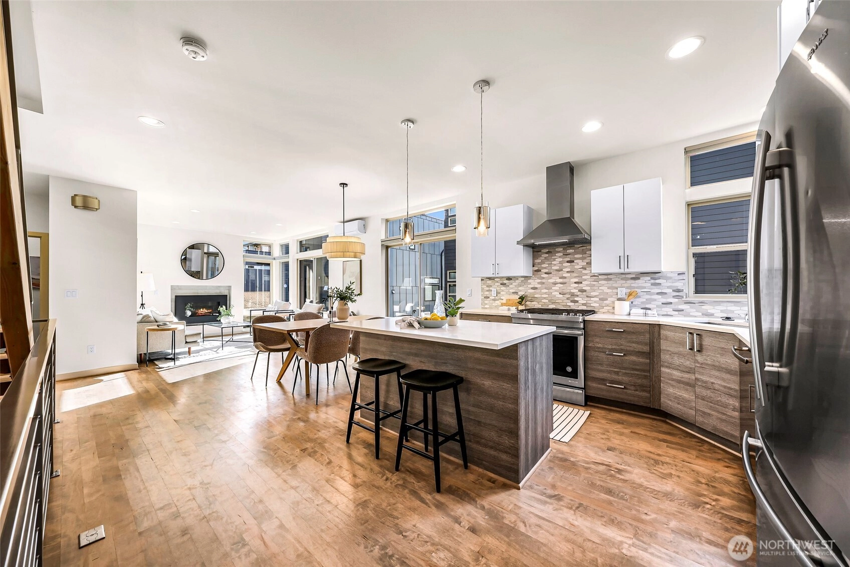 Want spacious modern living, ample storage, outdoor space, stunning views, privacy, and a garage? You've found it! Aglow with natural light, the lovely living and dining rooms offer plenty of space to entertain. The kitchen features a gas range, bespoke beverage center, and large pantry. Each bedroom boasts an en suite bathroom: a spacious primary retreat, with second bedroom on the same floor, and a garden-level guest suite—perfect for visitors or a quiet WFH setup! Outside, enjoy a cozy, low-maintenance garden, before you head up to the private rooftop terrace for stunning views of downtown Seattle, the Space Needle, and the mountains. Set on a peaceful street w/ easy access to DT Ballard and commuter routes, this home cannot be beat!
