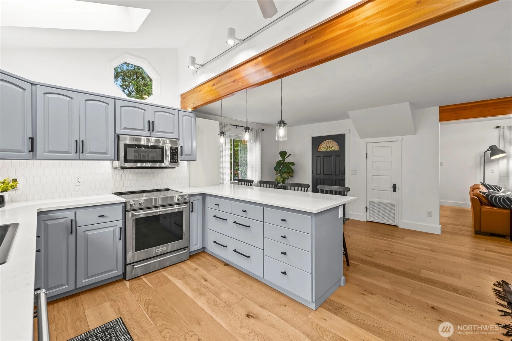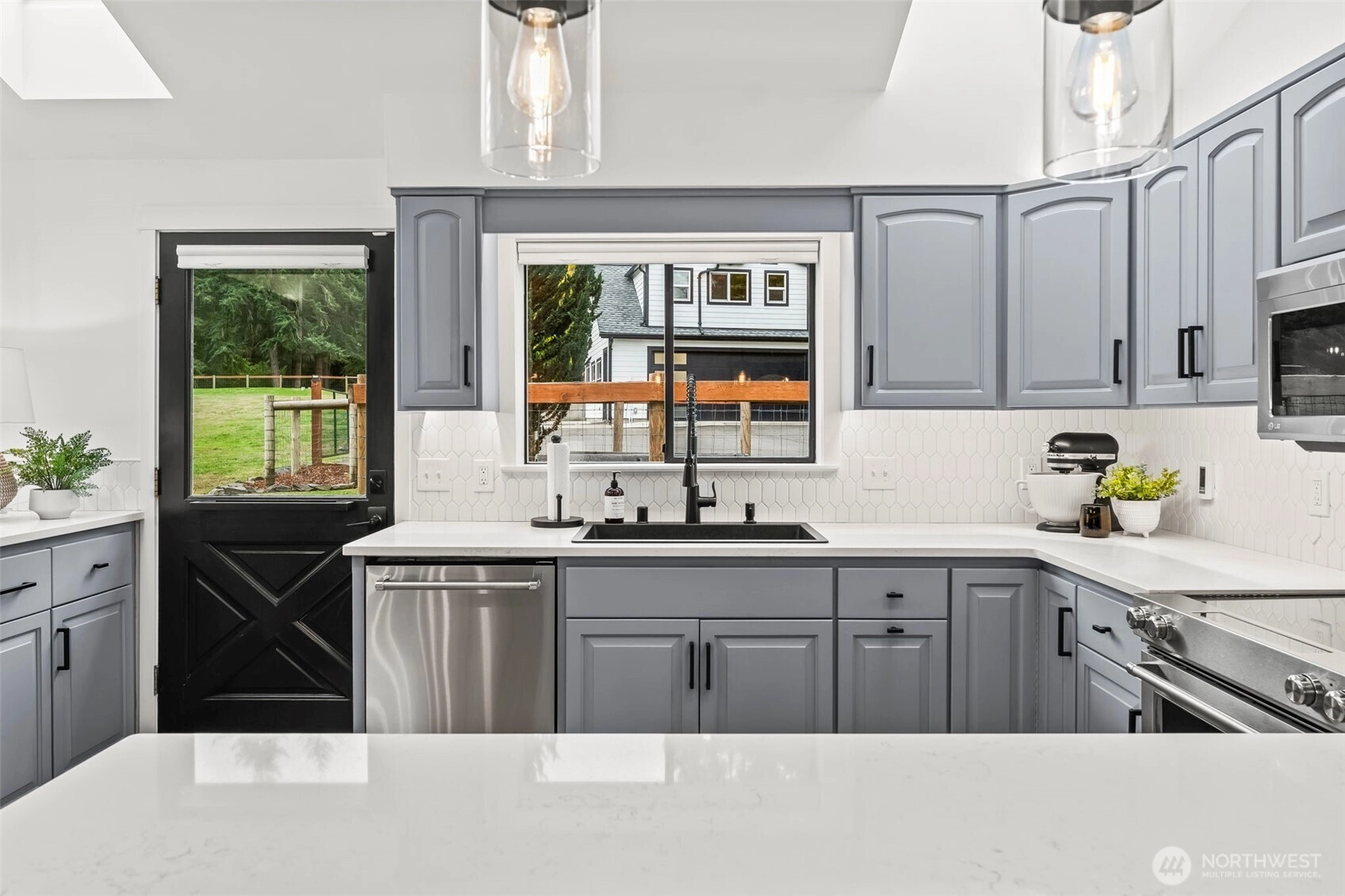 Country living within Gig Harbor—just minutes from Downtown Gig Harbor, Gig Harbor North (Costco, Target, Home Depot) and Hwy 16! This beautifully remodeled home shines with a brand-new kitchen, bathrooms, flooring, interior & exterior paint, new 4-bedroom septic, and fresh asphalt driveway. The main level offers a bedroom and 3/4 bath, while upstairs features a bedroom, office, and an additional 3/4 bath. Enjoy a rooftop patio, back deck with hot tub, and a 3-car detached garage (or 2-car + finished gym) with unfinished space above. Level, fully fenced 2.5 acres include outbuildings and carports—perfect blend of comfort, style, character and space!