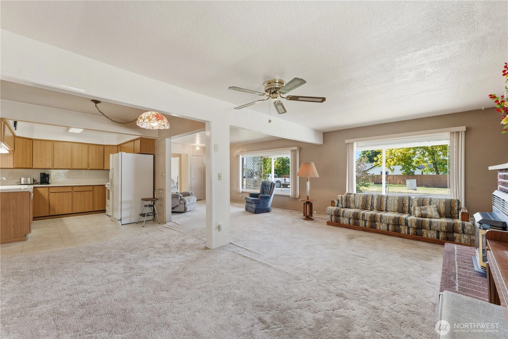 Spacious one level 3-bedroom, 3-bath home featuring a bright living room, cozy family room with a gas fireplace insert, and a kitchen that opens to an expansive dining room ideal for gatherings. Step outside to a manicured yard with a covered deck and patio - the perfect space for relaxing, entertaining, and a backyard garden. Enjoy the two-car garage with additional shop space, a storage shed, and extra driveway parking for multiple vehicles or an RV. A warm, welcoming home with space for everyone to live, work, and play. A must-see!