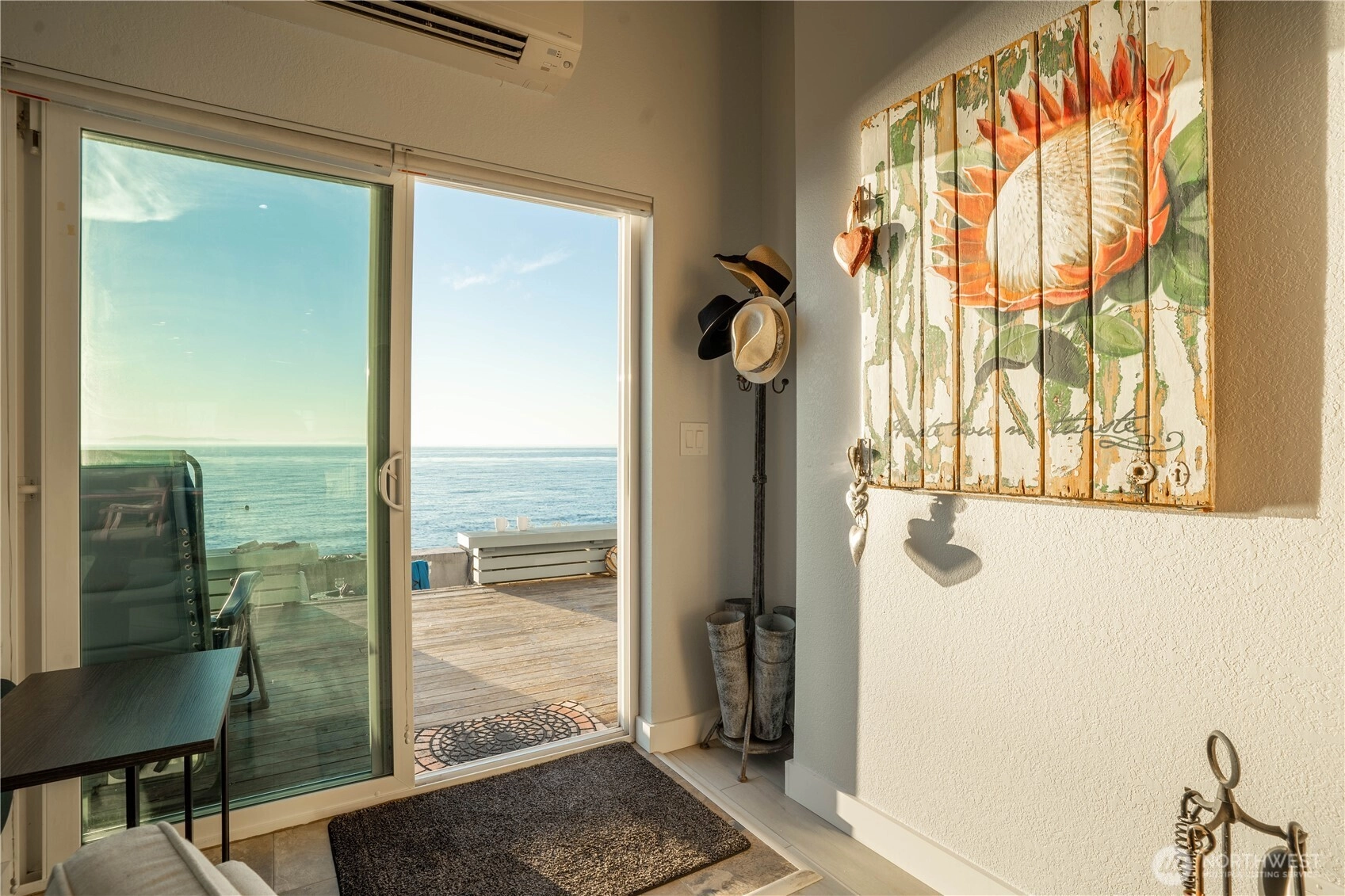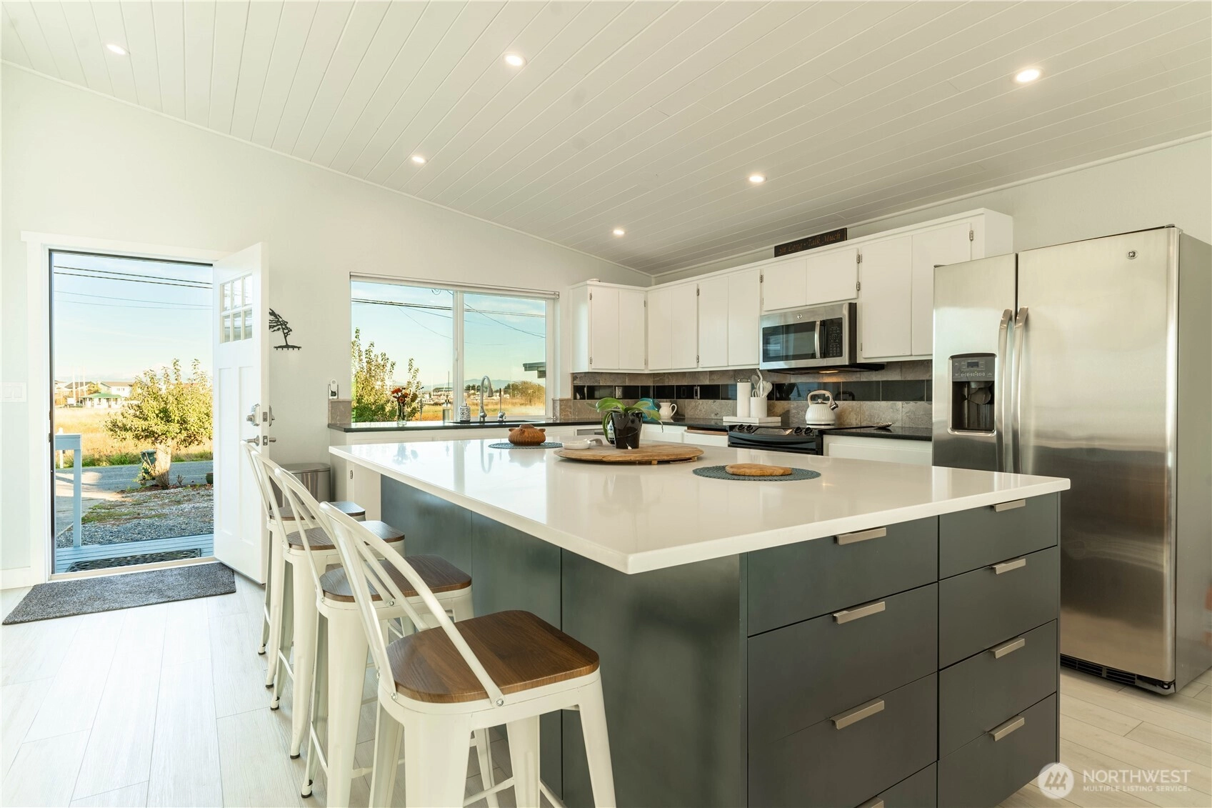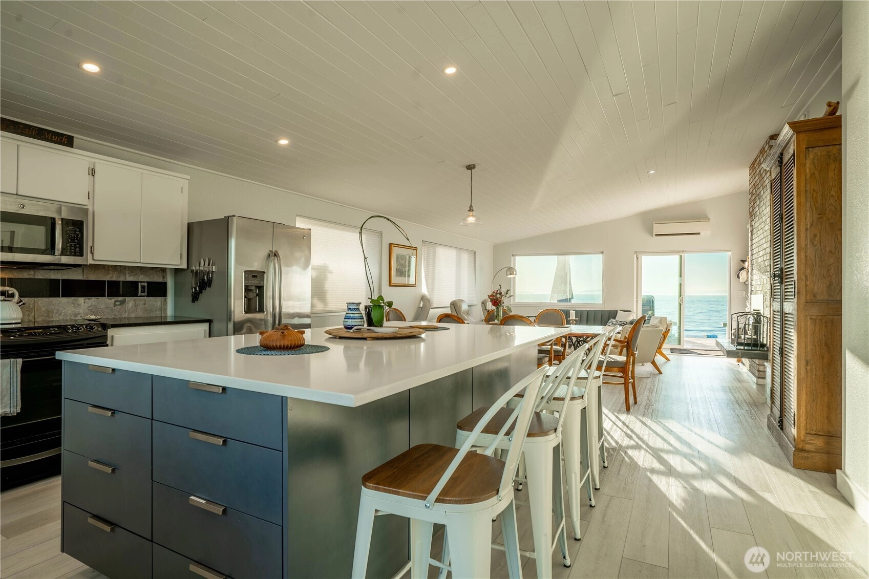 The ultimate Pacific Northwest home location on Sandy Point Shores - expansive display of Georgia Strait to the west w/spectacular sunsets over Canadian Gulf Islands to the north & San Juan Islands to the south. A full view of Mount Baker to the east overlooking wetlands across street - sunrises! A captivating coastal retreat, waterfront beach currently 2 AirBnB spaces, a total of 1,597 SF: 3 BR and 2.75 BA. Large kitchen w/ sizeable kitchen island for the chef & entertaining. Paneled, vaulted ceilings, fireplace, tasteful finishes make this the most enjoyable living space imaginable. Improved waterfront w/ 382 SF deck & 50 feet of beach/solid sand waterfront w/ a bulkhead. Both main home and accessory are turnkey. Fee simple owned land.