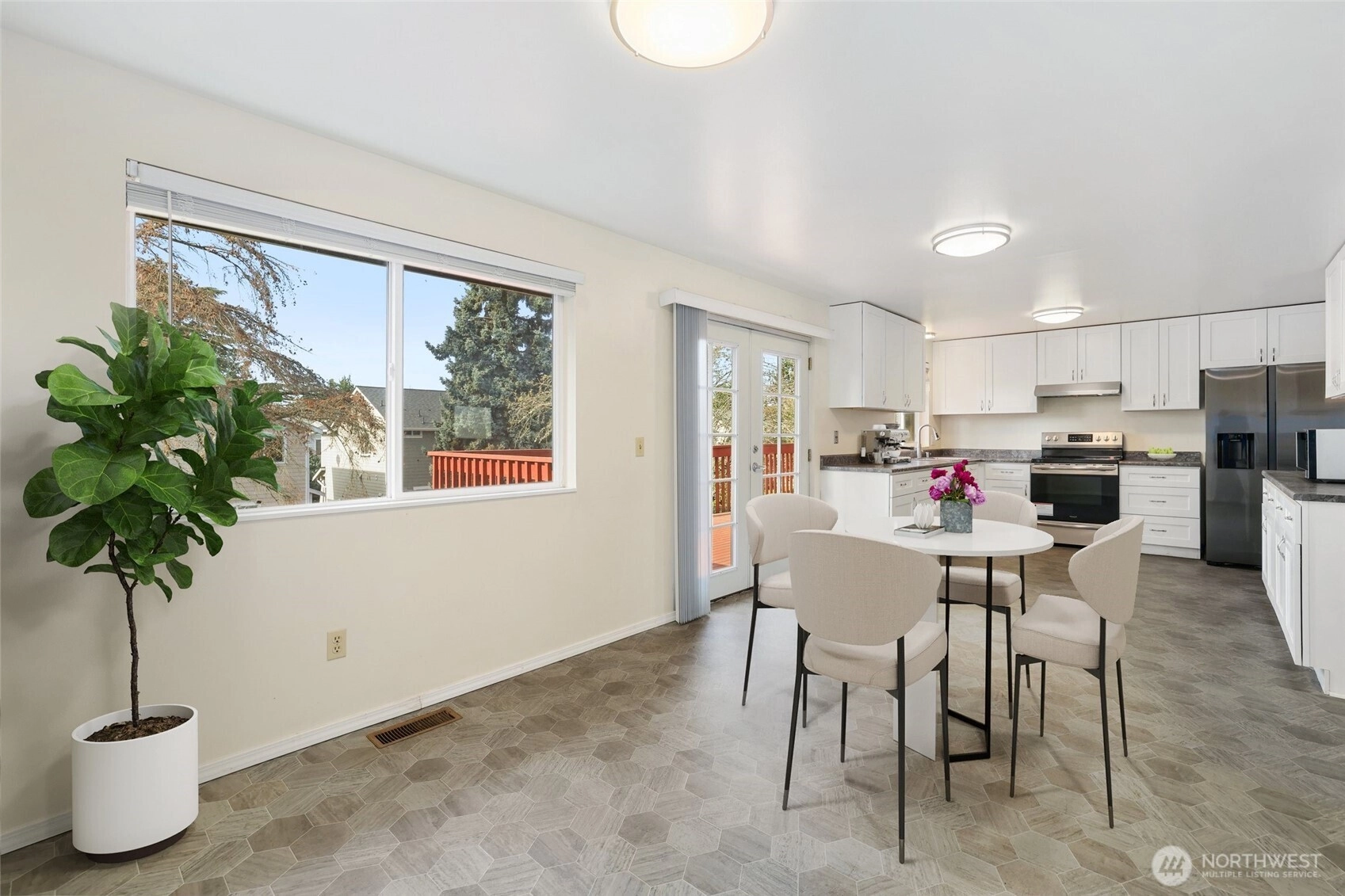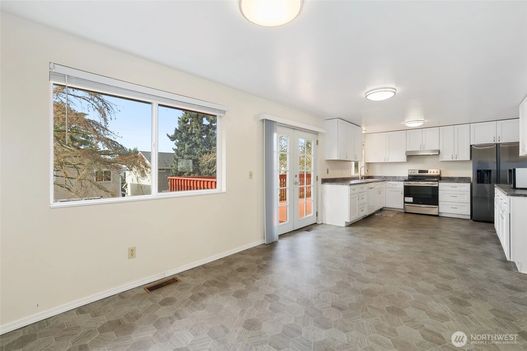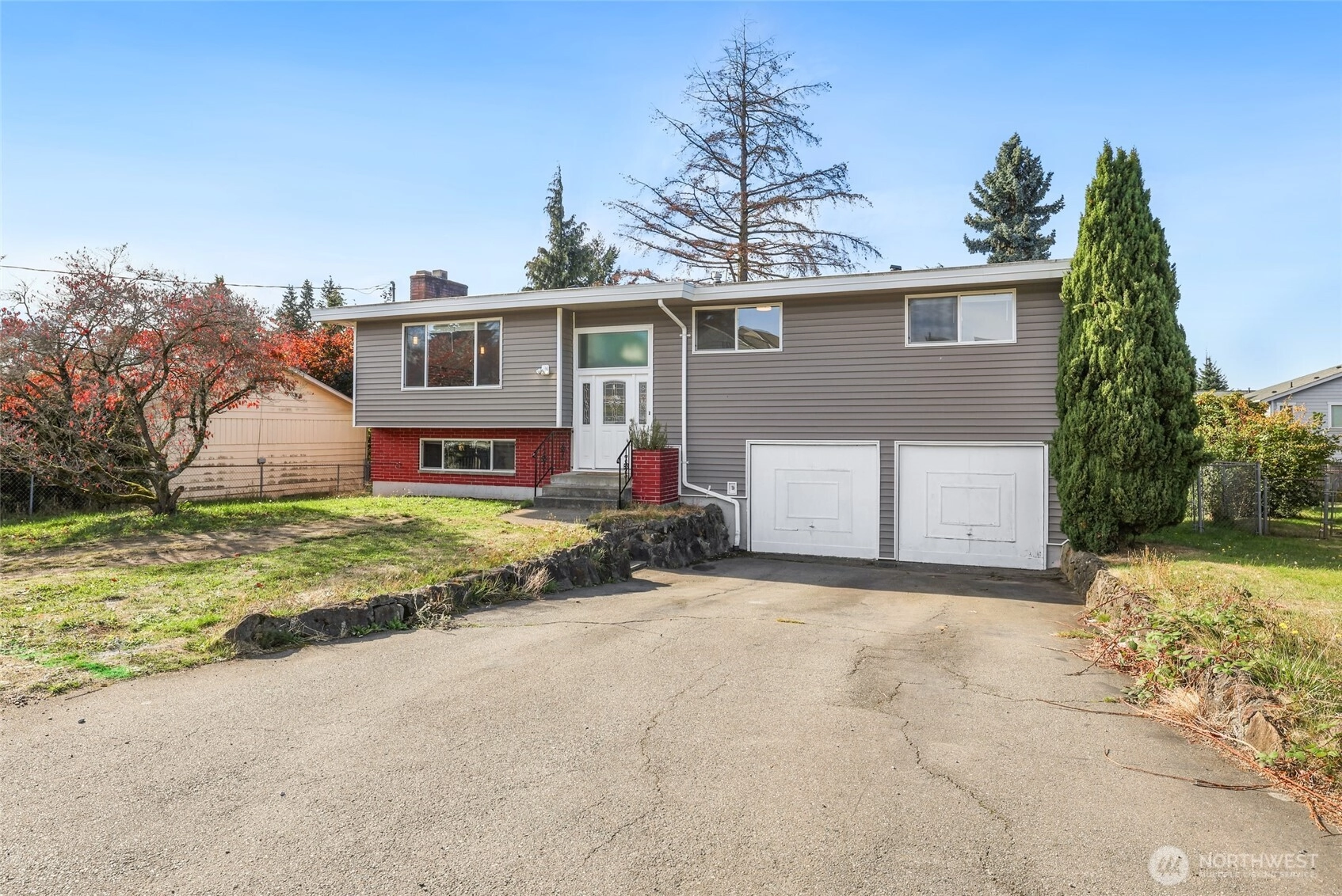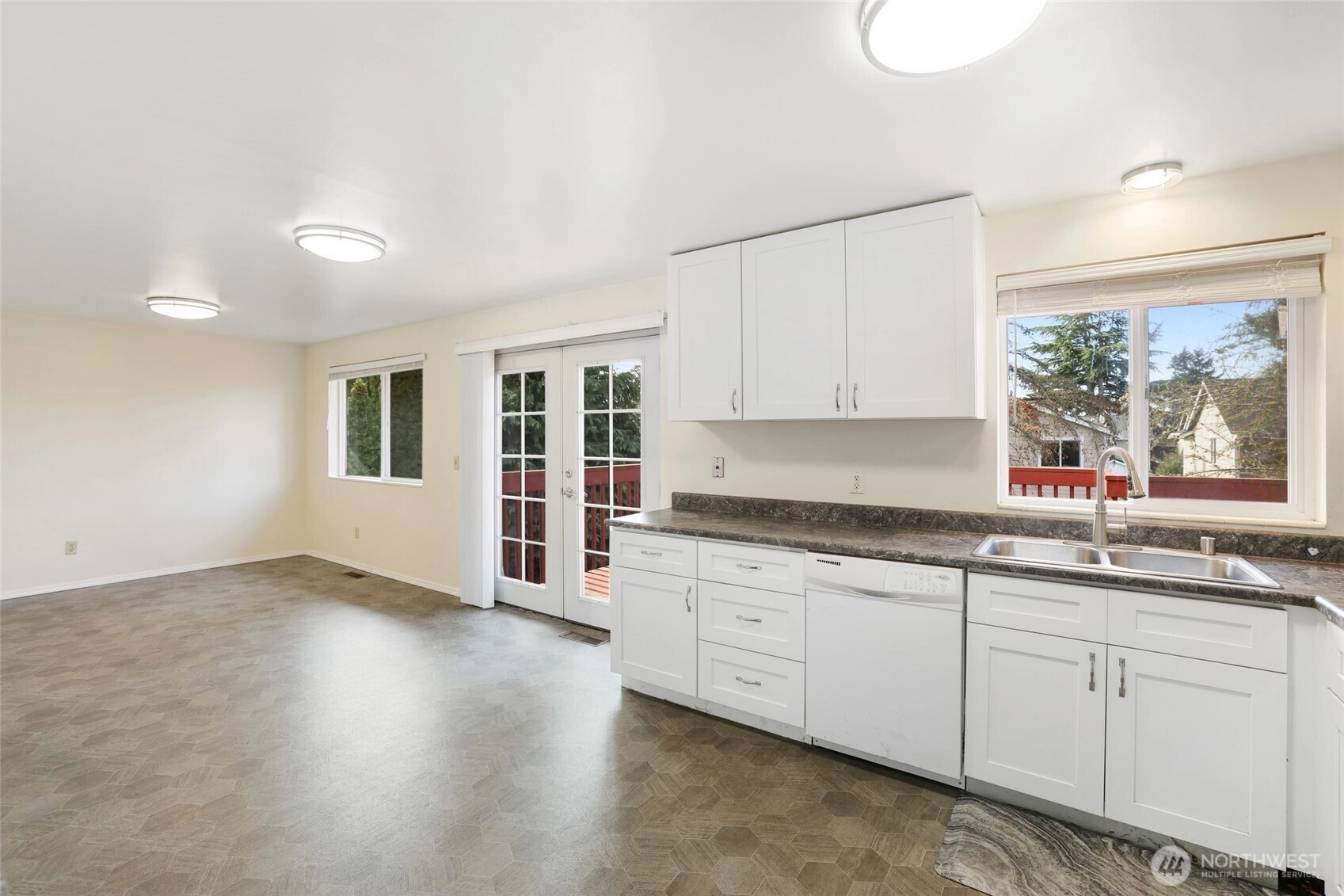 Spacious home with an excellent layout & many recent updates: newer furnace, water heater, vinyl siding, kitchen cabinets/appliances. Main level features large kitchen & enough space to add an island. Big newer vinyl windows on all windows and double sets of french doors from both levels. Large open living room has a fireplace & the walk out lower level offers a 3/4 bath, bedroom, and flexible area with wet bar and cabinetry—perfect for guests, extended living, or potential MIL setup. Big, level, westerly-facing backyard (lot is a shy quarter acre) and is ideal for play/entertaining. Generous square footage and a great Renton location, this home offers outstanding potential & room to personalize & add finishing touches. Sold as-is.