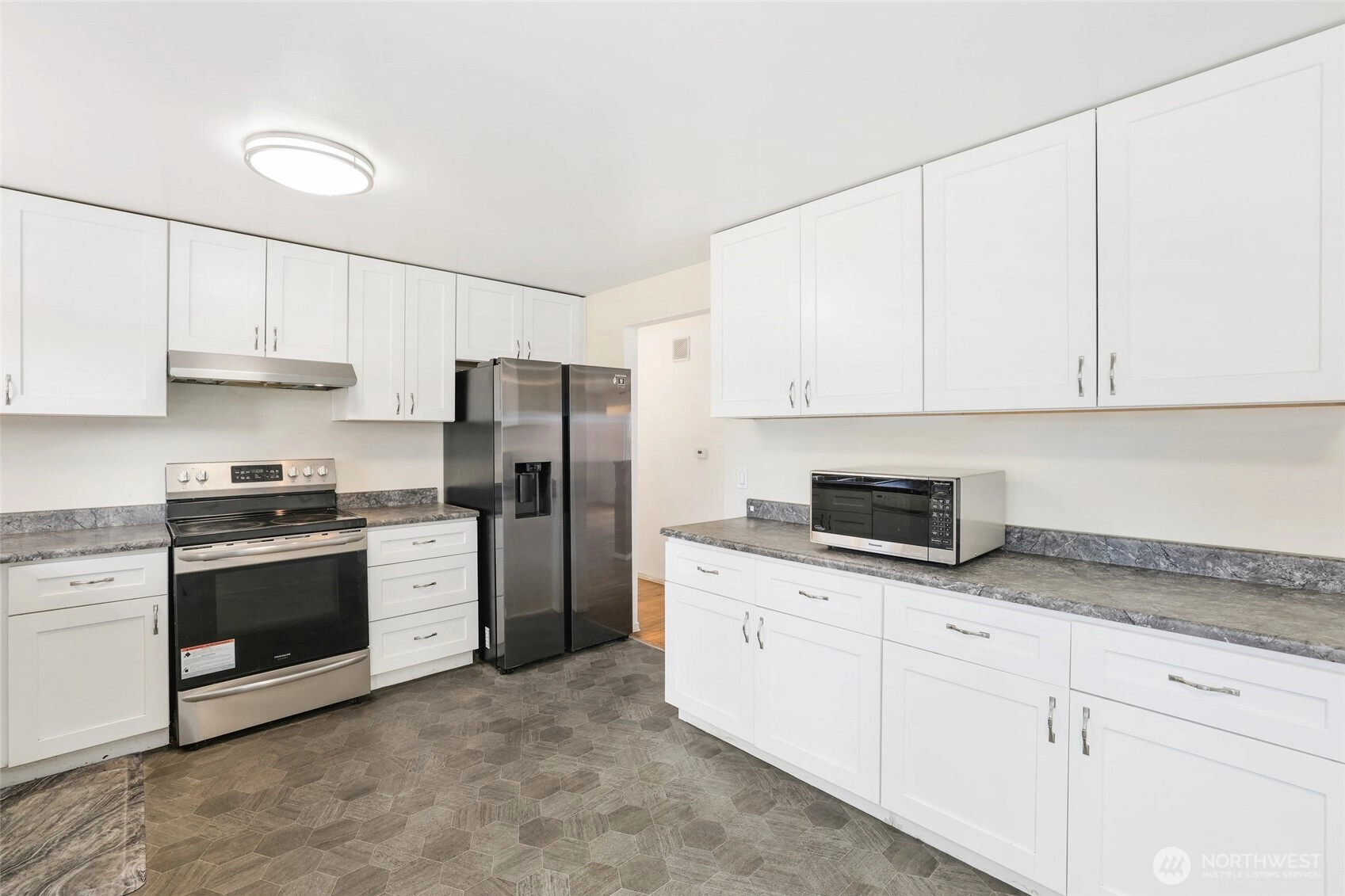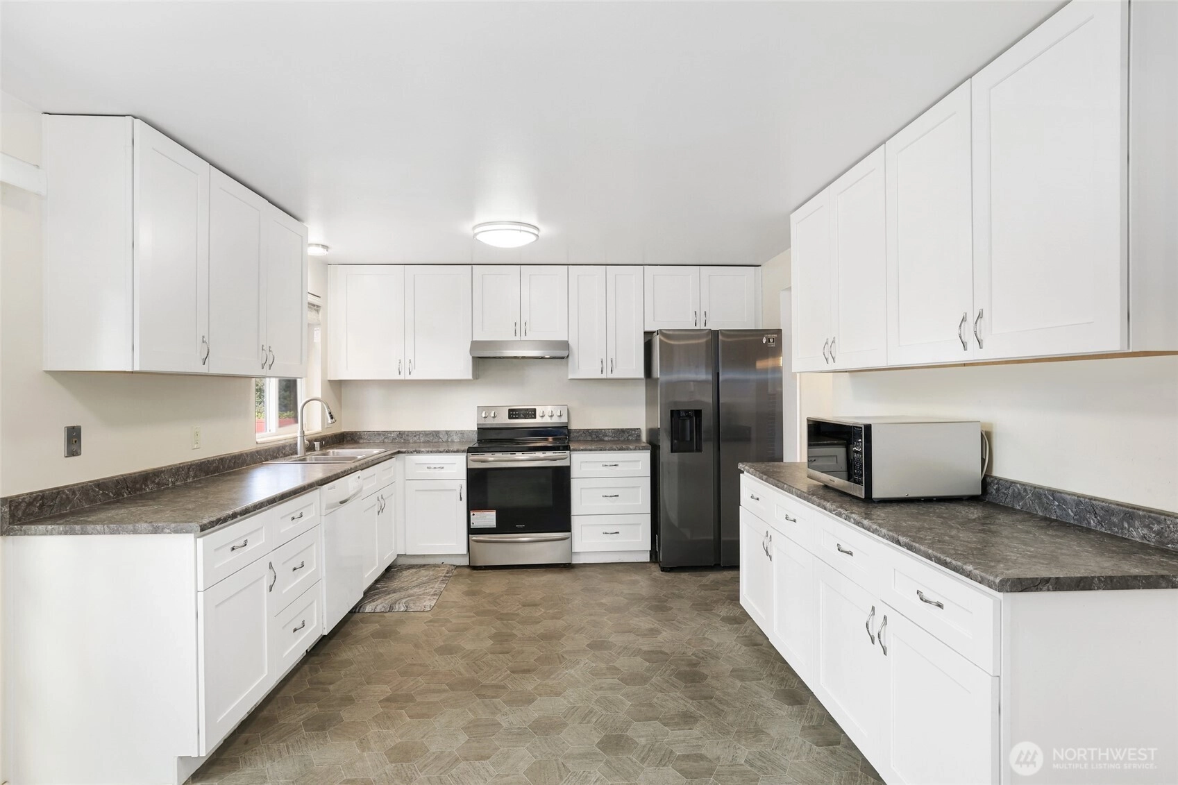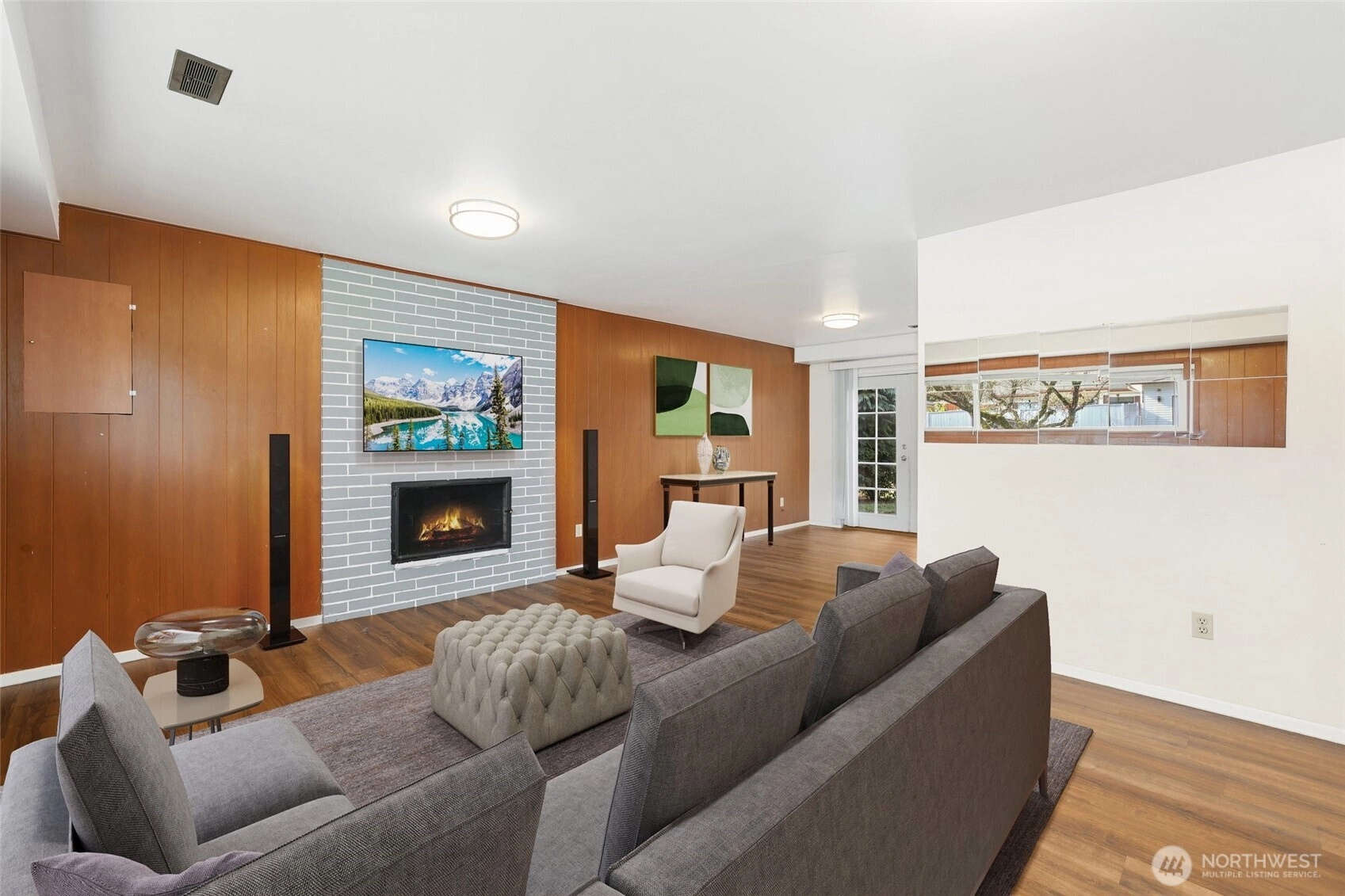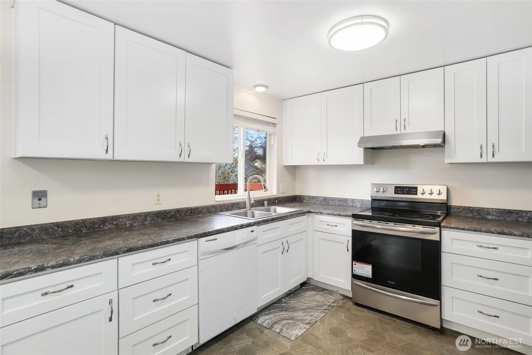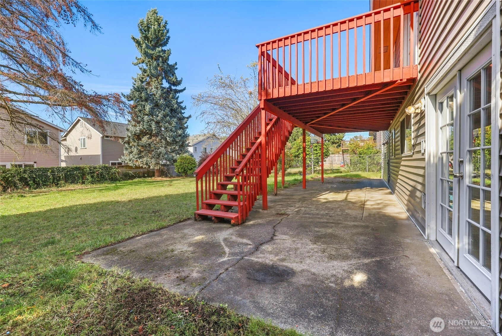 Spacious home with an excellent layout & many recent updates: newer furnace, water heater, vinyl siding, kitchen cabinets/appliances. Main level features large kitchen & enough space to add an island. Big newer vinyl windows on all windows and double sets of french doors from both levels. Large open living room has a fireplace & the walk out lower level offers a 3/4 bath, bedroom, and flexible area with wet bar and cabinetry—perfect for guests, extended living, or potential MIL setup. Big, level, westerly-facing backyard (lot is a shy quarter acre) and is ideal for play/entertaining. Generous square footage and a great Renton location, this home offers outstanding potential & room to personalize & add finishing touches. Sold as-is.