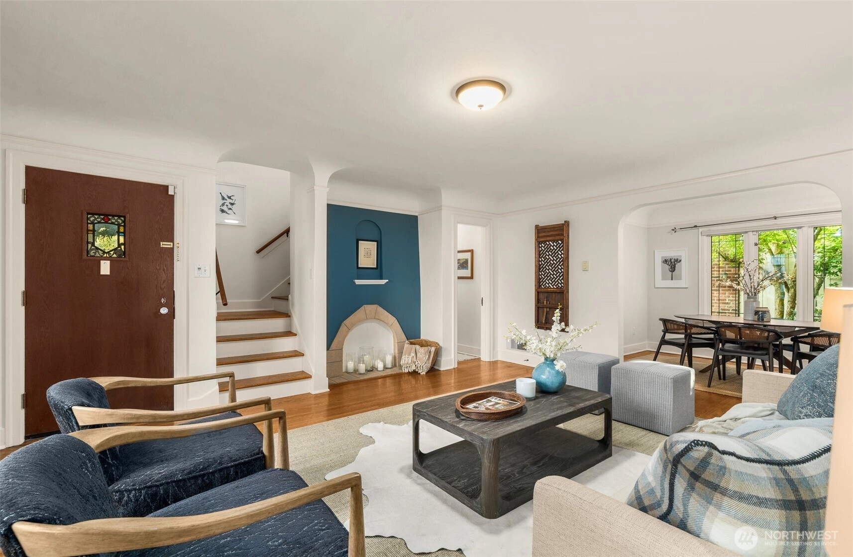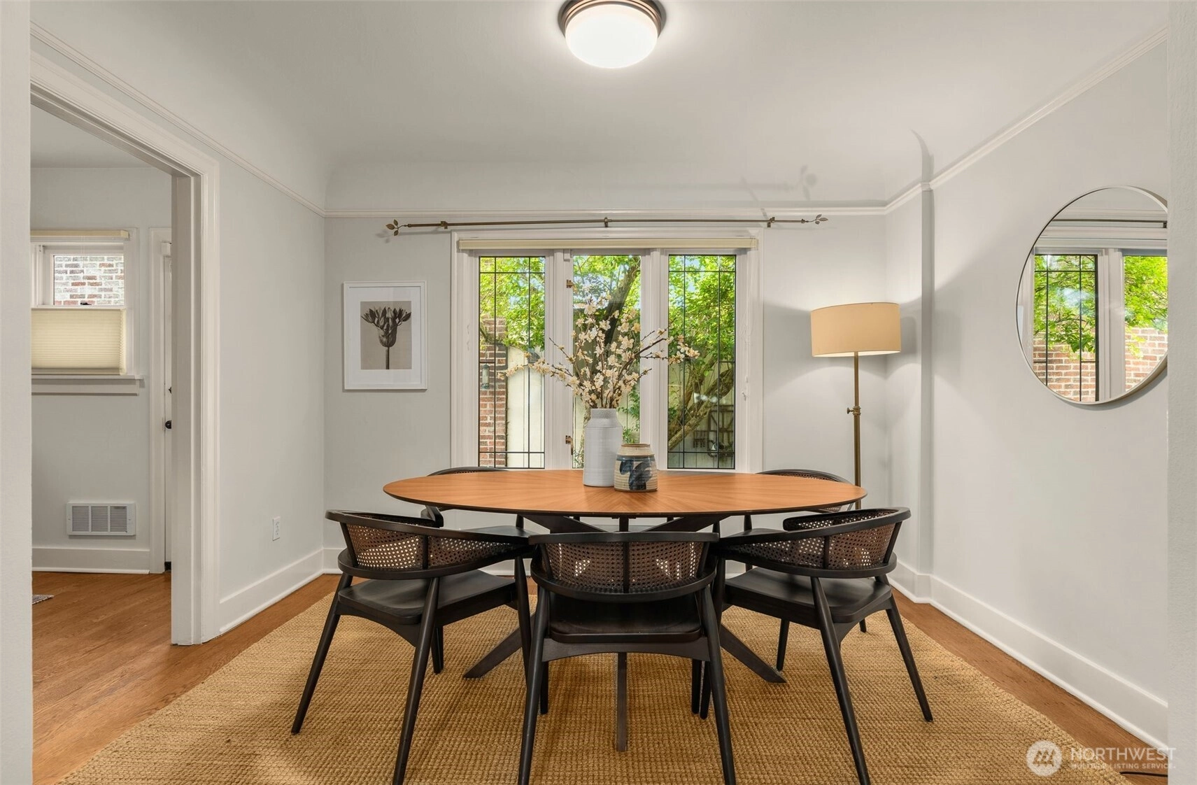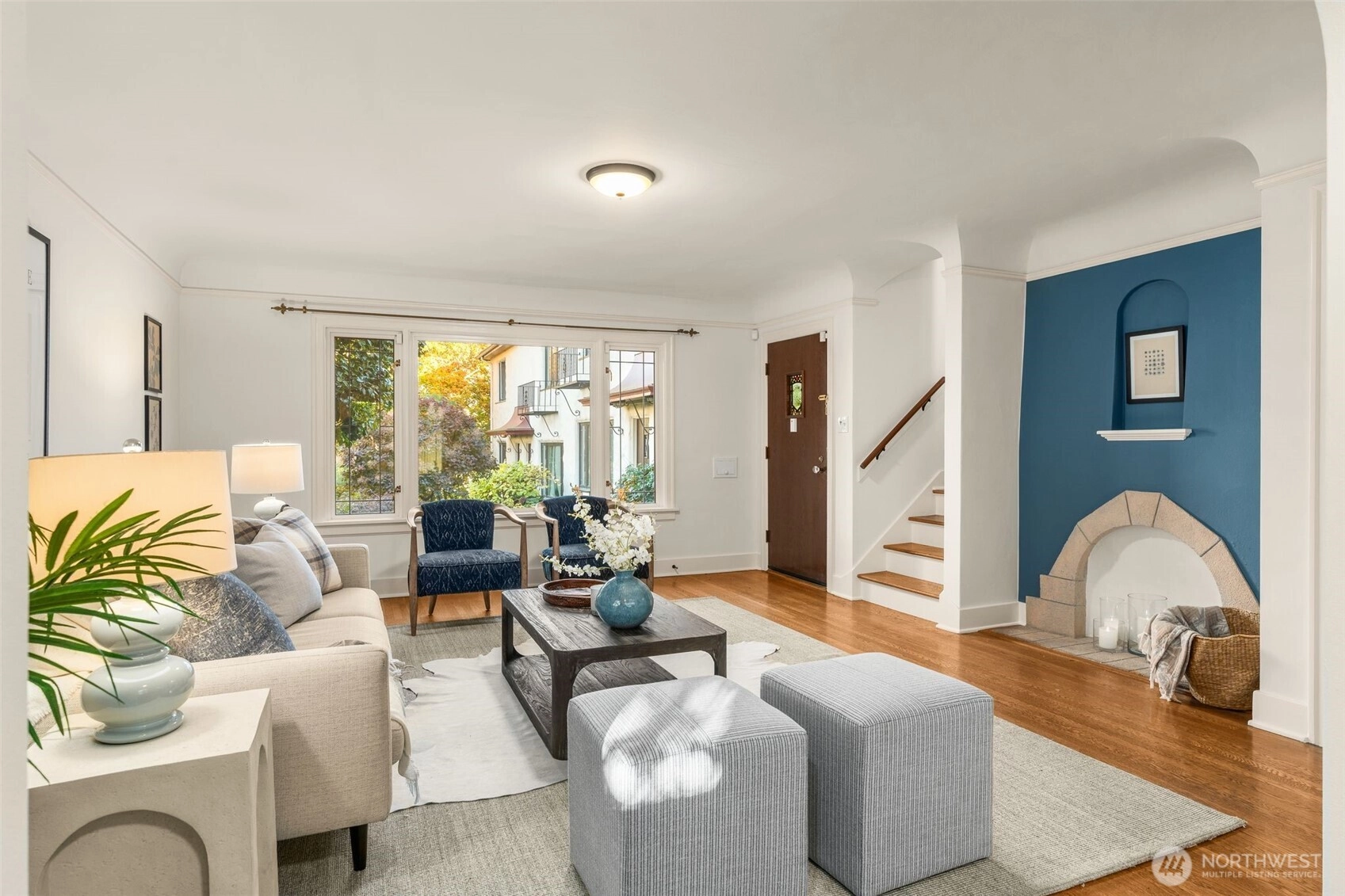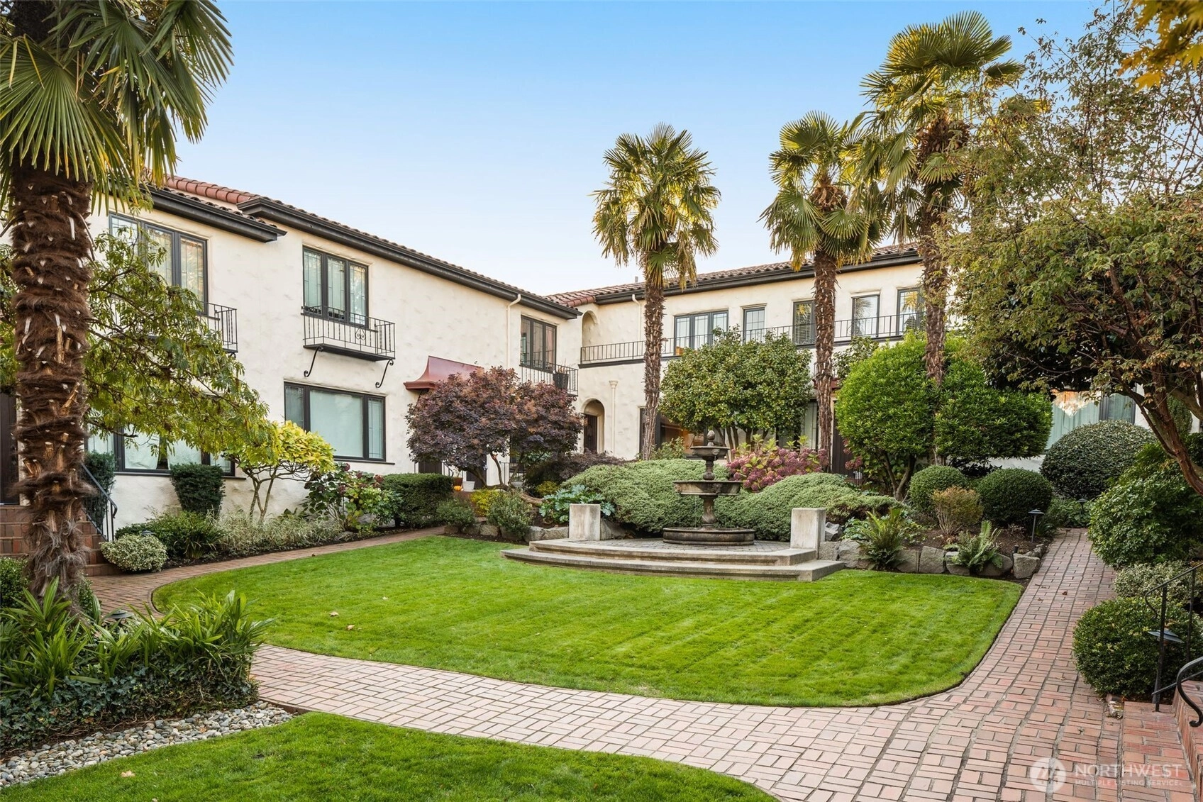 Experience the timeless charm of Barcelona Court, a classic 1928 Mediterranean-style building inspired by the iconic architecture of Fred Anhalt. Hailed as one of the most romantic and exquisitely preserved Spanish courtyard properties, it features a wonderful community courtyard and dedicated outdoor space perfect for alfresco dining. Beautifully maintained, freshly painted interiors, HW floors, and formal living/dining rooms. Modern perks include in-unit laundry, a detached garage, and storage. The prime location is moments from top restaurants, coffee spots, parks and grocery stores (Safeway/Trader Joe's). Pets welcomed! Own a piece of Seattle heritage where elegance and everyday convenience perfectly converge.