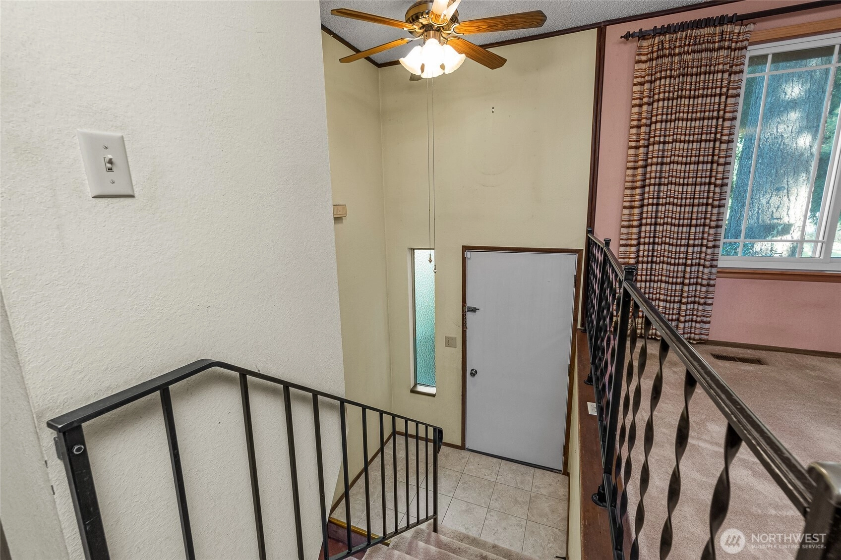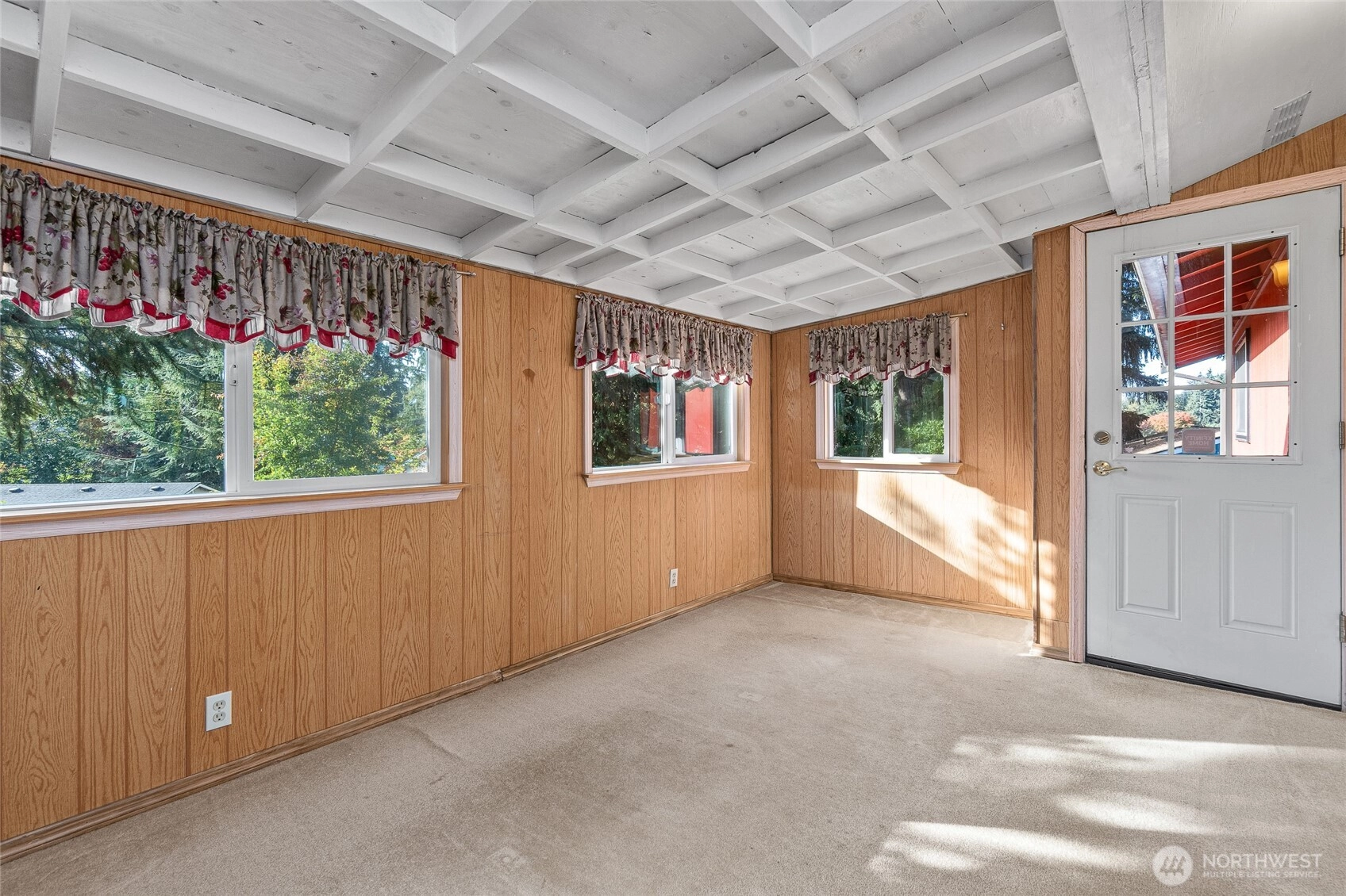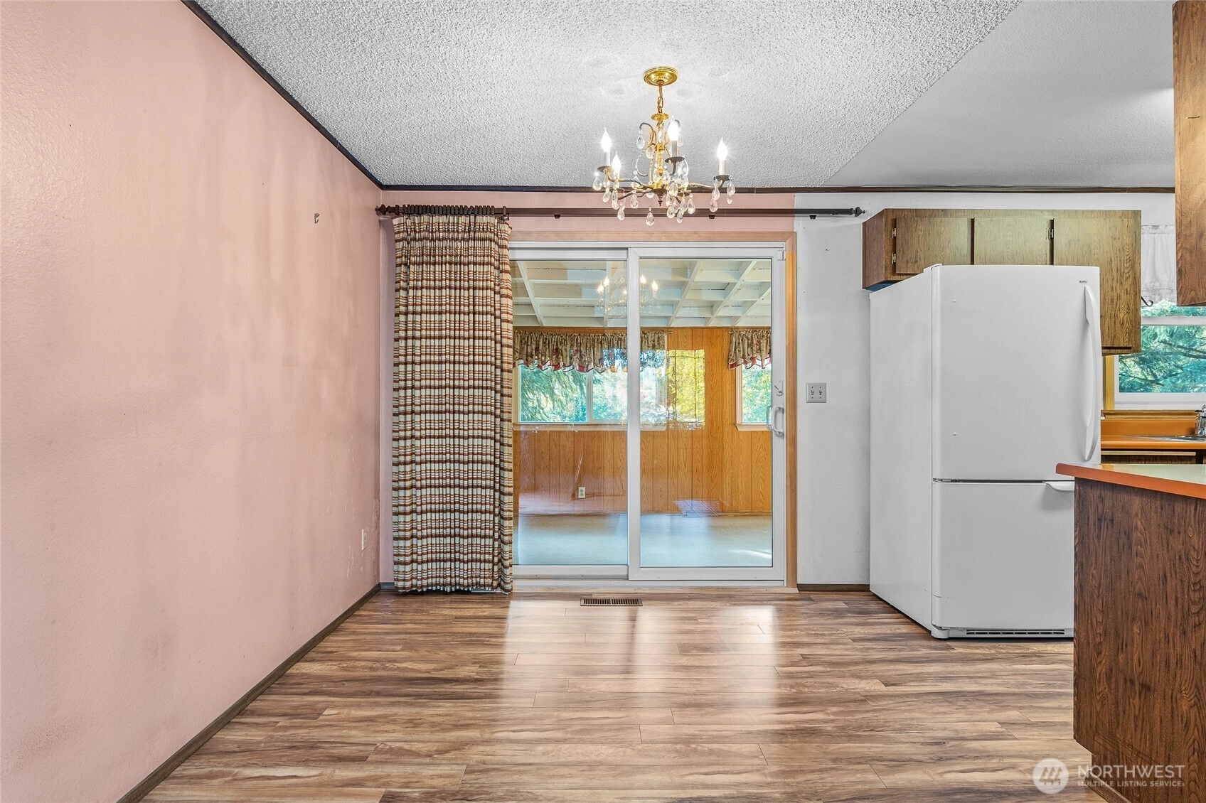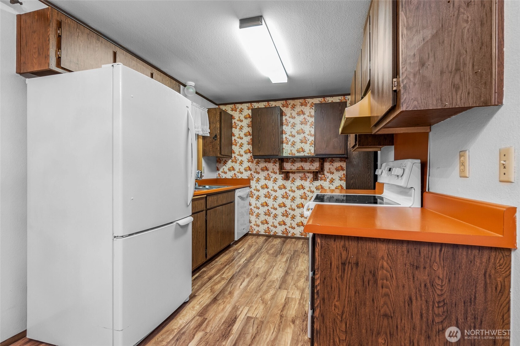 Don't miss this great move-in ready home featuring 4 bedrooms and 1 3/4 bathrooms. Upstairs features a spacious living room with cozy wood stove, open kitchen, 3 bedrooms, and a full bath. There's a large enclosed deck off the dining area for extra living space. Downstairs offers a family room, bedroom/den, 3/4 bath and utility room. New carpet on the lower level. Range/oven, fridge, dishwasher, washer, dryer and garage fridge are all included. Newer Anderson windows throughout. A large beautiful fenced and private yard with garden space, fruit trees, water feature and raised beds. Located in Rhodes Wood just a mile from Safeway and Costco. Check out all the pictures then go see this one!