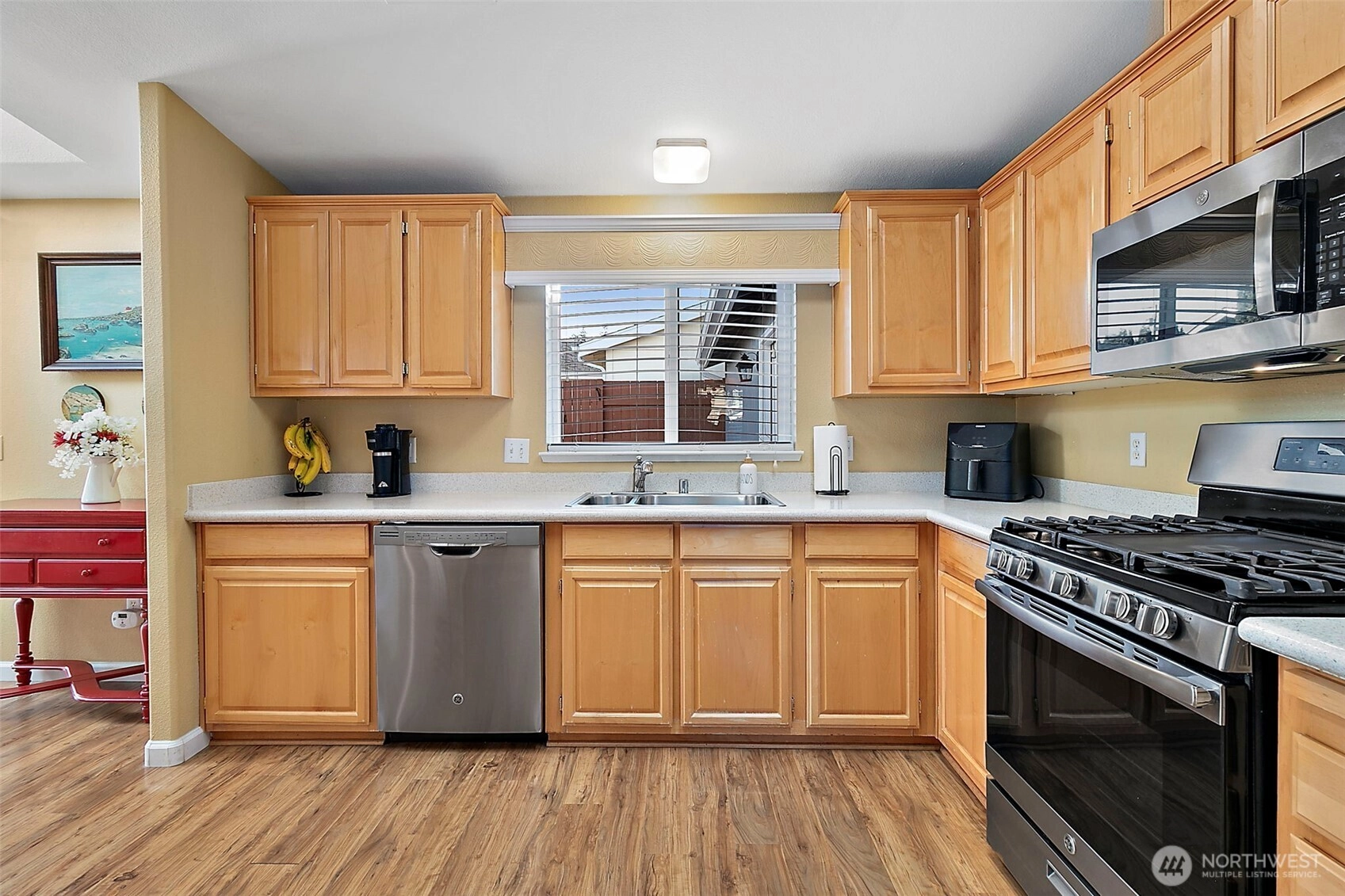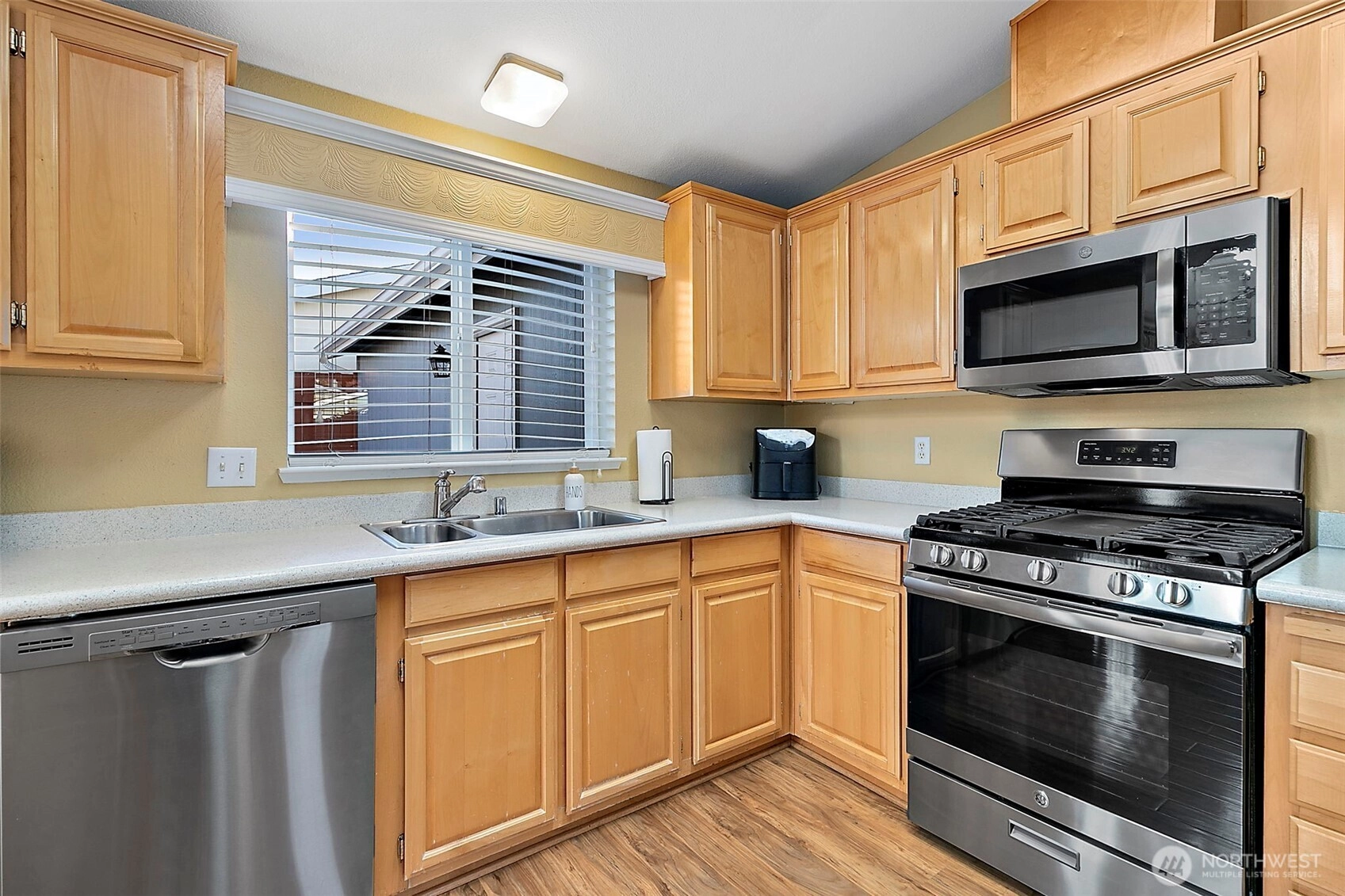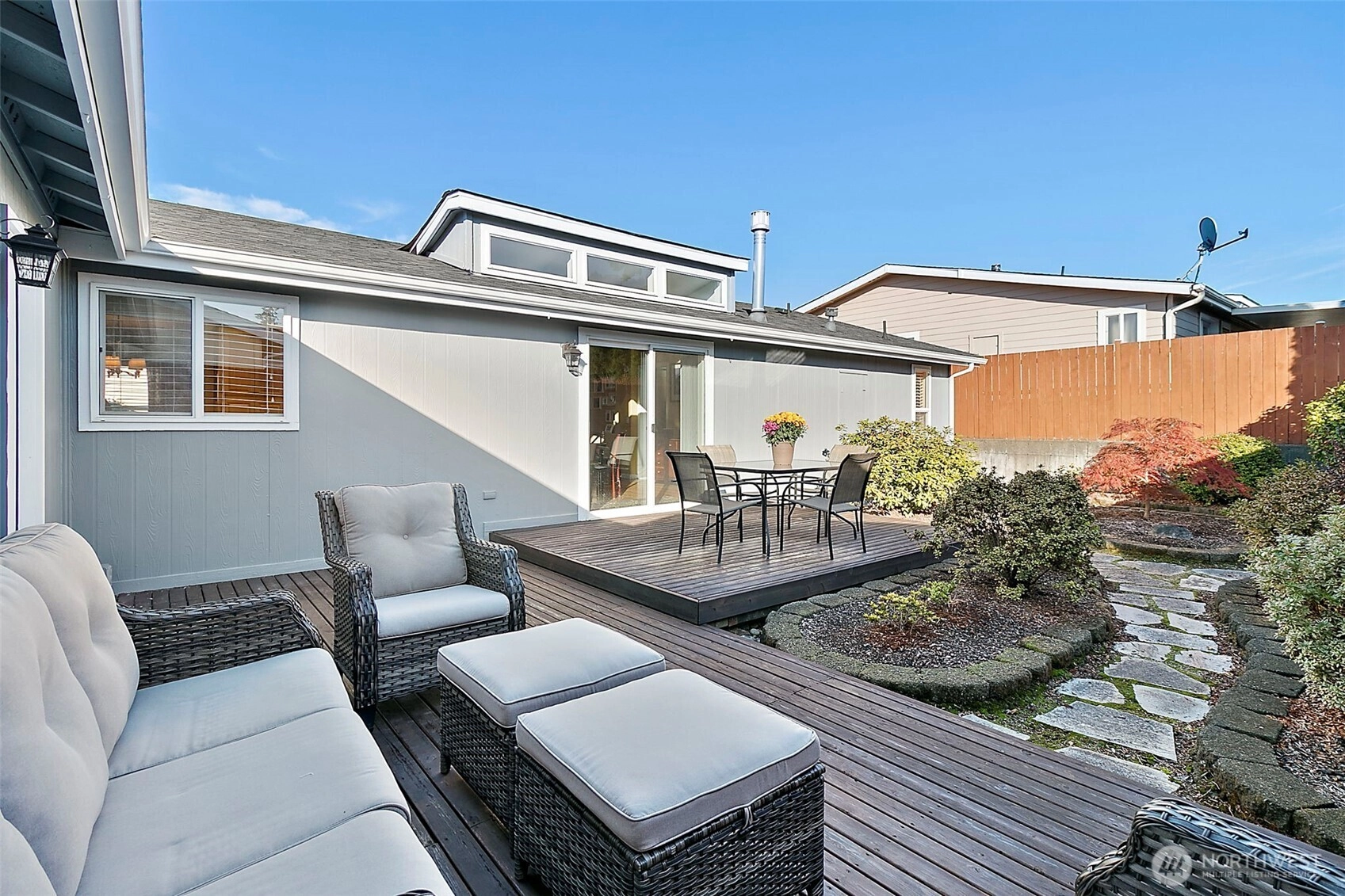 Welcome to sought-after Wilderness Villa, a vibrant 55+ community! This beautifully maintained 3-bed, 2-bath home offers comfort, style, and convenience just steps from the clubhouse and amenities. The spacious living area features vaulted ceilings, skylights, and a cozy gas fireplace that fills the home with warmth and natural light. The bright kitchen boasts newer SS appliances, abundant cabinetry, and plenty of counter space. Relax or entertain on the private, low-maintenance backyard deck surrounded by easy-care landscaping. The primary suite includes a walk-in tub and separate shower for added comfort. Additional highlights include a full laundry room, two-car garage, and prime location near shopping, dining, and medical services.