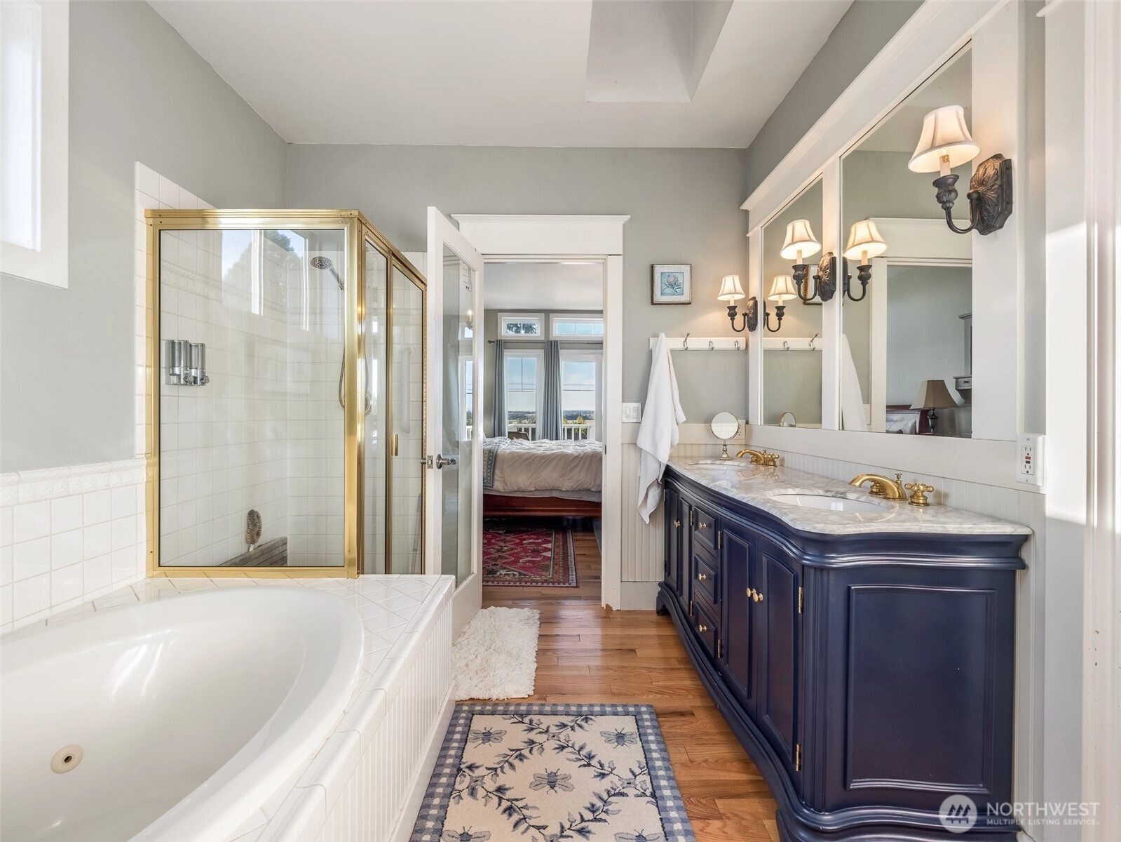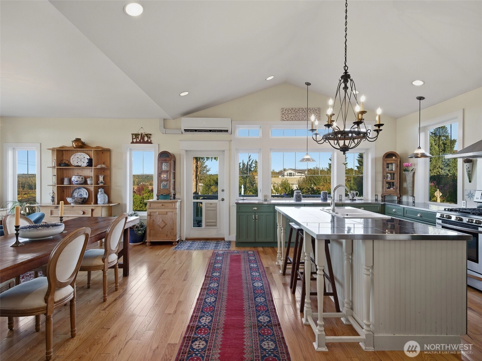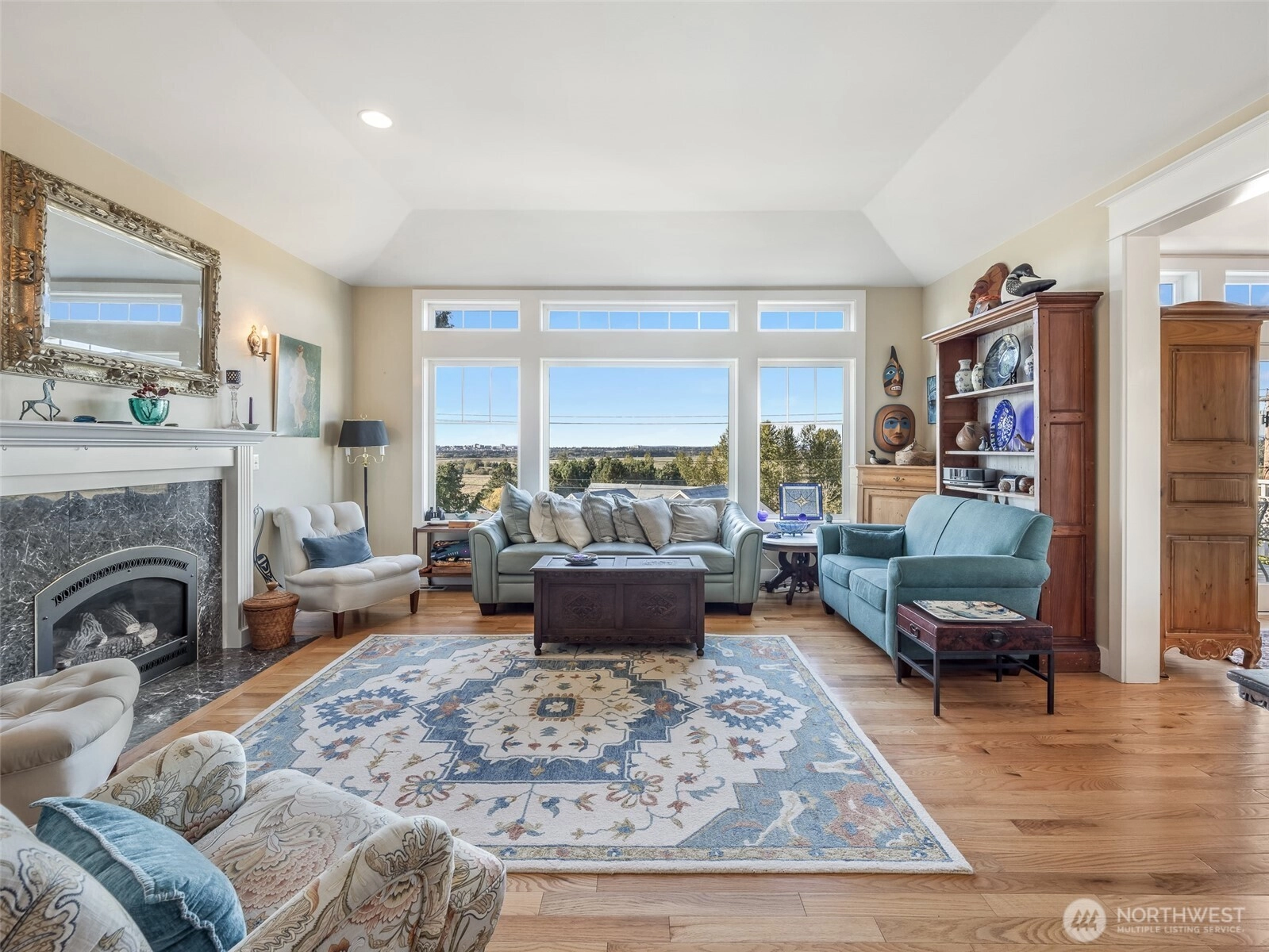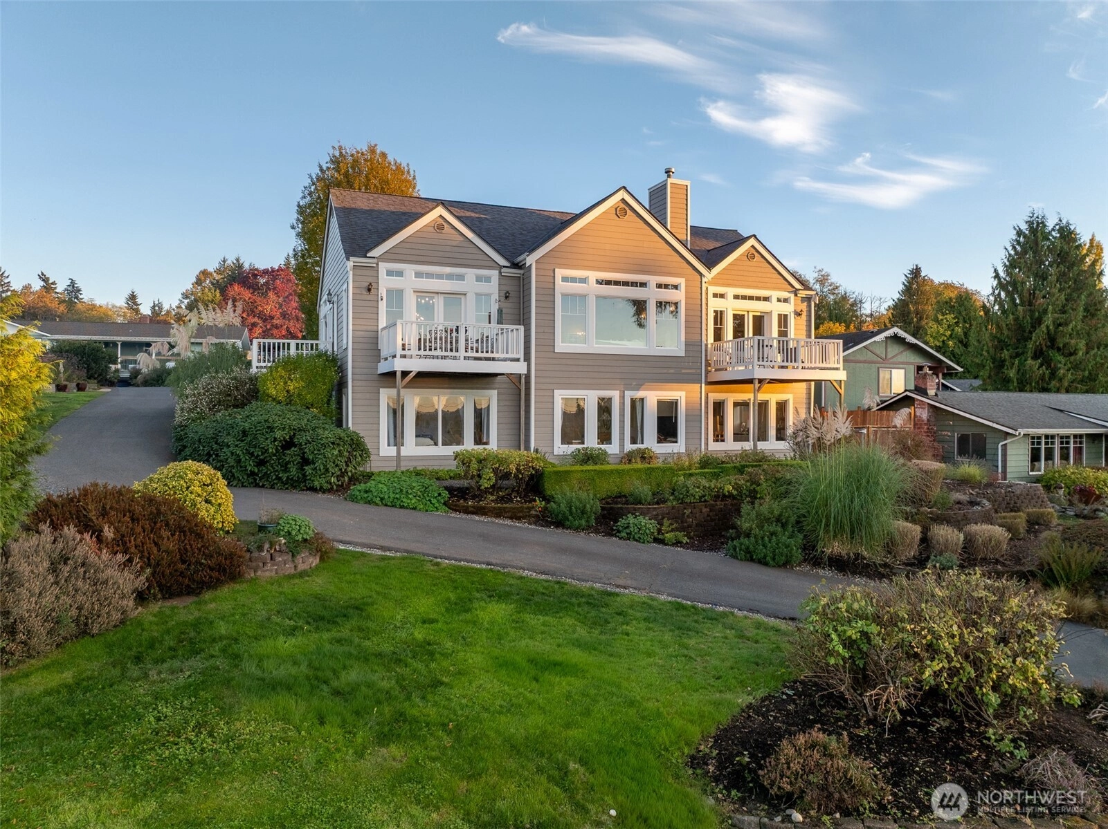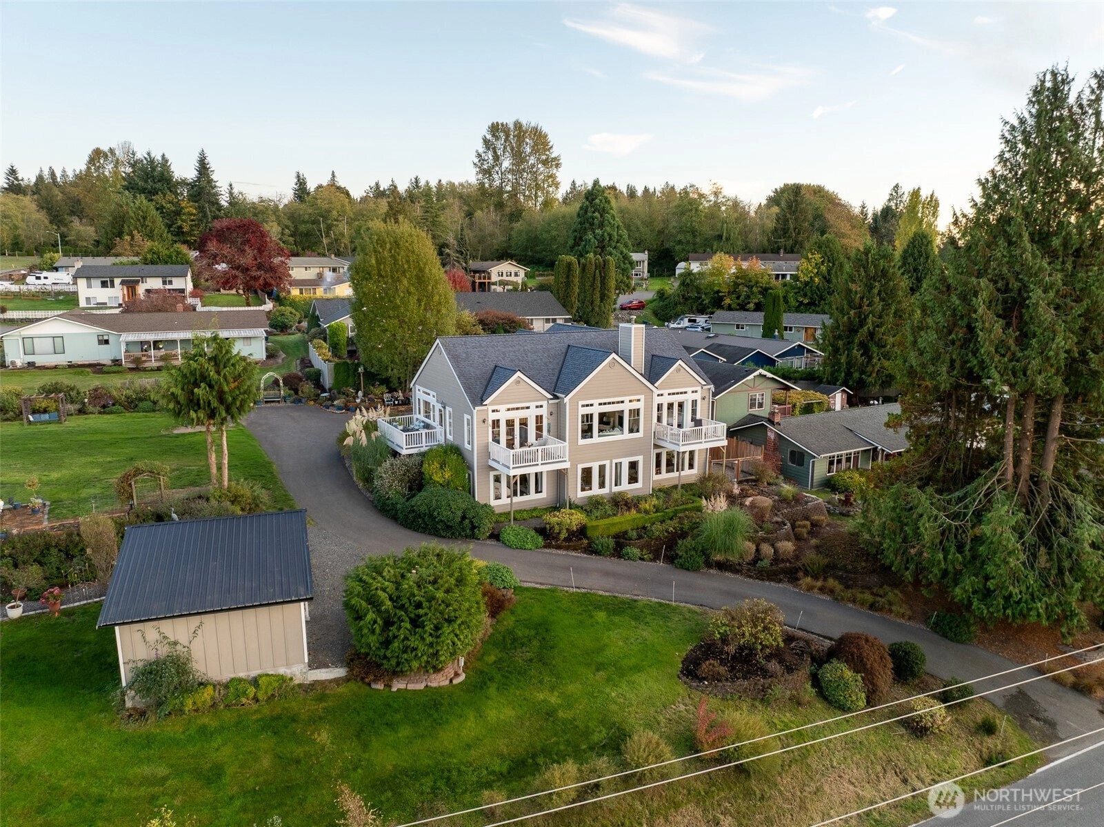 Perched on a serene ½ acre with sweeping views of Snohomish Valley and Mt. Baker, this Nantucket-inspired home welcomes you with timeless charm and light-filled spaces. Inside, pine and hardwood floors, 9 ft ceilings, and an open layout connect the living, dining, and family rooms around a cozy fireplace. The chef’s kitchen offers ample counter space, an eating bar, and picture windows framing the lush grounds. The main-floor primary suite provides comfort and privacy, with a second bedroom and powder room nearby. Downstairs, find two more bedrooms, a full bath, rec room, and office. Outside, enjoy gardens, fruit trees, and a gazebo retreat.