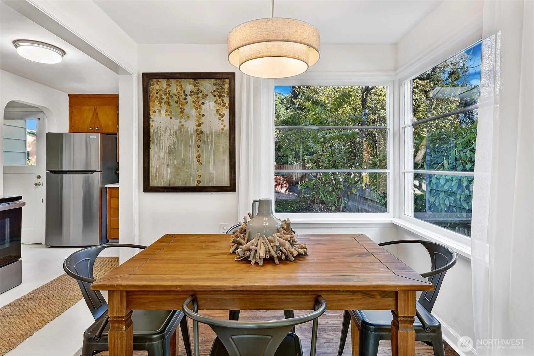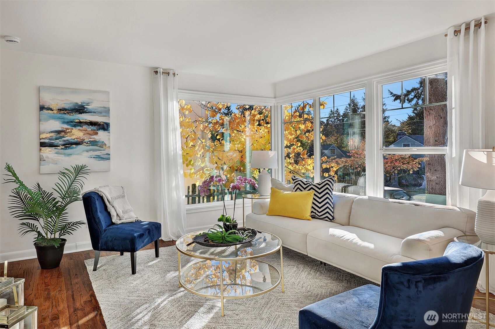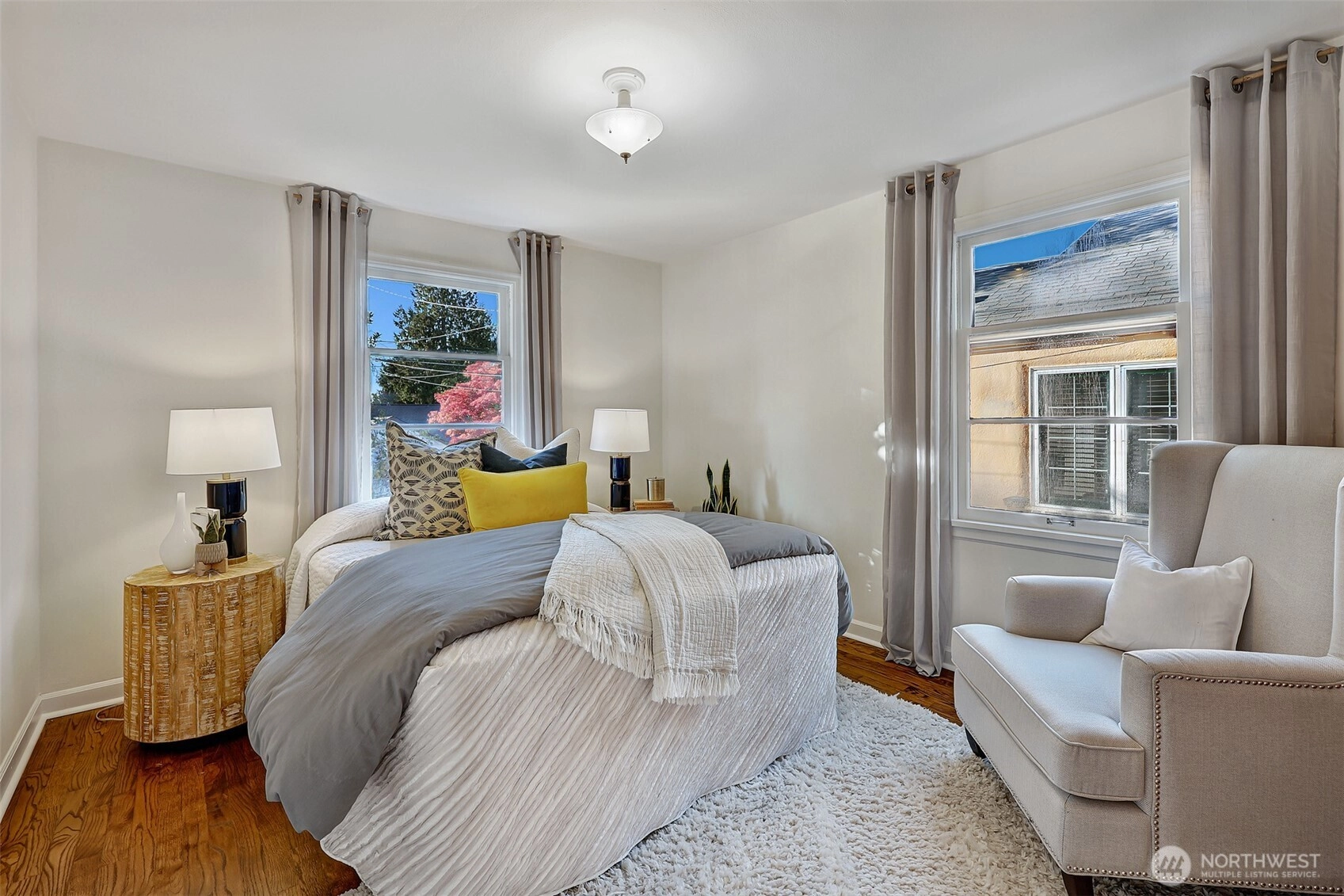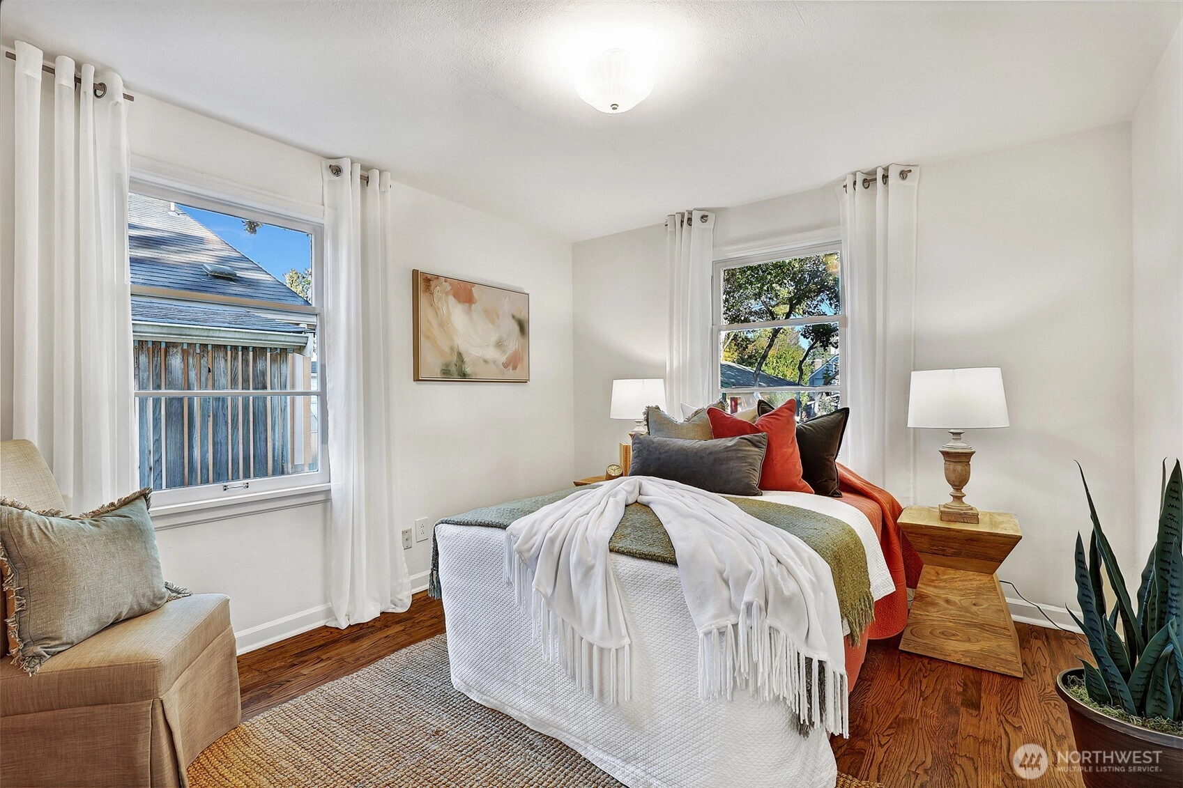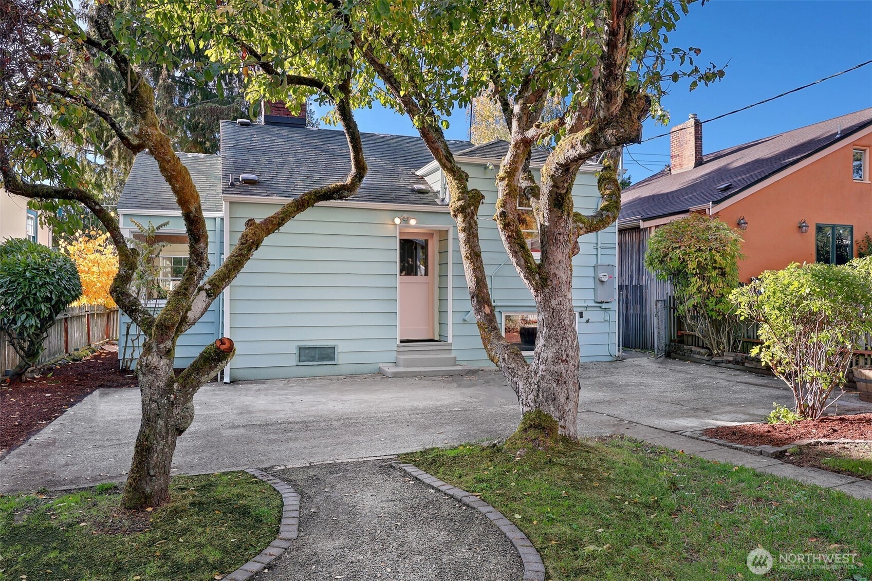 Meet “Hey Jude” — a classic North Seattle cottage full of charm, light, and vintage touches. Bright main floor with refinished hardwoods, spacious bedrooms, updated lighting, and modern kitchen appliances. Main floor bedrooms are roomy, and up a short flight of stairs, making for great privacy in a smaller footprint. Downstairs features a private bedroom with ensuite bath. Upstairs half-story offers 227 additional square feet (not in tax record) with flexible space for storage, play, or a future dormer. Alley access to an extra large 624 SF detached garage/shop with an oversized roll door – a rare find with endless potential! Pre-inspected and ready to welcome its next chapter.