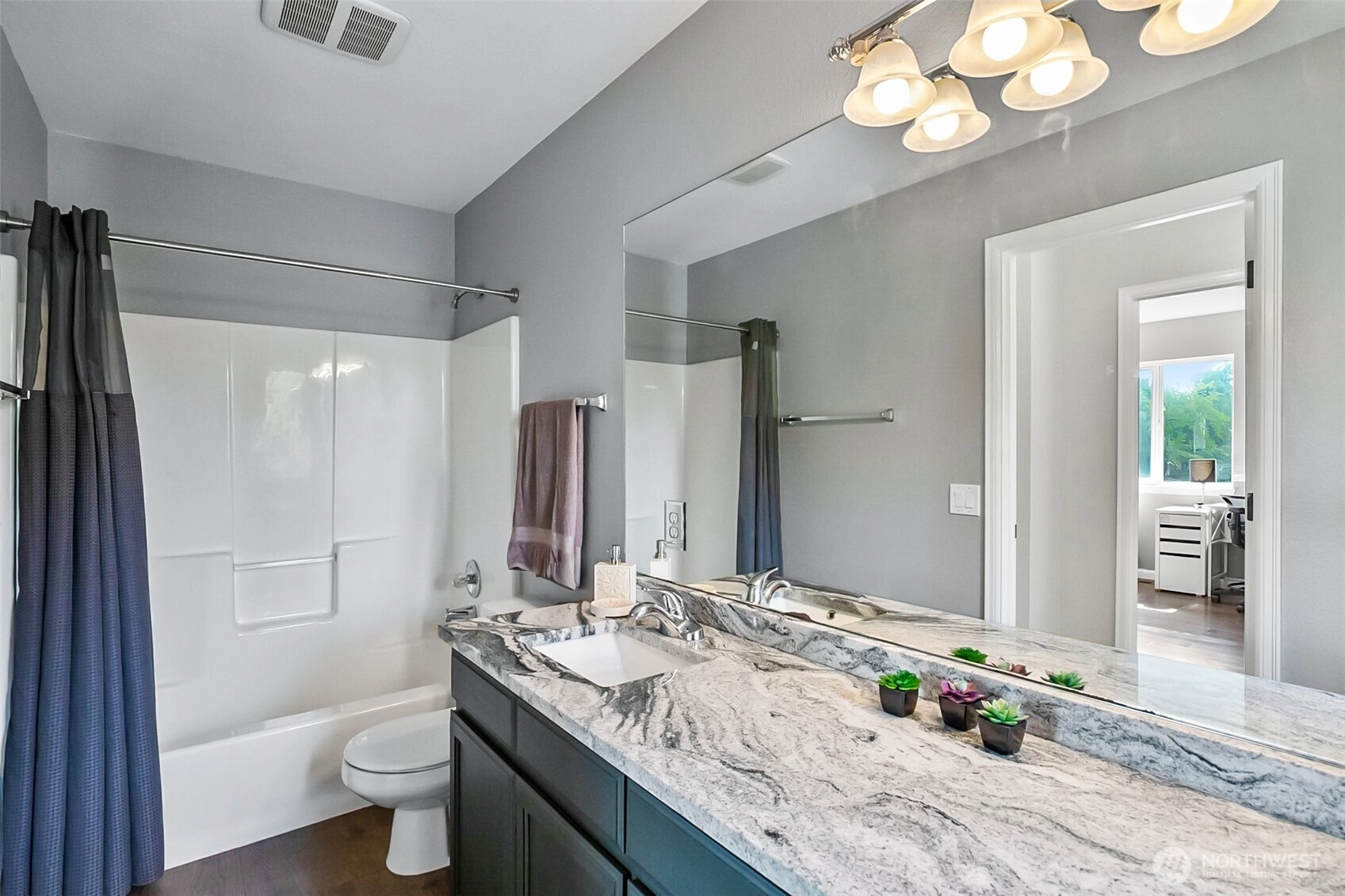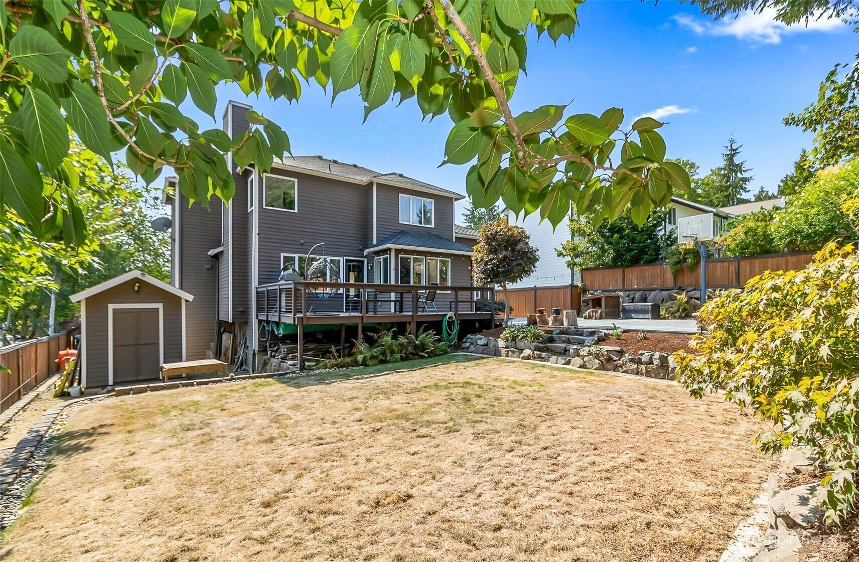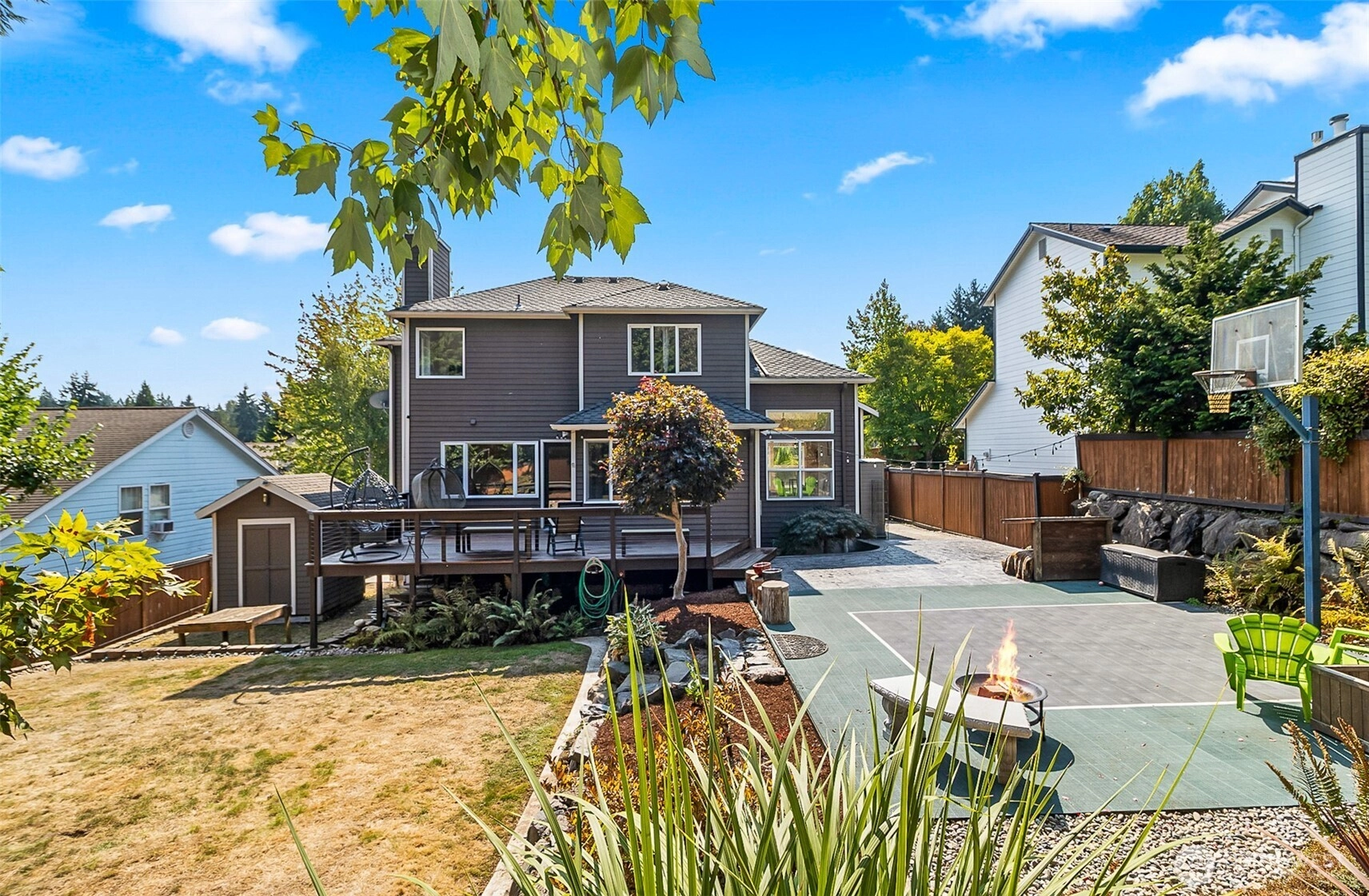 Don’t miss this Finn Hill gem tucked away on a convenient cul-de-sac! This inviting two story offers a thoughtful layout perfect for entertaining and every day living with 3 bedrooms and 2.5 baths. The stylish kitchen with granite countertops, stainless steel appliances, and island opens to the family room with cozy gas fireplace and access to an oversized deck. Vaulted ceilings and wood flooring add modern appeal. Upstairs the primary suite features a double vanity with walk in closet, plus 2 additional bedrooms. Step outside to a fully fenced landscaped backyard with sport court and garden shed—ideal for play or relaxation. Top rated Lake Washington schools. Pre-inspected with new gas furnace and hot water tank—move in ready!