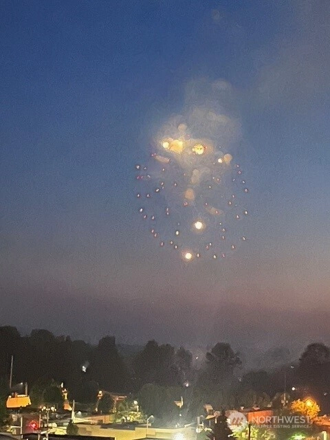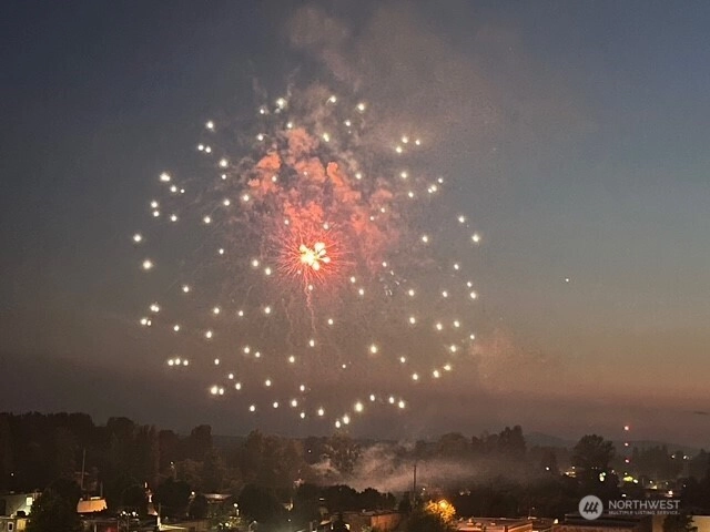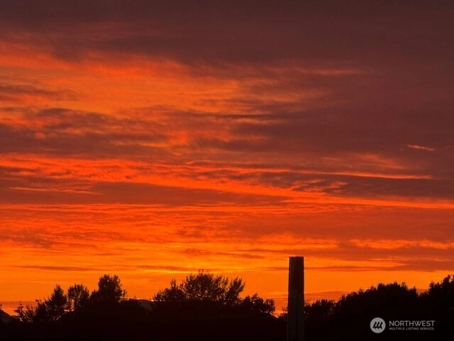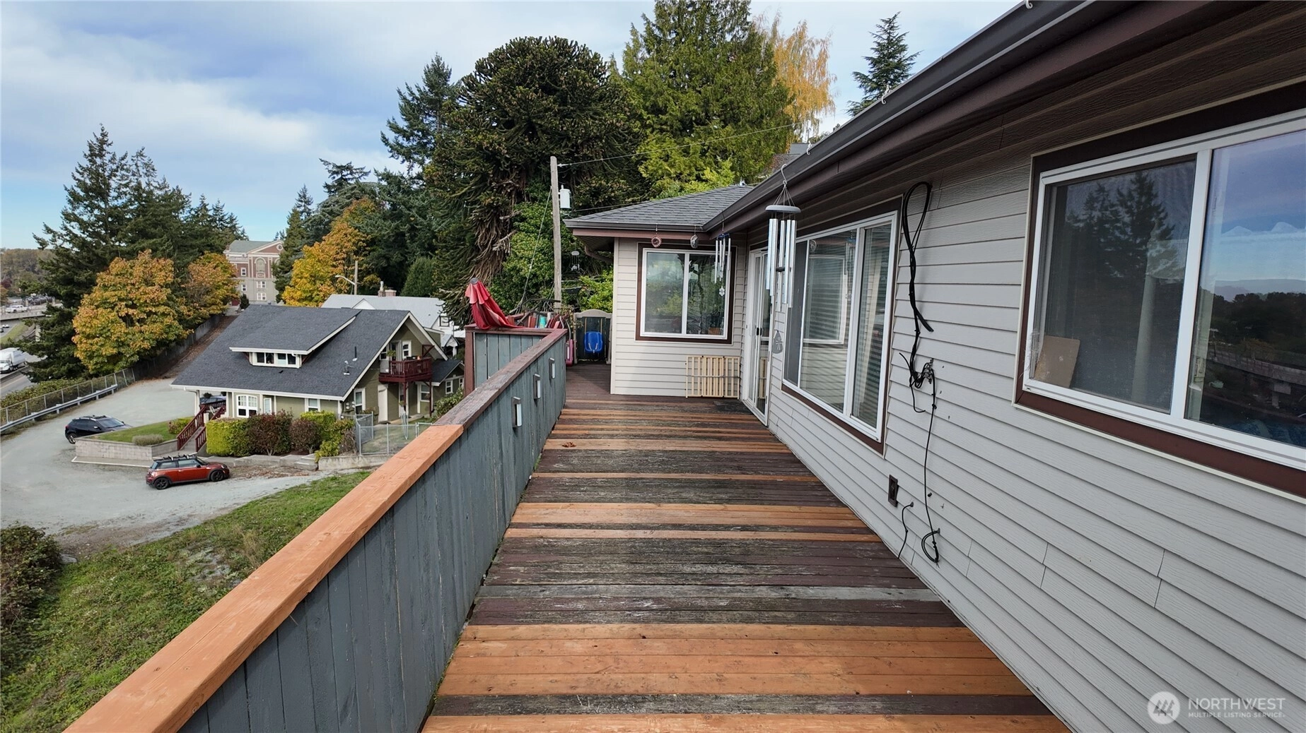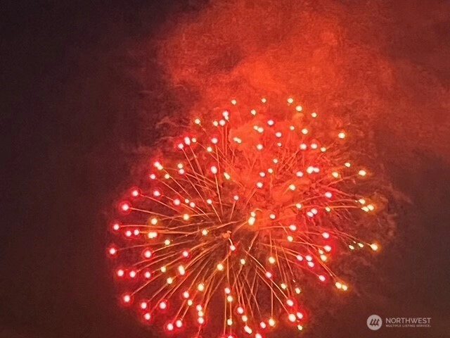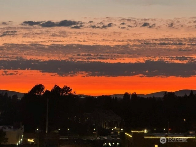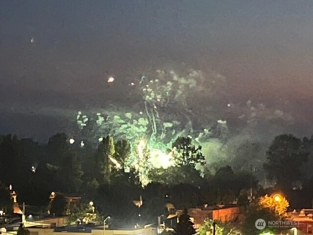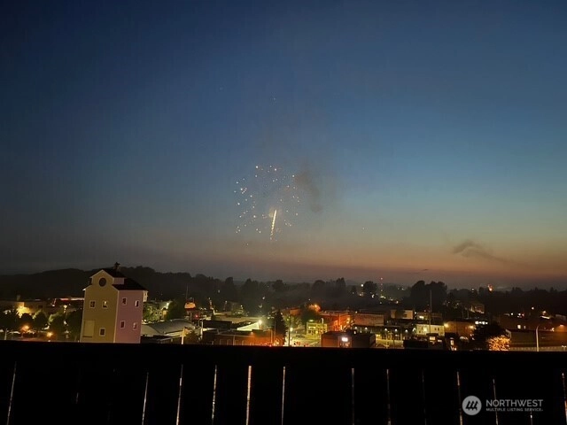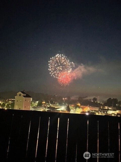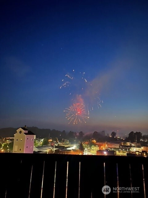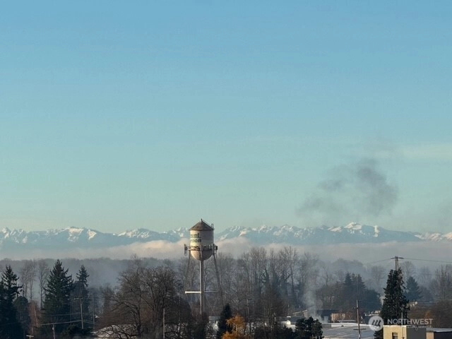 Panoramic views of mountains, city, river and sound. 596 square foot decking off of living room with the most amazing views! Dining area off kitchen is part of the breath taking 180 degrees. Stainless steel kitchen appliances and double pull out kitchen pantry. New premium waterproof flooring; fireplace in living room; 2 bedrooms; 1 1/2 baths; study nook. Solar panels, private, fenced yard and covered front porch. Storage building. Additional storage and parking accessed by street below.