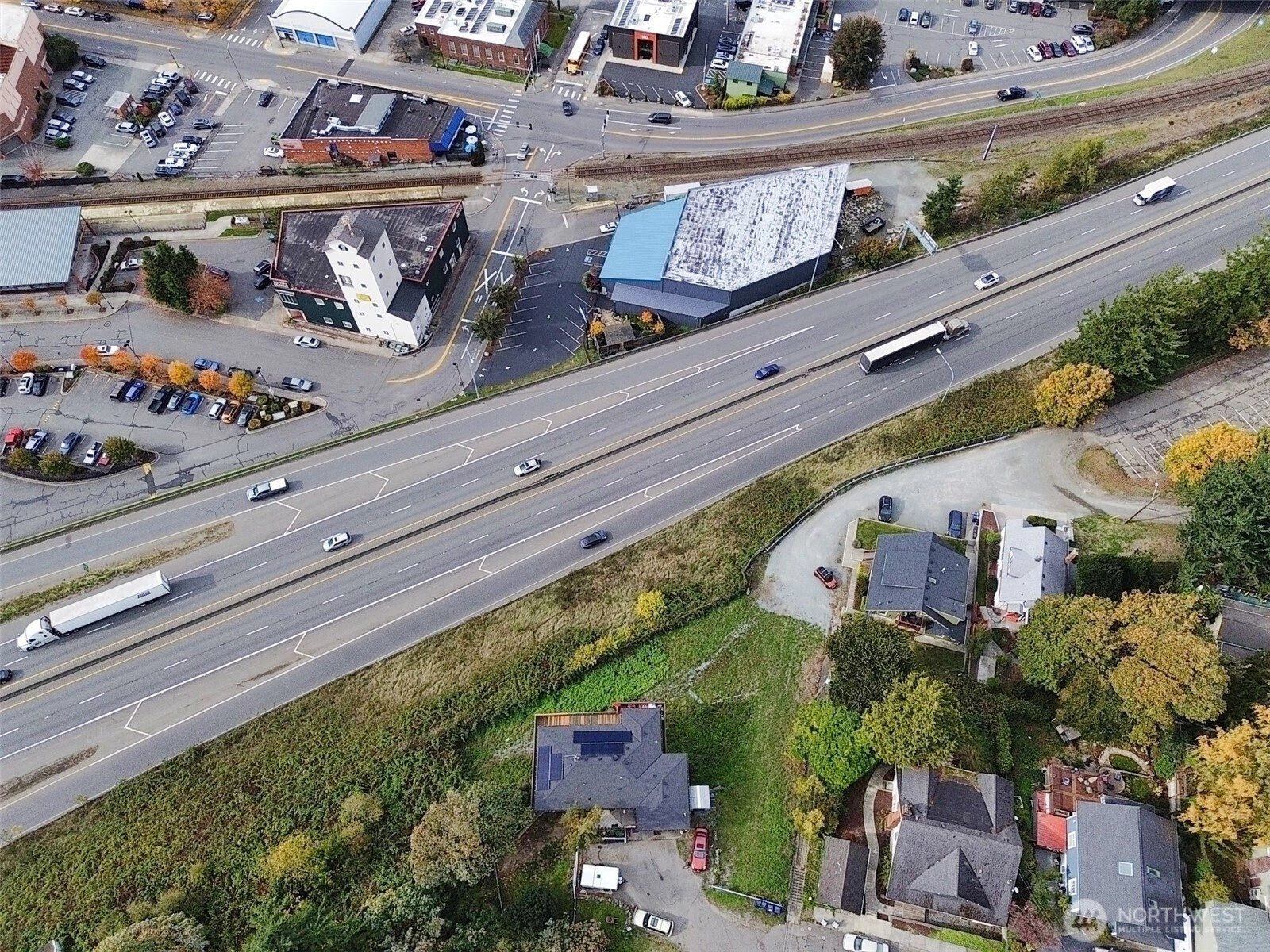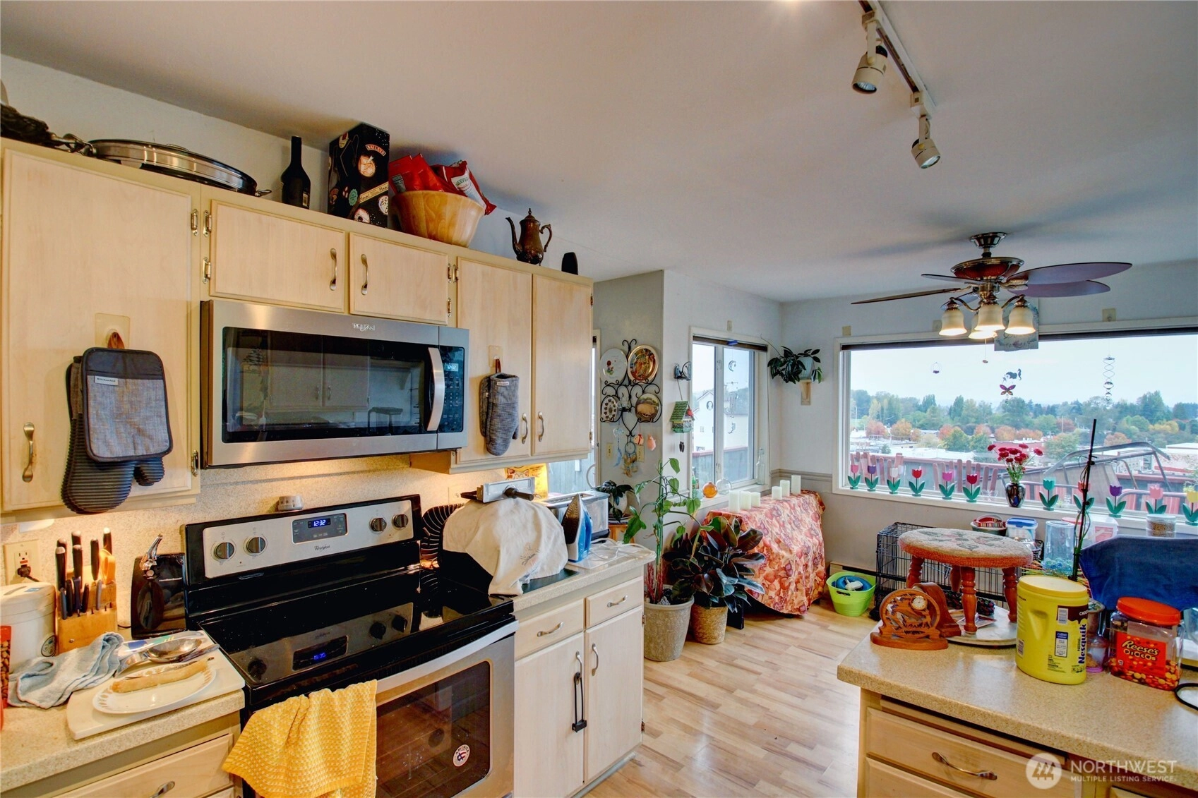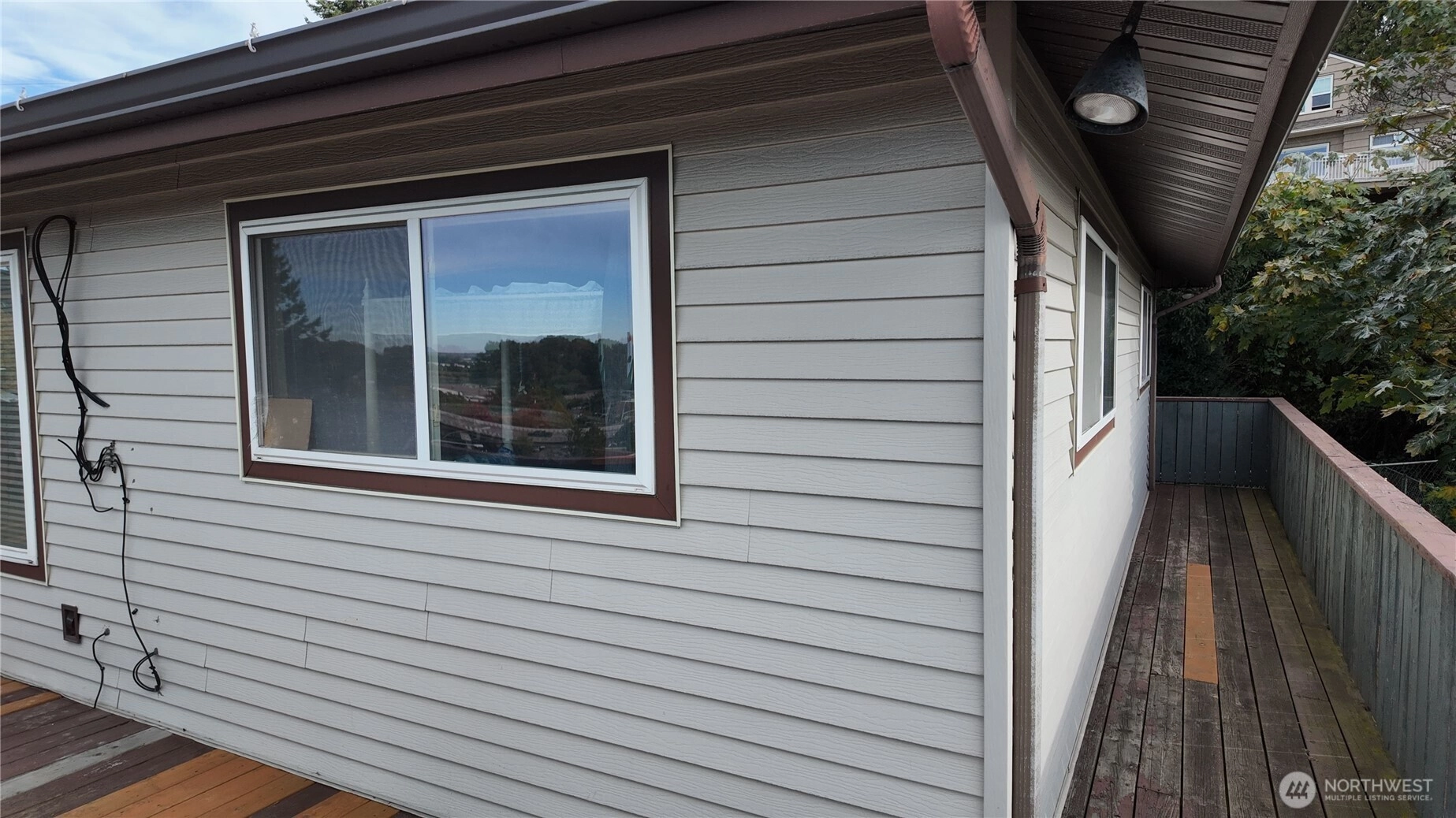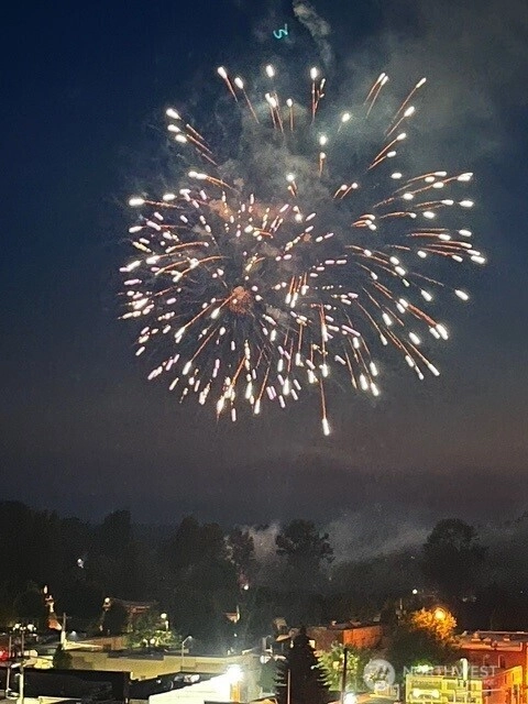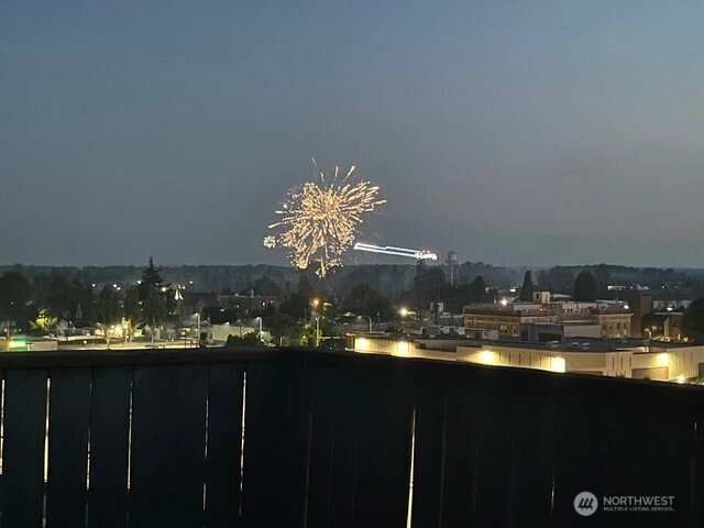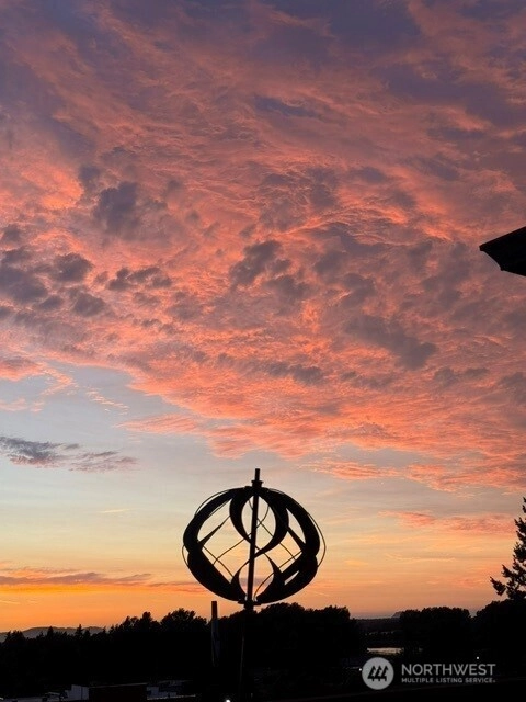 Panoramic views of mountains, city, river and sound. 596 square foot decking off of living room with the most amazing views! Dining area off kitchen is part of the breath taking 180 degrees. Stainless steel kitchen appliances and double pull out kitchen pantry. New premium waterproof flooring; fireplace in living room; 2 bedrooms; 1 1/2 baths; study nook. Solar panels, private, fenced yard and covered front porch. Storage building. Additional storage and parking accessed by street below.