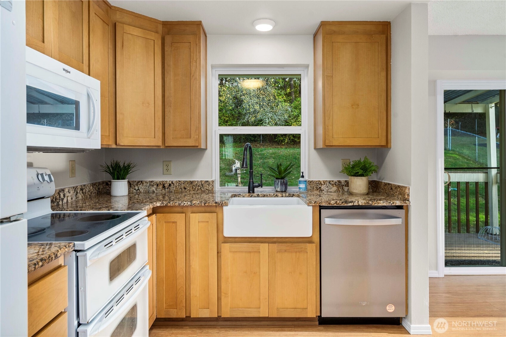 This is the one! Don't miss this fully refreshed 4-bed, 2-bath gem in one of Spanaway's quietest, tucked away neighborhoods. This Split level home offers 2 bedrooms and a full bath both upstairs and downstairs + includes all new carpet, interior paint, lighting & hardware & updated vinyl plank flooring. You'll love the updated kitchen with granite counters, the Mini split heat pump w/ AC and the sprinkler system all included on this sprawling quarter-acre lot!