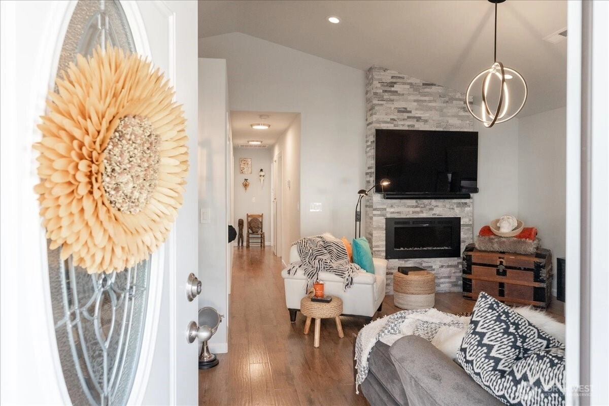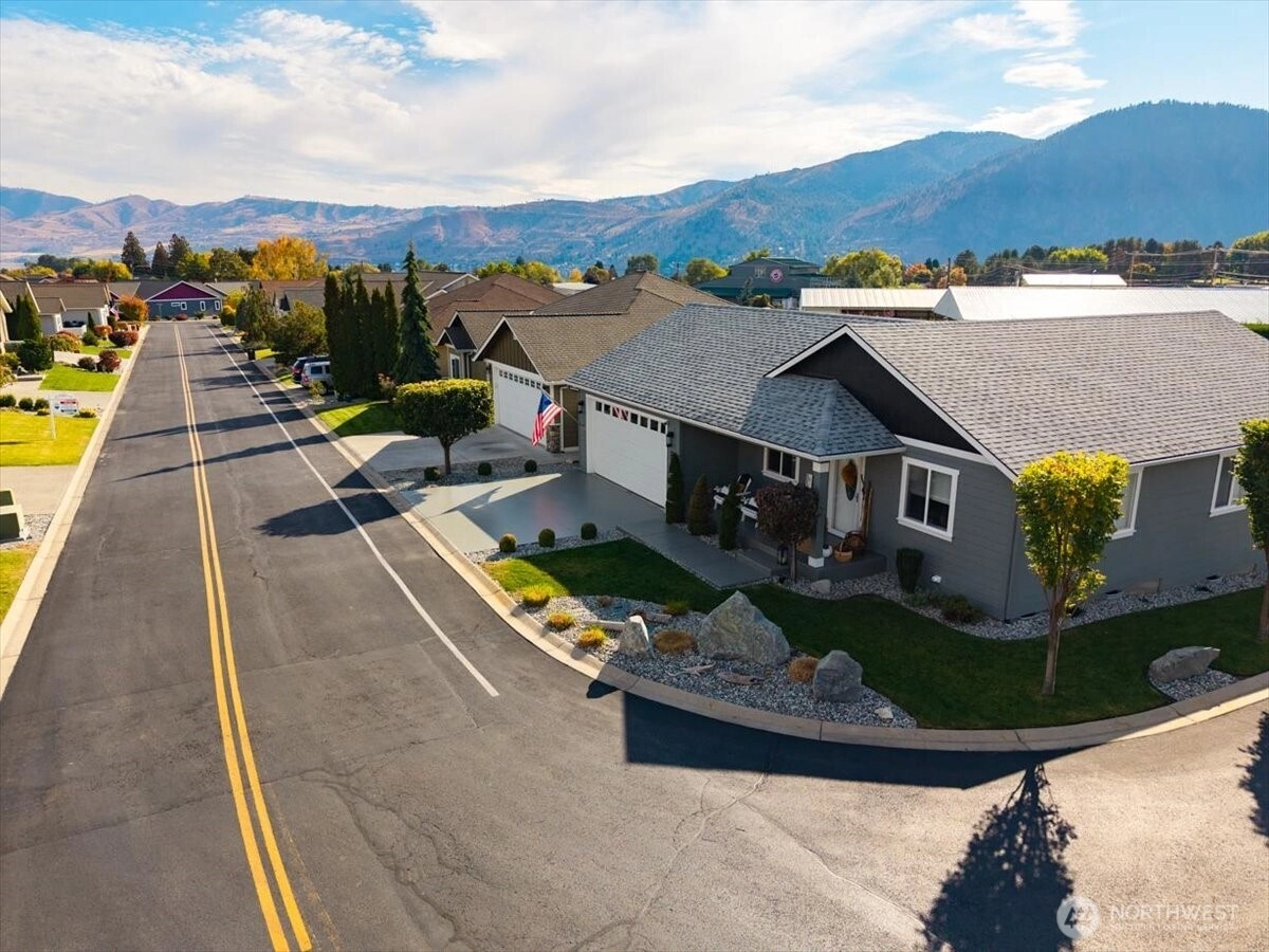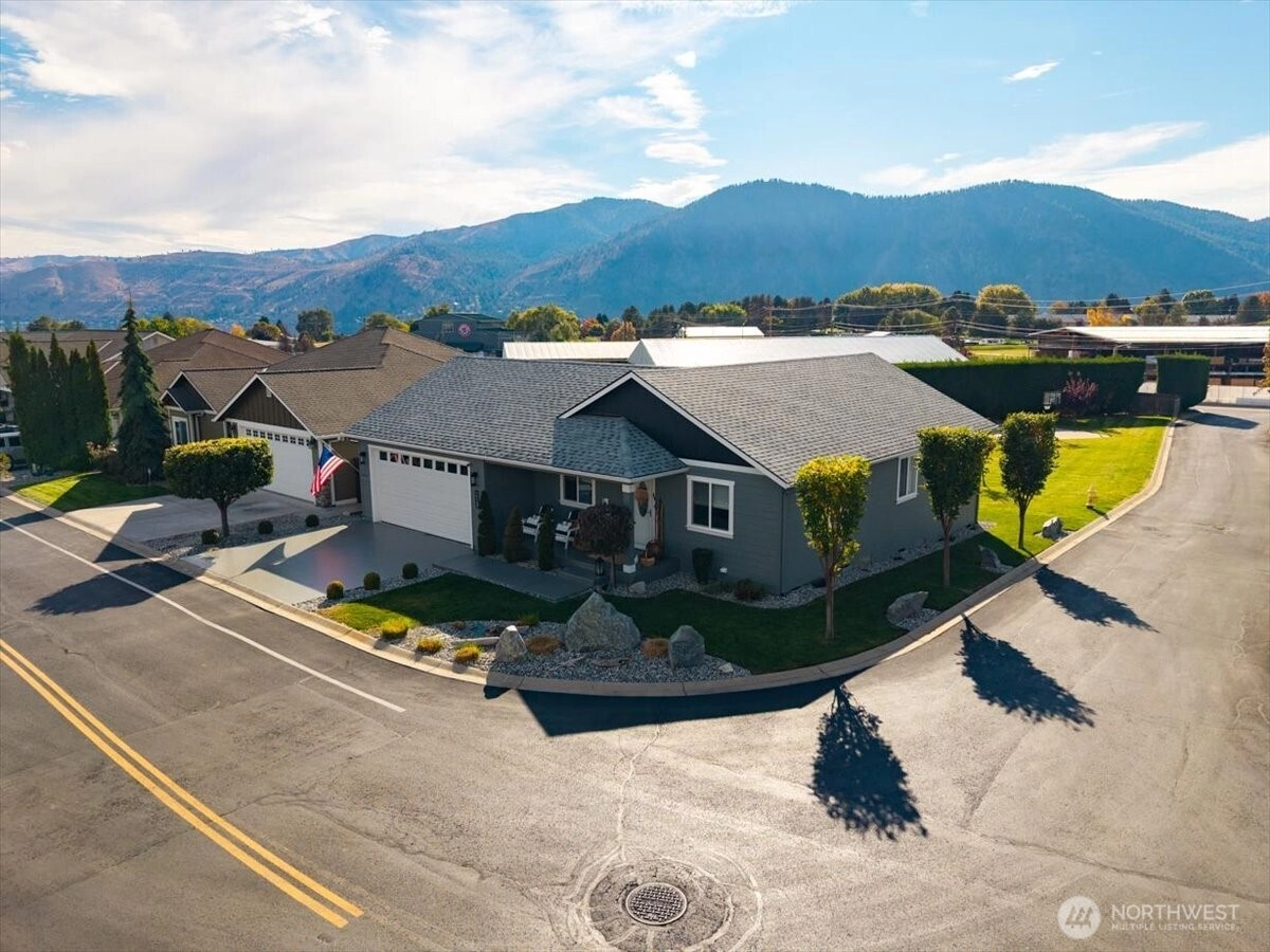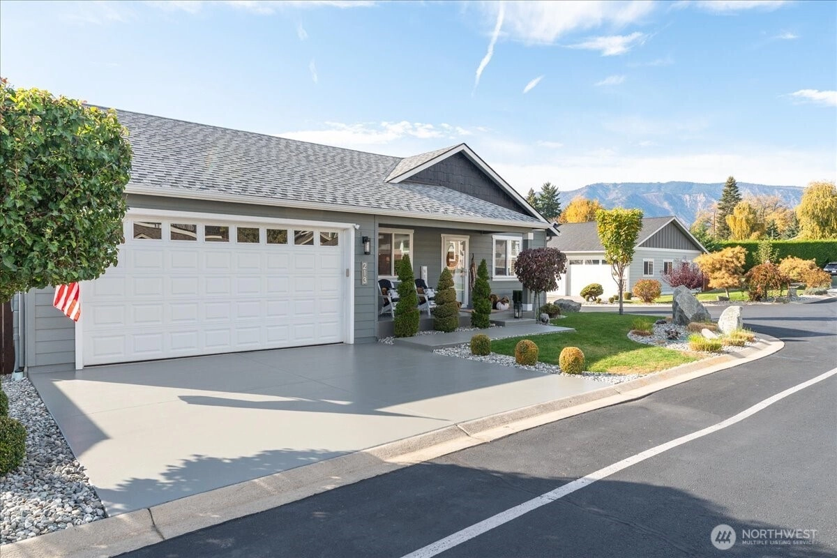 Impeccably clean inside & out, 3-bed/2-bath, 1,203SF rambler on an ideal corner lot, at 213 Village Dr. Uniquely, the site borders the HOA grounds and basketball court, allowing a natural extension to your backyard w/out the maintenance. Inside, enjoy evident pride in ownership w/ light & bright finishes, mood lighting, an electric fireplace with/ a stone veneer in the vaulted great room, & timeless LVP flooring. Kitchen features granite countertops, SS appliances, slow-closed cabinets w/ well-accented hardware. Primary en-suite provides a walk-in closet & oversized vanity. Exterior find a magazine-like landscape & a covered back porch that distinctively offers views of the mountains. Close walk to pool amenities, dog park & DT Manson.
