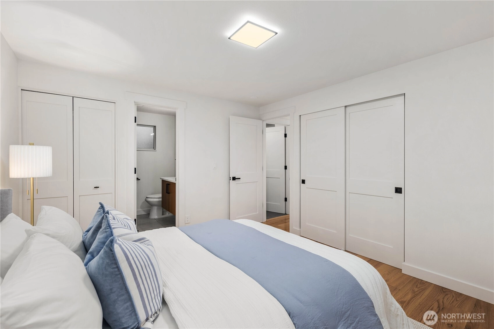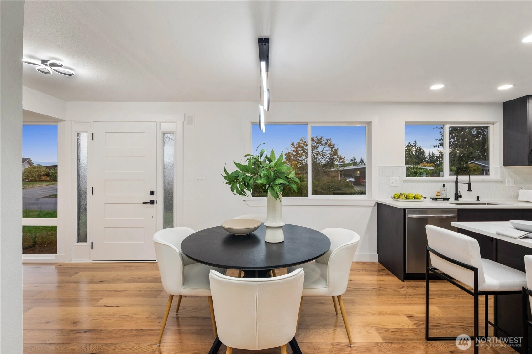 Welcome to Lochmoor! This stylish 2-story home sits on a spacious corner lot & offers partial mountain & lake views from a prime Bellevue location. The remodeled kitchen features SS appliances, custom tilework, gas range & modern cabinetry. Light-filled living spaces showcase new LVP flooring, doors, lighting fixtures, and fresh interior & exterior paint. The primary suite includes a peek-a-boo view of Lake Sammamish and an updated ¾ bath. Enjoy the new Trex deck, landscaped yard, and attached 2-car garage with epoxy flooring. The fully fenced backyard is ideal for entertaining. Conveniently located near Lk Sammamish, Crossroads Park & Mall, top-rated schools, & local amenities. This gem perfectly combines comfort, style, and convenience!