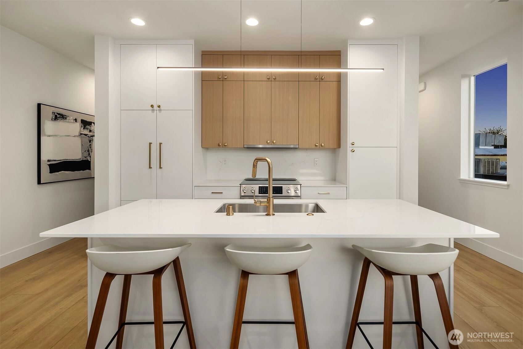 Acclaimed developer Halverson Design Build presents a classic New York City-style collection of residences, each featuring rare self-contained apartments on the first floors, ideally suited for rental, guest quarters, home offices, or live/work spaces. Modern design + a thoughtful layout highlight this sun-drenched Fremont townhome. Chef’s kitchen offers premier stainless appliances, quartz counters + designer finishes. Unwind in the luxurious primary bedroom suite with spa-like bath, which occupies the home’s entire top level. Step up to a private rooftop deck, an urban oasis with mesmerizing views + great potential for entertaining. Vibrant, walkable neighborhood with great parks + dining.