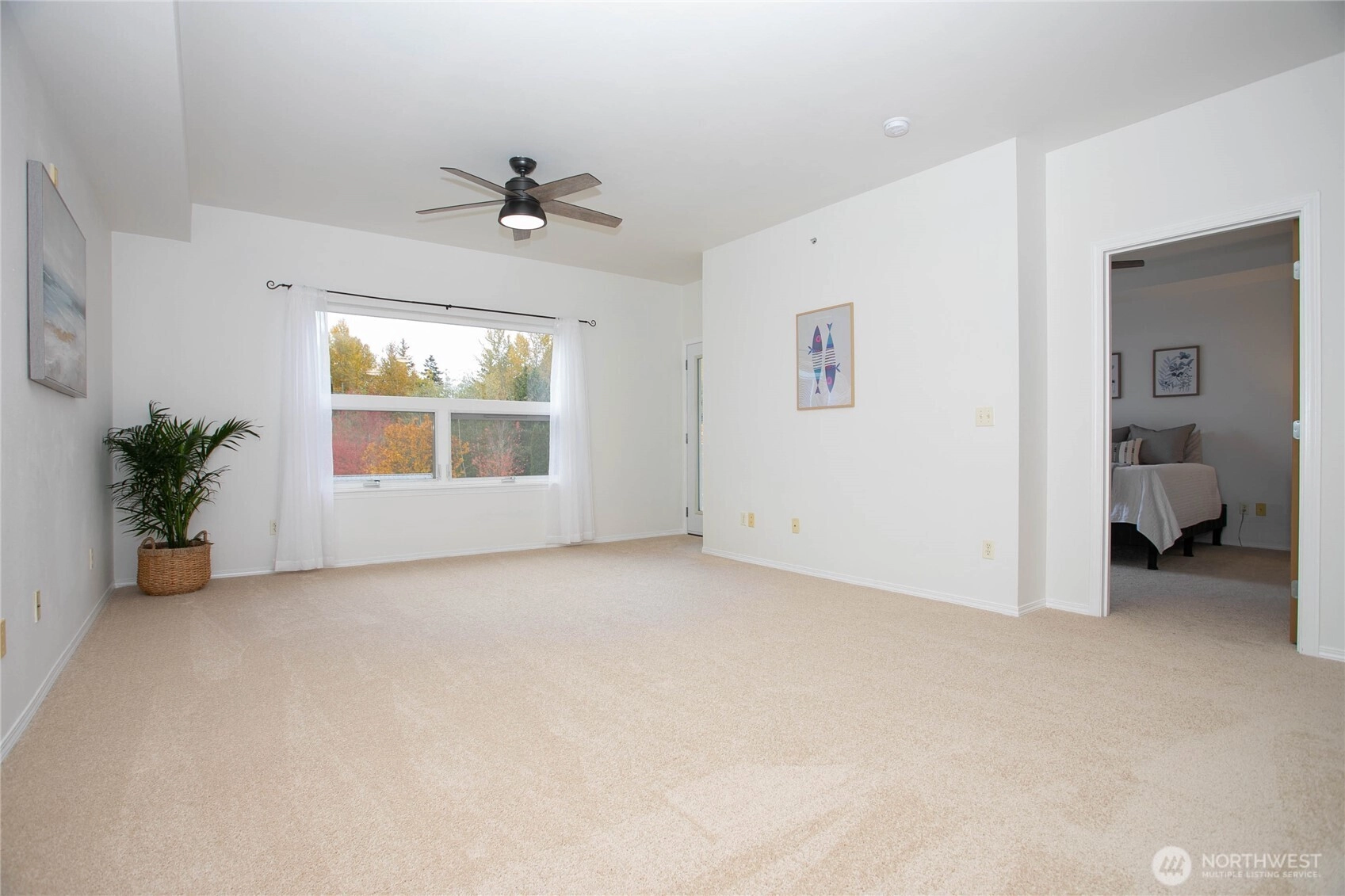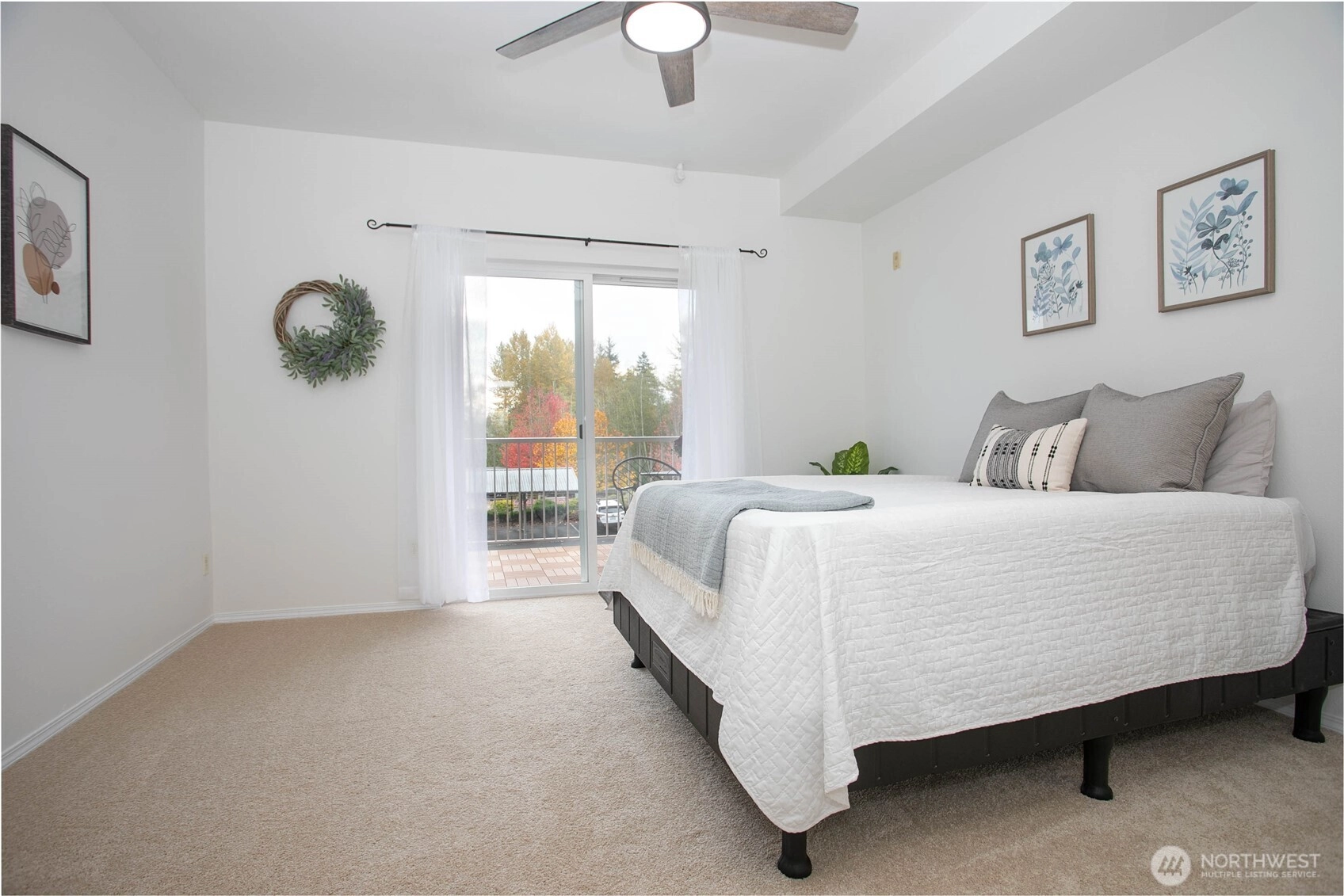 Light and bright and move-in ready! This one bedroom condo has brand new carpet and stainless kitchen appliances, new paint and other recent upgrades such as updated ceiling lights/fans, portable A/C unit, and a newer washer/dryer combo. This spacious unit lives large with high ceilings, generously-sized windows, a walk-in closet, private balcony and bonus/storage room that could be used as an office. Enjoy the bright southern exposure year round from your private balcony. Conveniently located within minutes to Trader Joe's, Food Co-op, Costco, Whatcom Comm College. Perfect for a personal residence, but can also be rented as an investment property! Beautifully landscaped grounds and fully-equipped clubhouse with gym and entertaining space.