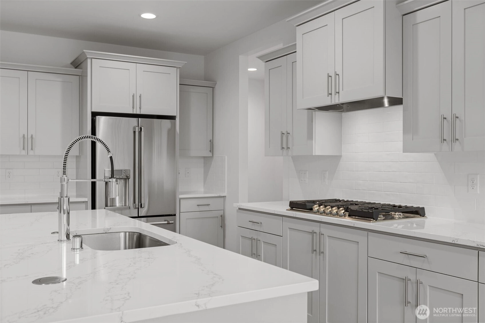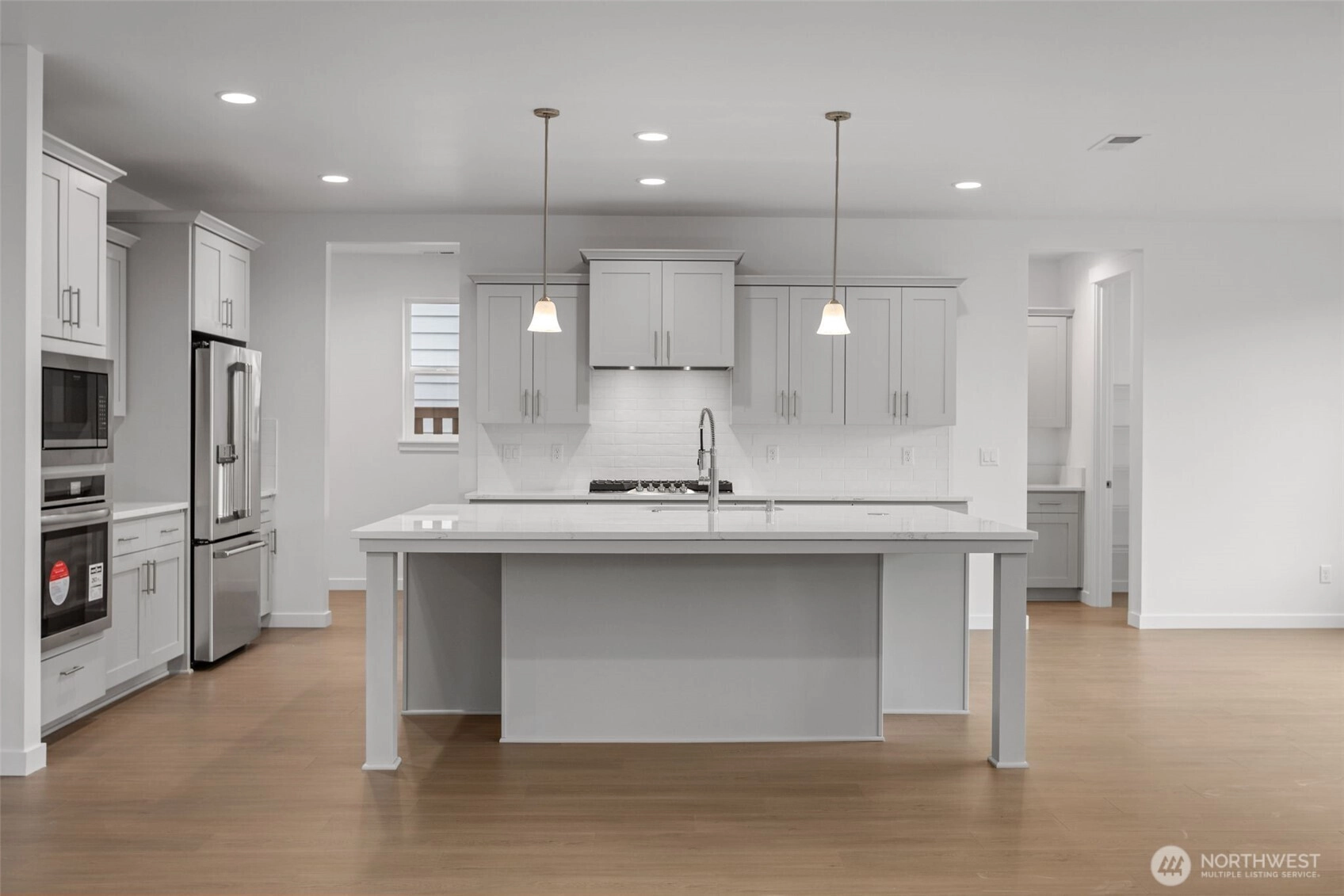 Discover your dream home in Tehaleh! This stunning 2822 plan features breathtaking views, stylish design, and modern living—great for relaxing or entertaining. It includes a main-level guest suite with bath, an open-concept great room, and a gourmet kitchen with an oversized island, built-in oven, microwave, and gas cooktop, plus a convenient prep kitchen with sink. Upstairs includes a luxurious primary suite, three additional bedrooms, spacious loft, a utility room, and a shared bath with double sinks. The rear covered patio offers year-round outdoor living. Located in Sumner-Bonney Lake Schools. Move-in ready with special financing rates available!