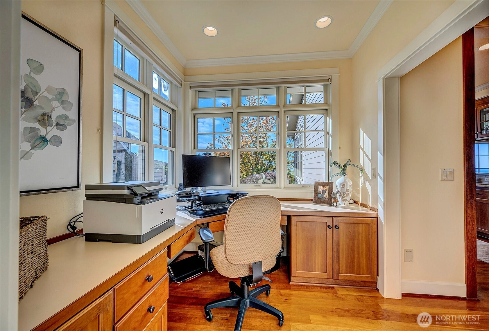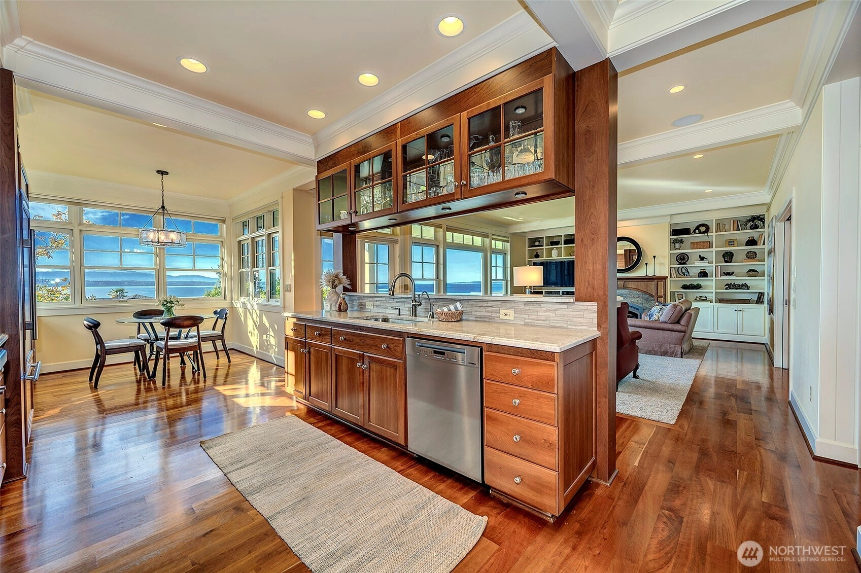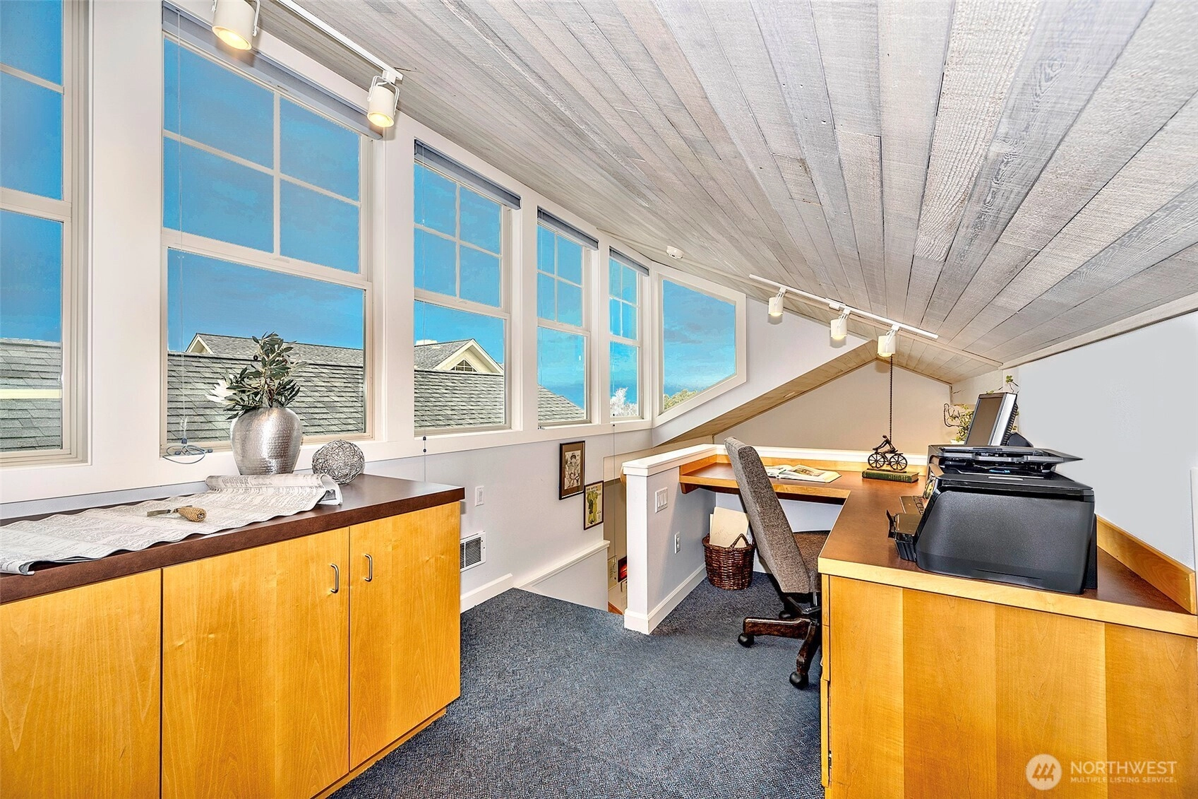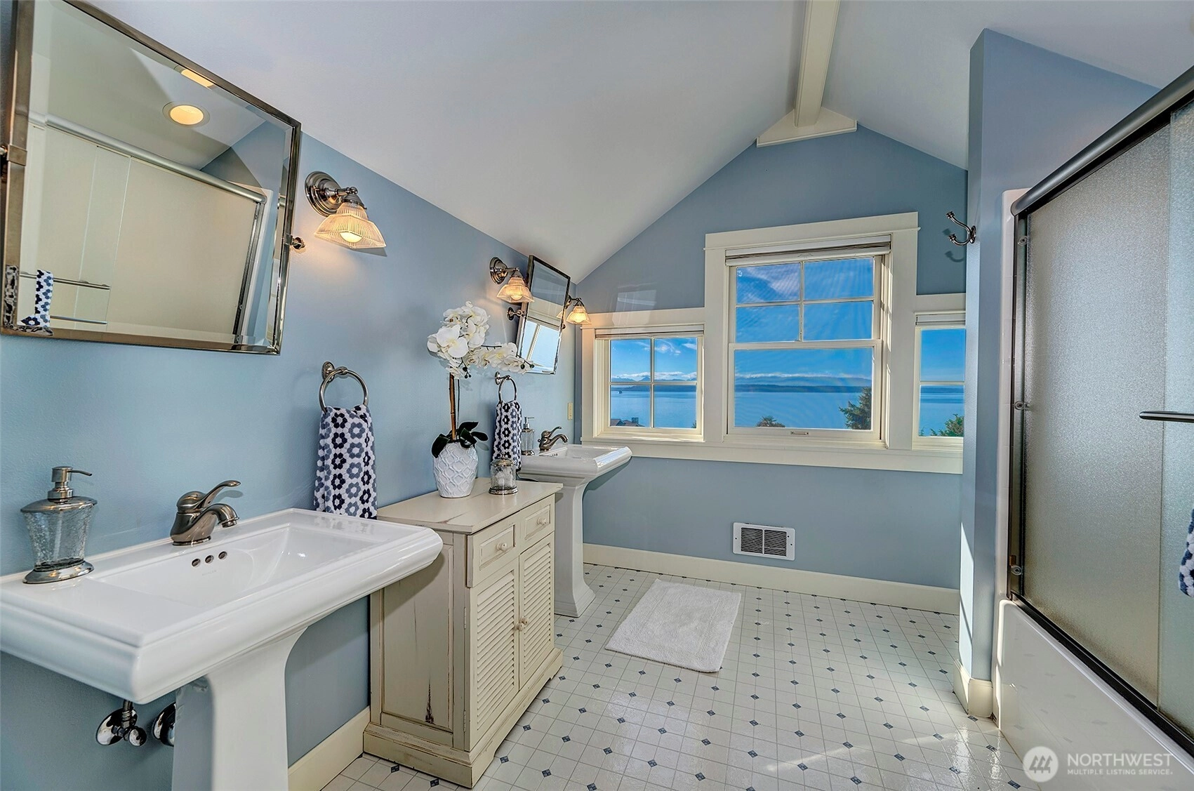 Perfectly situated in one of Edmonds' most desirable locations, this home offers a rare blend of privacy, charm, and walkability. Just moments from the beach and downtown’s vibrant shops and restaurants, it provides the ease of main-floor living with sweeping views of the Sound, Olympics and the Strait. Built in 2003 with thoughtful preservation of the attached 1901 cottage, the property includes a beautifully reimagined artist’s studio with loft and ¾ bath—an inspiring creative space or easily converted MIL, or ADU. Set back from the street, the home is enveloped in lush, ever-changing gardens that bloom in rhythm with the seasons. This peaceful, private setting offers a rare coastal retreat blending timeless character with modern comfort.