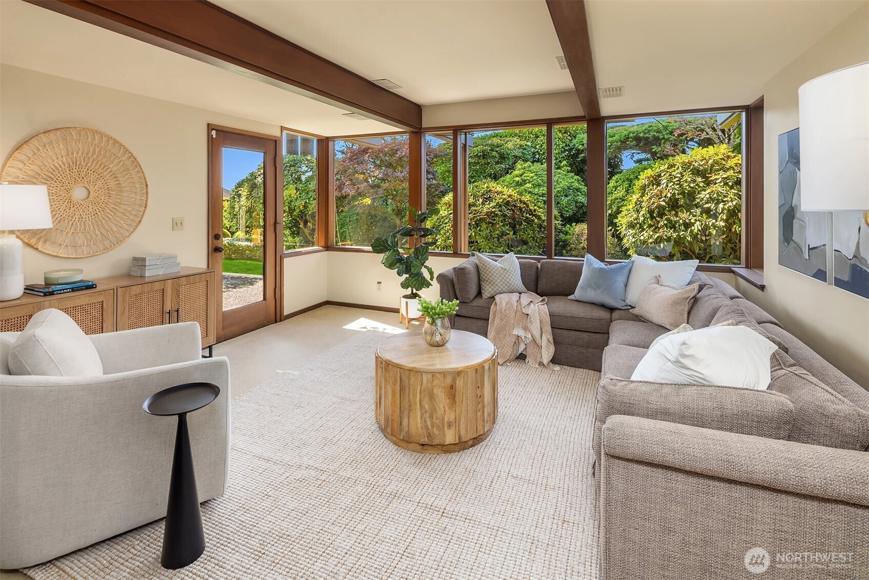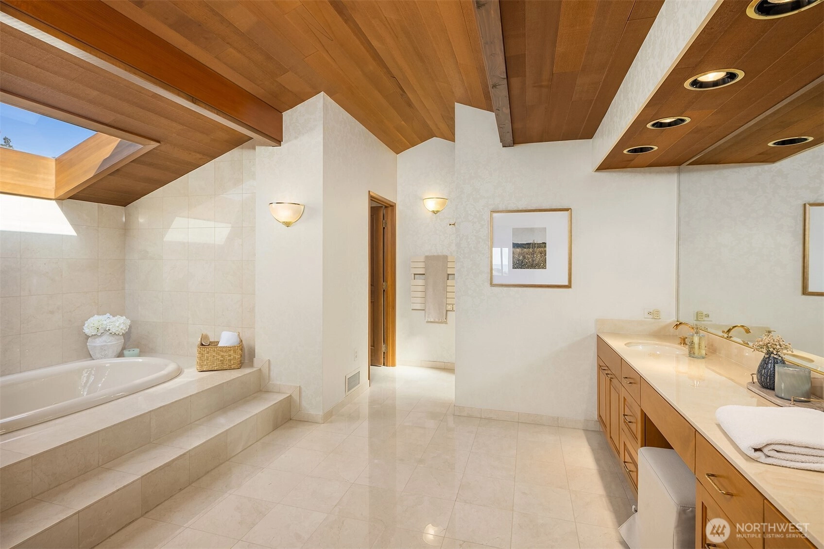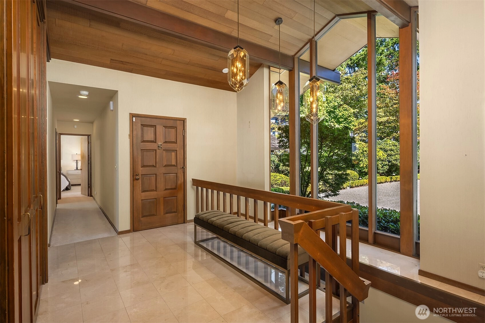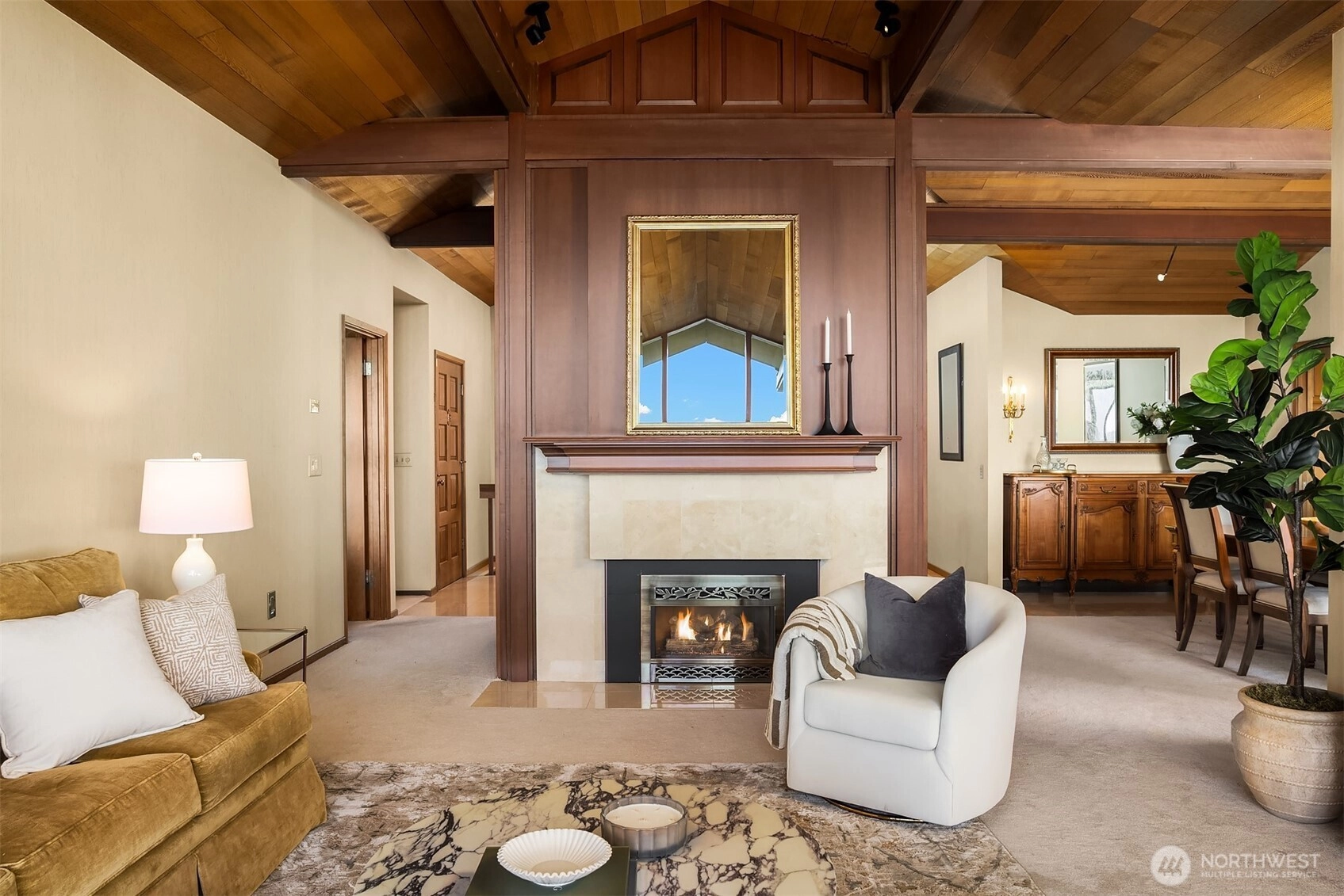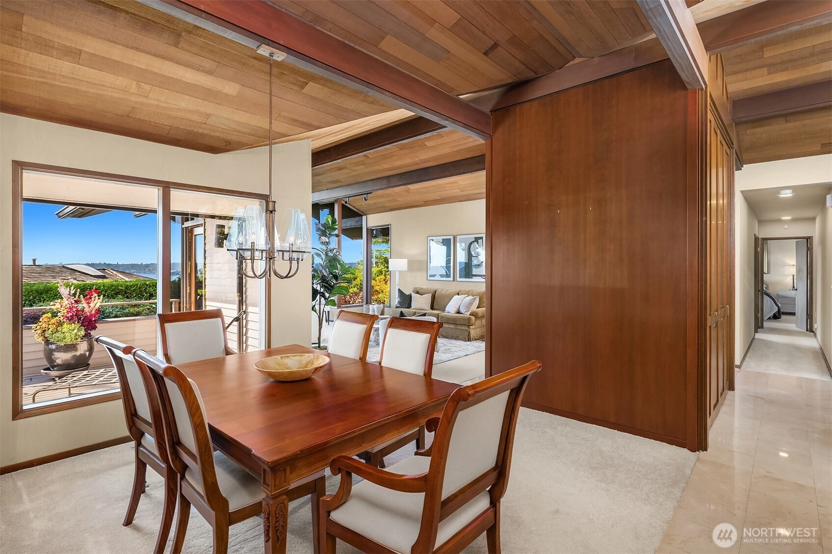 Northwest Modern Meets Panoramic Grandeur. First time to market architectural treasure in Clyde Hill, crafted by renowned Ralph Anderson, exemplifying modernist Northwest style. Situated in Clyde Hill's most private cul-de-sac, the home rests on a flat, oversized, secluded lot of 19,498 square feet, surrounded by mature landscaping. This custom-built residence offers 3,437 square feet of harmonious living with its extensive use of wood, exposed framing, and broad windows celebrating the natural beauty, framing captivating views of the Seattle skyline, Bellevue, Mount Rainier, and the Olympic Mountains. Enjoy seamless indoor-outdoor living, while taking in breathtaking grand sunset views…the perfect blend of sophistication and tranquility.