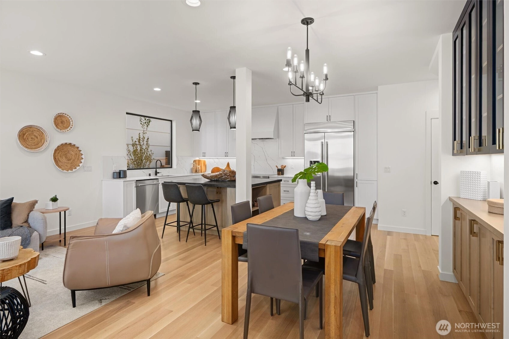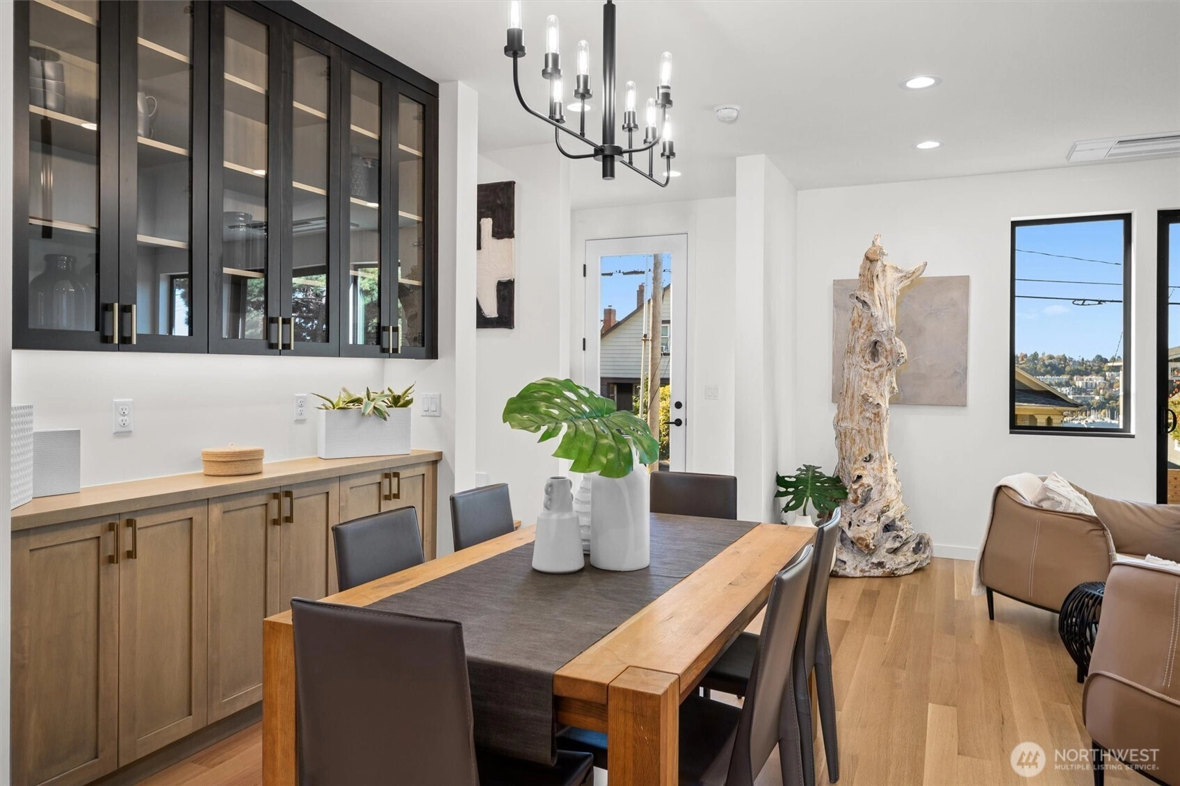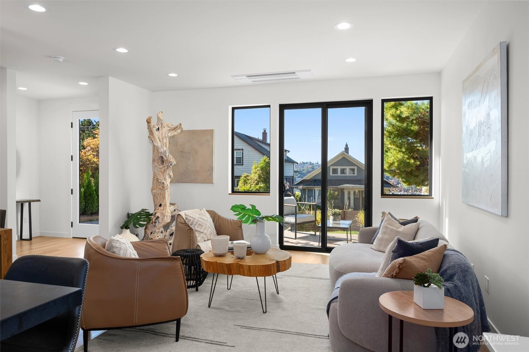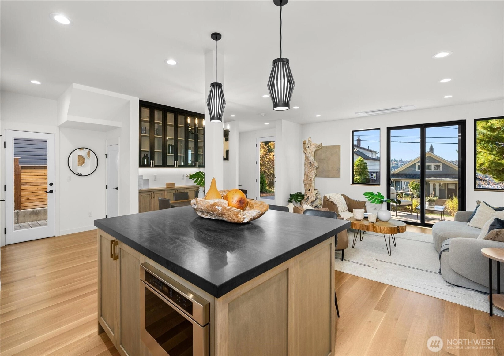 On a quiet residential street! Live beautifully in this Capitol Hill residence by Pivotal Homes, featured in Architectural Digest. Every detail tells a story—from white oak floors & architectural lighting to walls of glass. The chef’s kitchen shines at the heart of the home features premium appliances, a waterfall island, & a formal dining room w/built-in cabinetry—perfect for entertaining. Glass doors open to a private patio for long summer dinners. Upstairs, the primary suite offers a spa-worthy bath & a covered terrace w/built-in heaters & sweeping views of Lake Union, Gas Works Park & the city skyline. A view-filled office, two additional bedrooms, and private parking complete this modern urban retreat. Ask about our 10K lender promo!