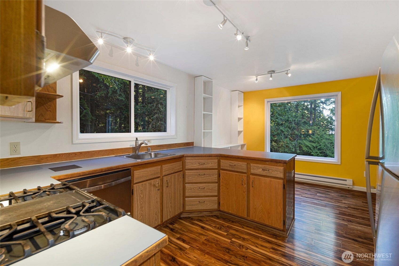 Tucked away in a serene and private wooded neighborhood, this charming two-story home offers the perfect blend of seclusion and comfort, yet is conveniently minutes away from the Town of Friday Harbor. Surrounded by tall cedar trees, and the sounds of nature, this house features a sizeable yard, two bedrooms, and 1 1/2 baths. Inside, the main floor welcomes with a warm and inviting living space including a cozy propane woodstove, functional kitchen, and a convenient half bath. Large windows throughout the home offer lovely forest and peek a boo water views. Upstairs, you'll find both bedrooms and a Jack & Jill full bath. With its quiet setting, thoughtful layout, and intimate size, this home is ideal for anyone seeking a tranquil retreat.