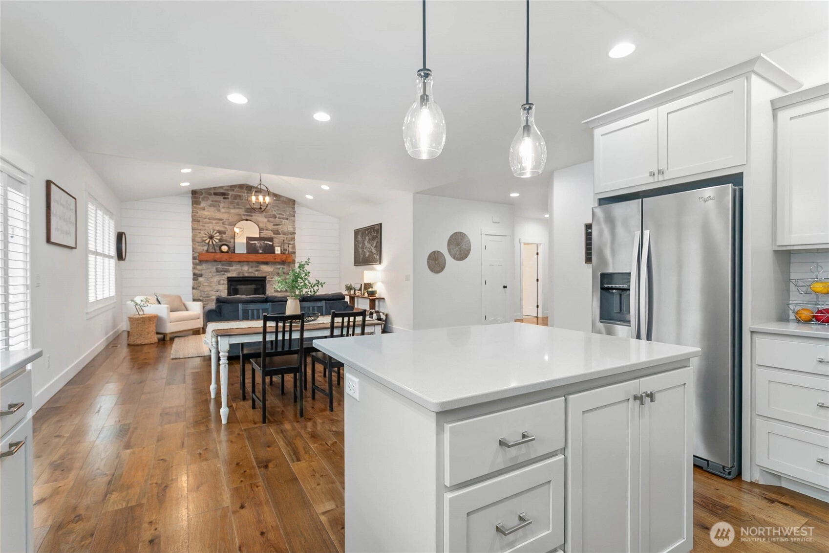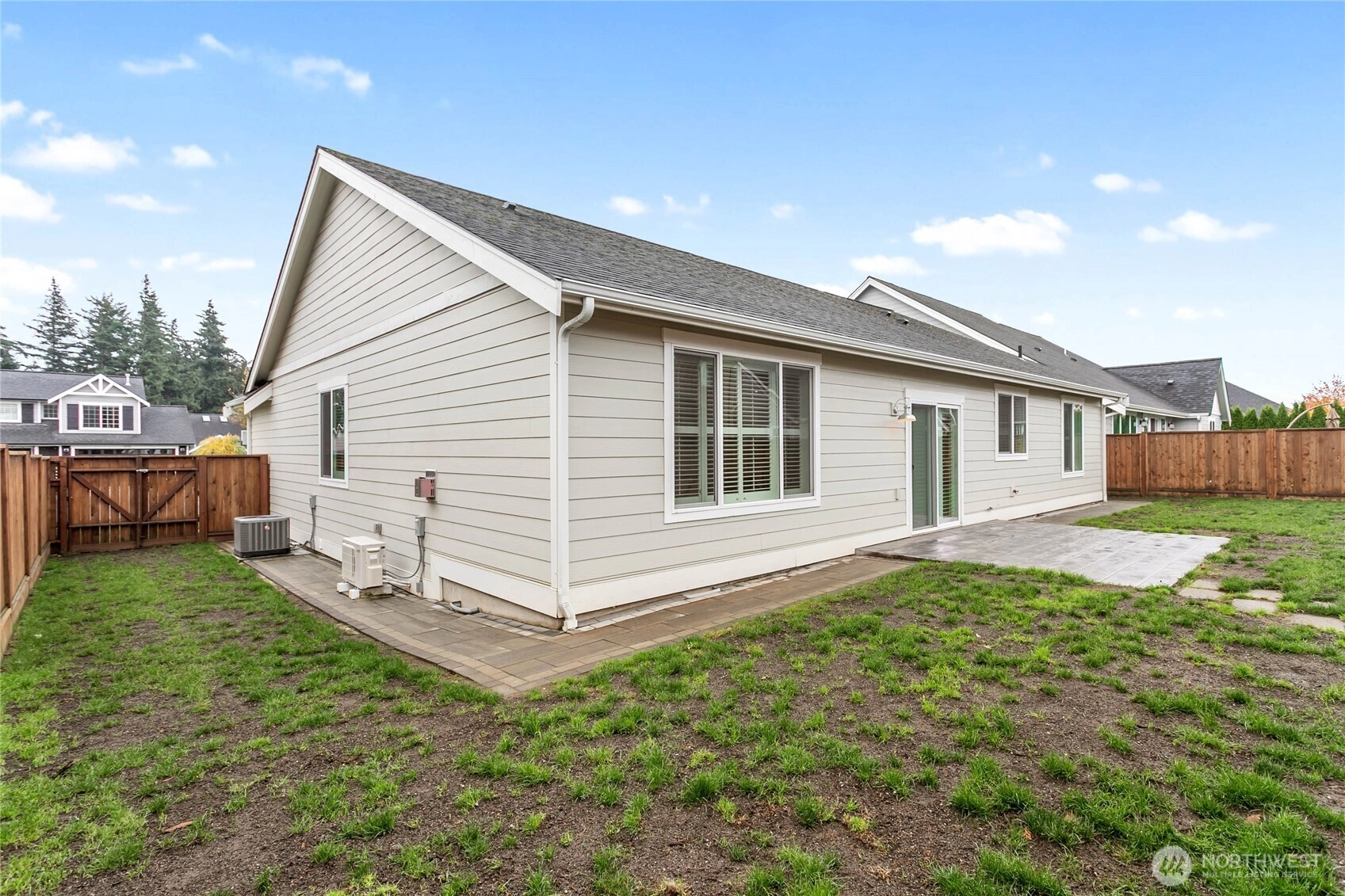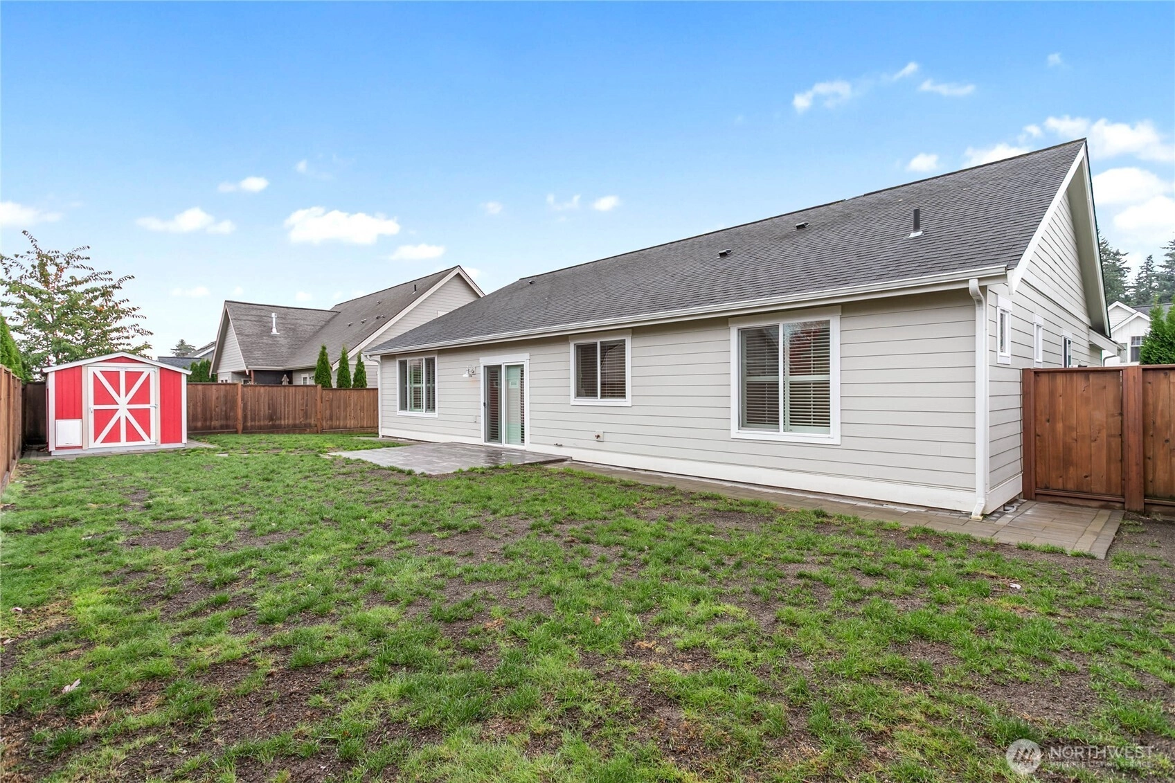 Well maintained, one owner home originally built by Pacific Edge Builders. 2,108 sf open concept rambler w/ 4 bed, 2 bath plus bonus room. Originally built w/ well appointed custom finishes incl. quartz countertops, engineered hardwood, & ceramic tile in bathrooms. The spacious kitchen boasts custom cabinetry, tile backsplash, and stainless appliances. The primary suite offers a walk-in closet, soaking tub, and separate shower. Addl features include vaulted ceilings, gas fireplace, forced air A/C with additional bonus room mini split for extra temperature zone control. Stamped concrete patio, & concrete perimeter apron for ease of ext. maintenance. Fully finished utility shed ideal for office, playhouse, or storage. Vacant & move in ready!