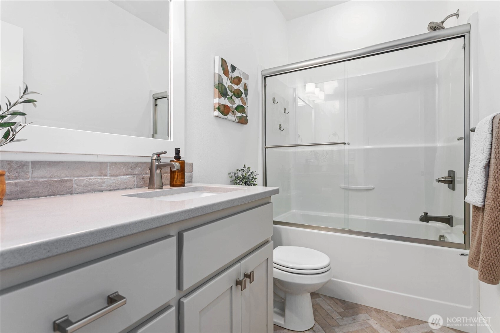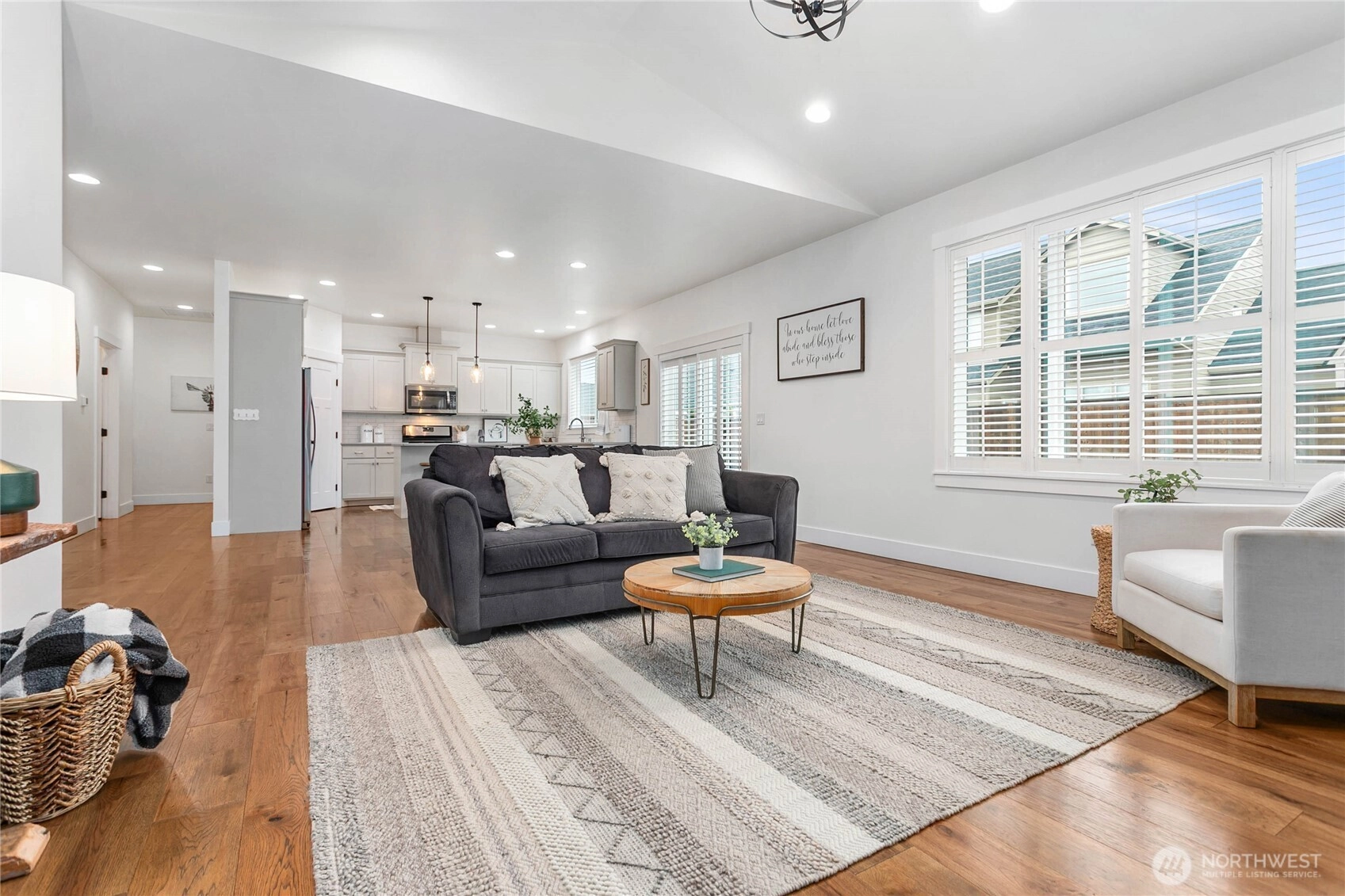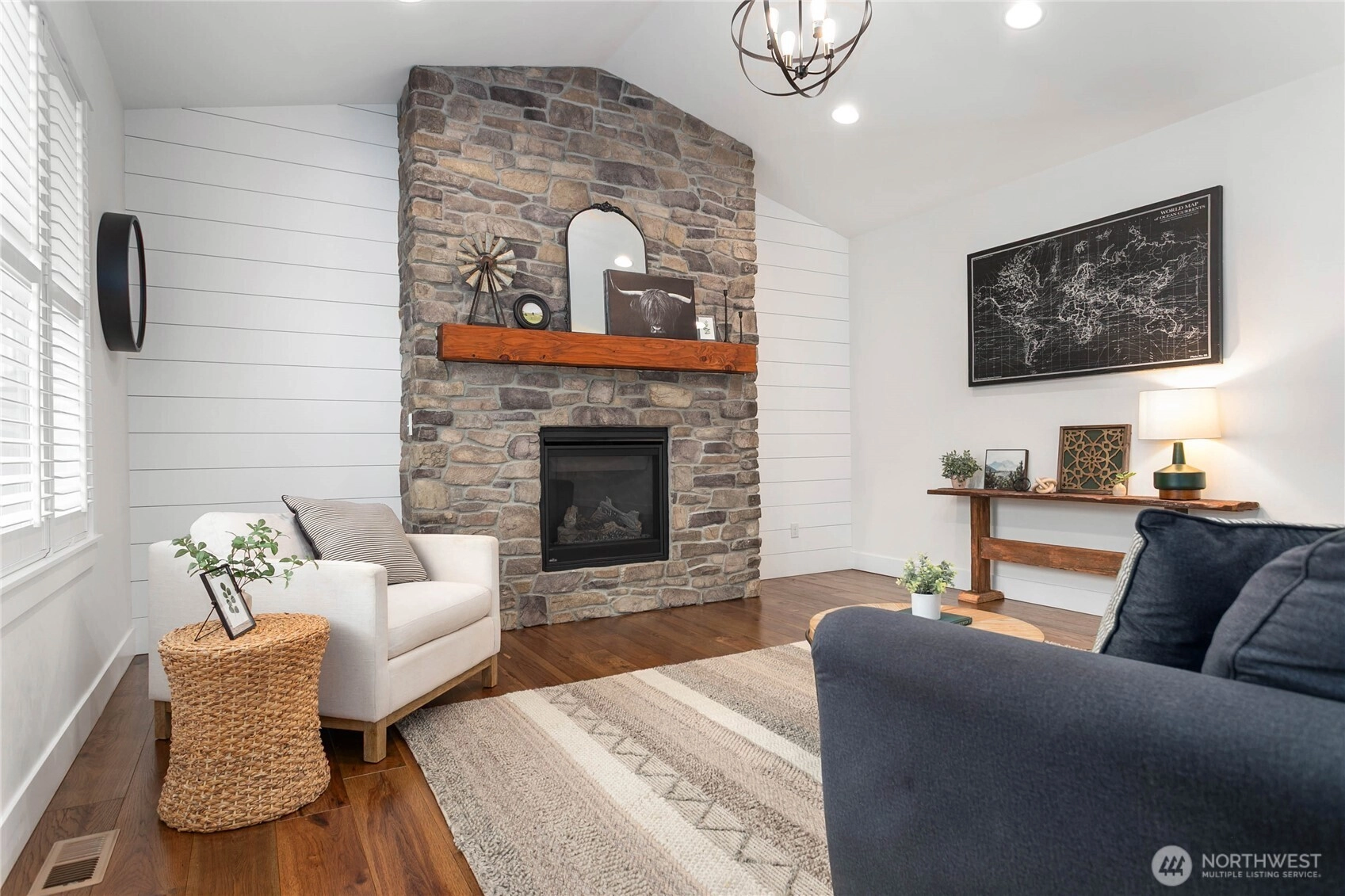 Well maintained, one owner home originally built by Pacific Edge Builders. 2,108 sf open concept rambler w/ 4 bed, 2 bath plus bonus room. Originally built w/ well appointed custom finishes incl. quartz countertops, engineered hardwood, & ceramic tile in bathrooms. The spacious kitchen boasts custom cabinetry, tile backsplash, and stainless appliances. The primary suite offers a walk-in closet, soaking tub, and separate shower. Addl features include vaulted ceilings, gas fireplace, forced air A/C with additional bonus room mini split for extra temperature zone control. Stamped concrete patio, & concrete perimeter apron for ease of ext. maintenance. Fully finished utility shed ideal for office, playhouse, or storage. Vacant & move in ready!