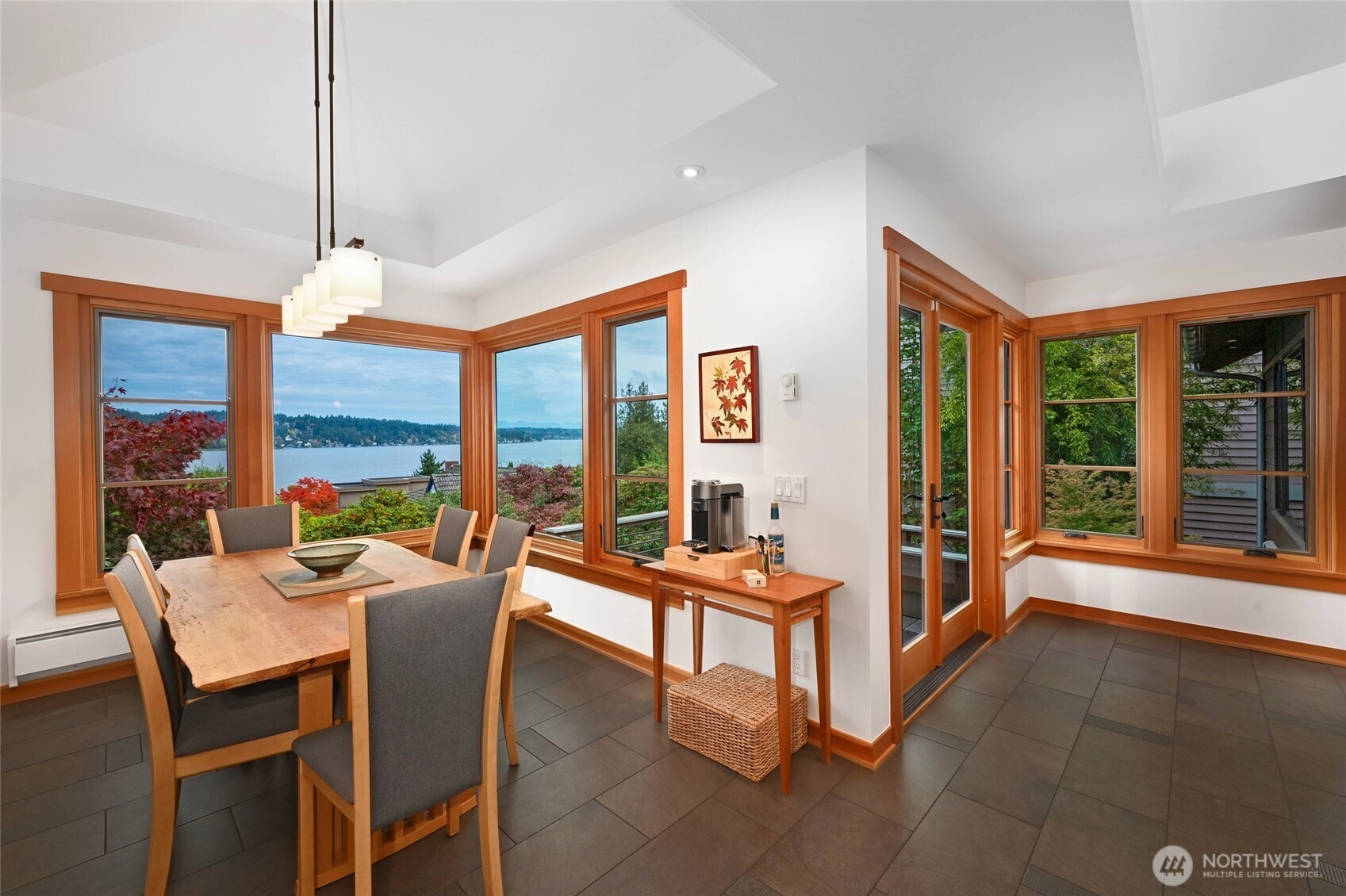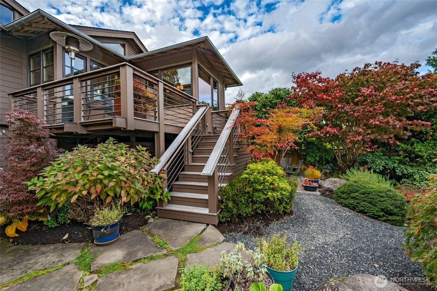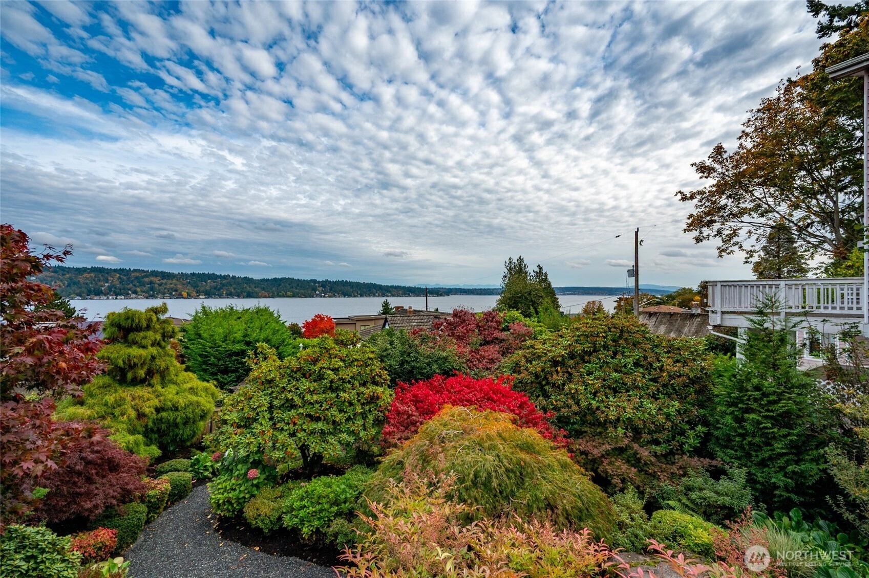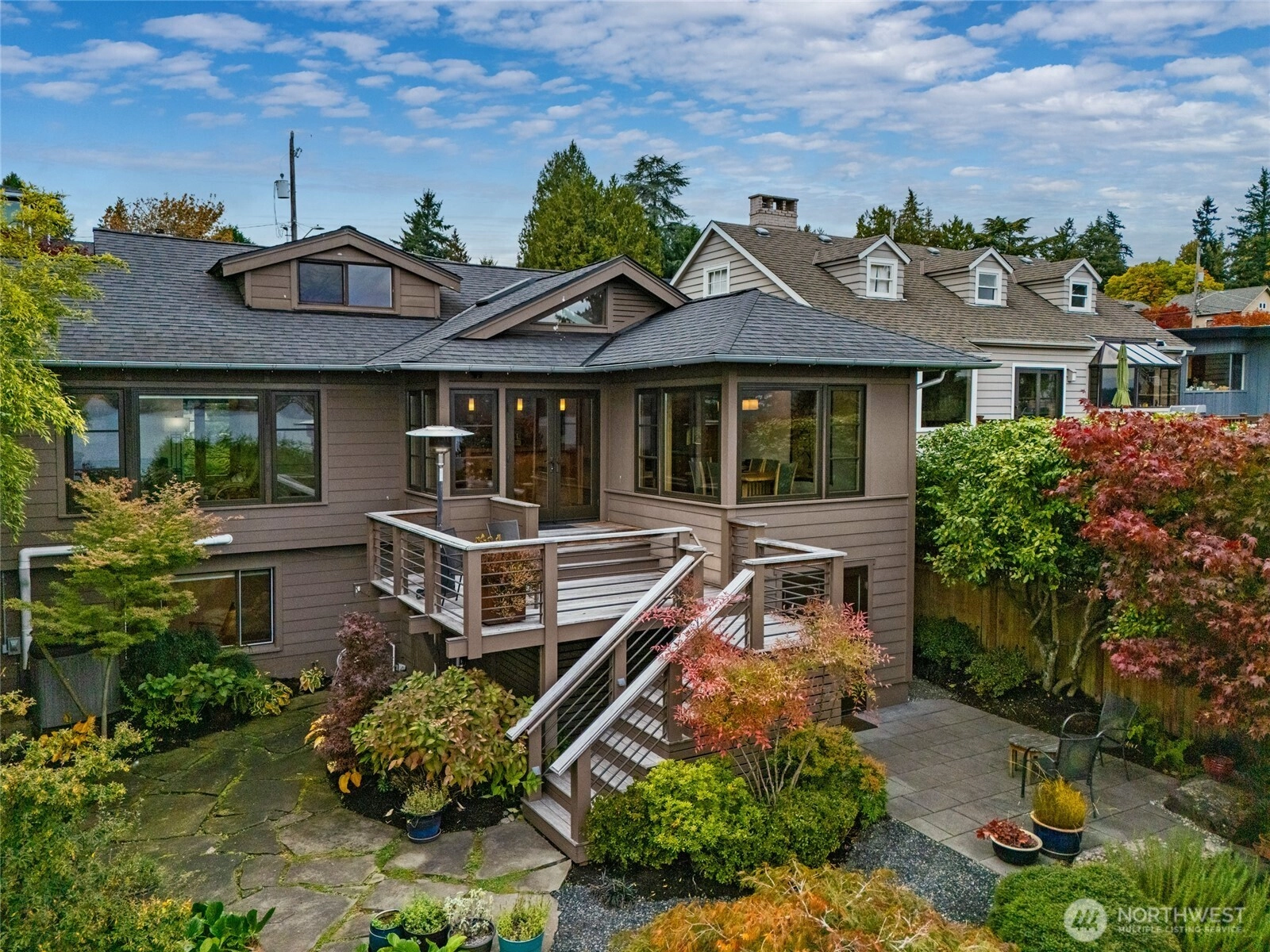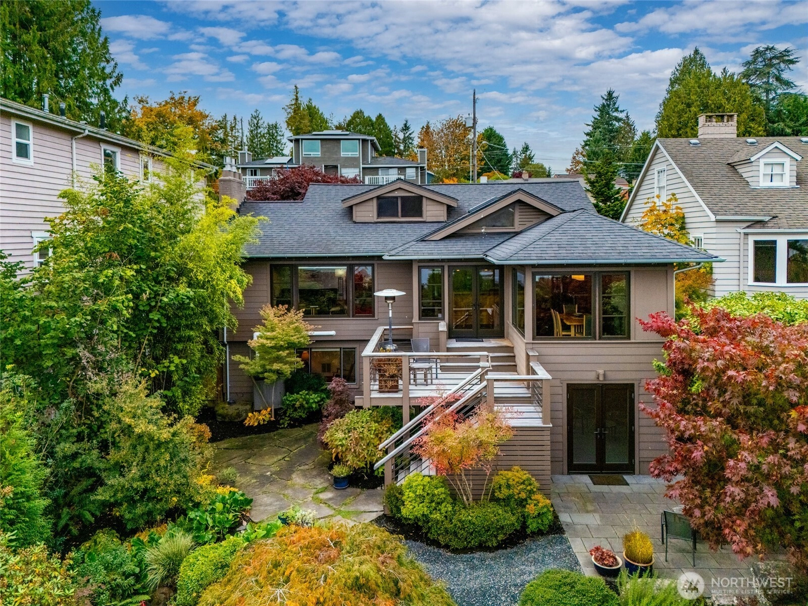 Welcome to this NW Contemporary refined work of art transformed by an Asian-inspired remodel with fir trim, cathedral ceiling and skylights to bring in light. Modern kitchen opens to a view deck for relaxed indoor/outdoor living. Be captivated by sweeping lake & mountain views and gorgeous Japanese gardens designed by Al Kubota and current owners, showcasing vibrant colors in every season. Main floor has primary bedroom and flexible 2nd bed/office space. Finished spectacular view attic. Creative spaces abound! Downstairs is a rec room, non-conforming bedroom, heated studio/shop for gear, projects. Private alley below for boat/camper. Near B-G trail, the park, bus to Children’s. An in-city retreat blending serenity, quality and lifestyle!