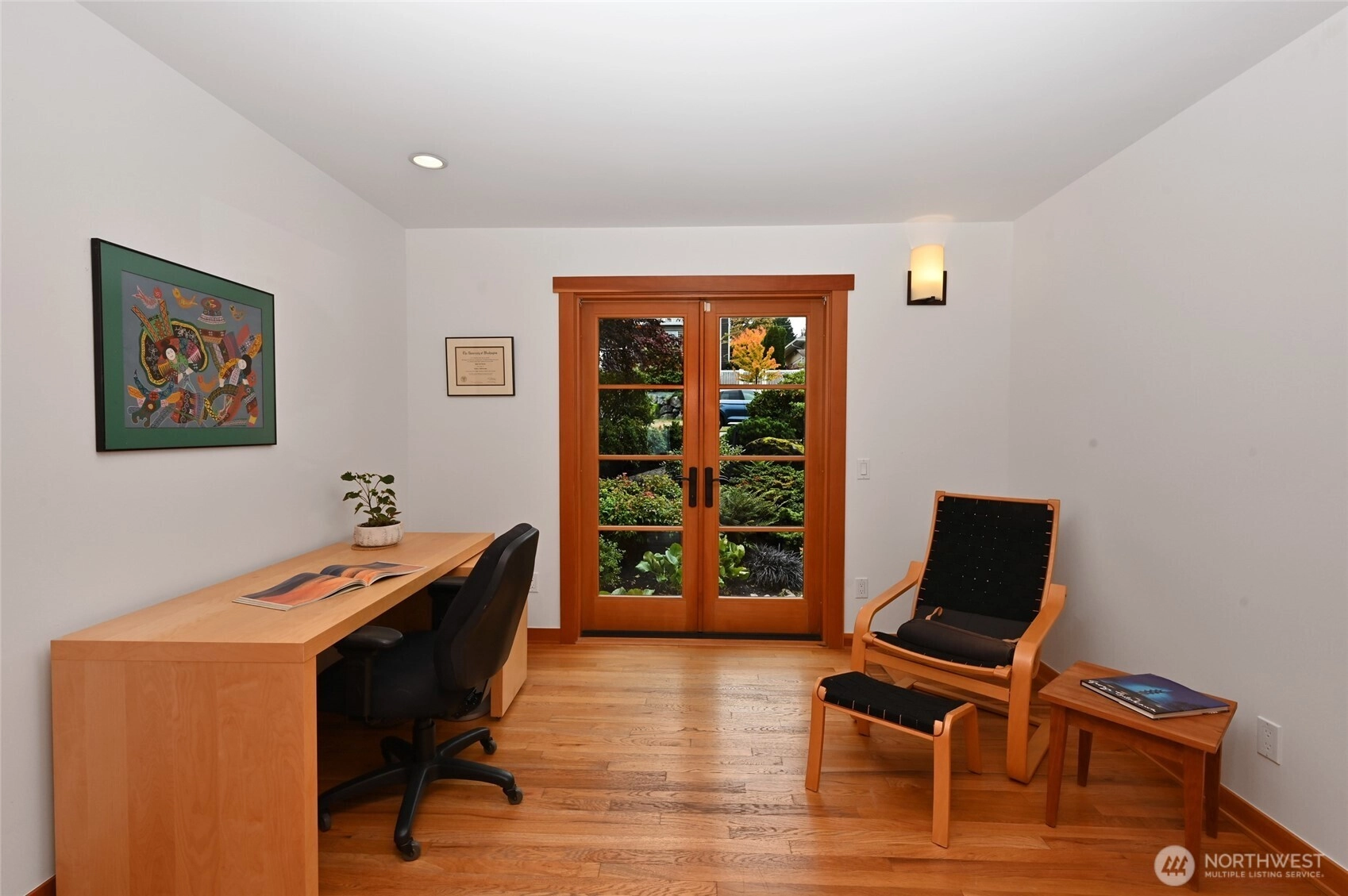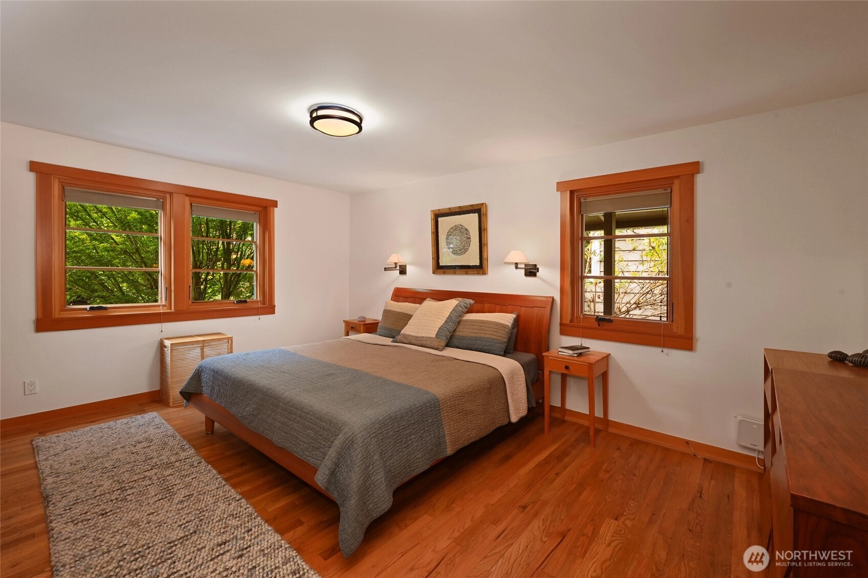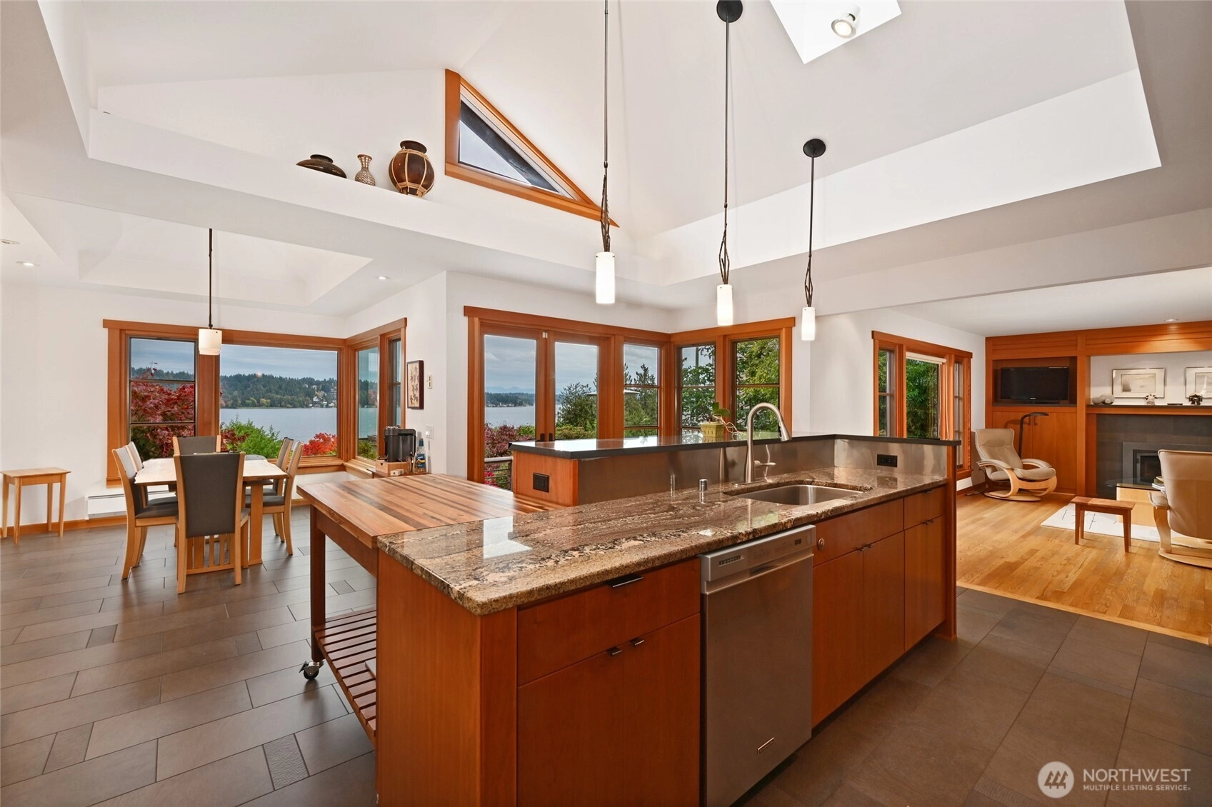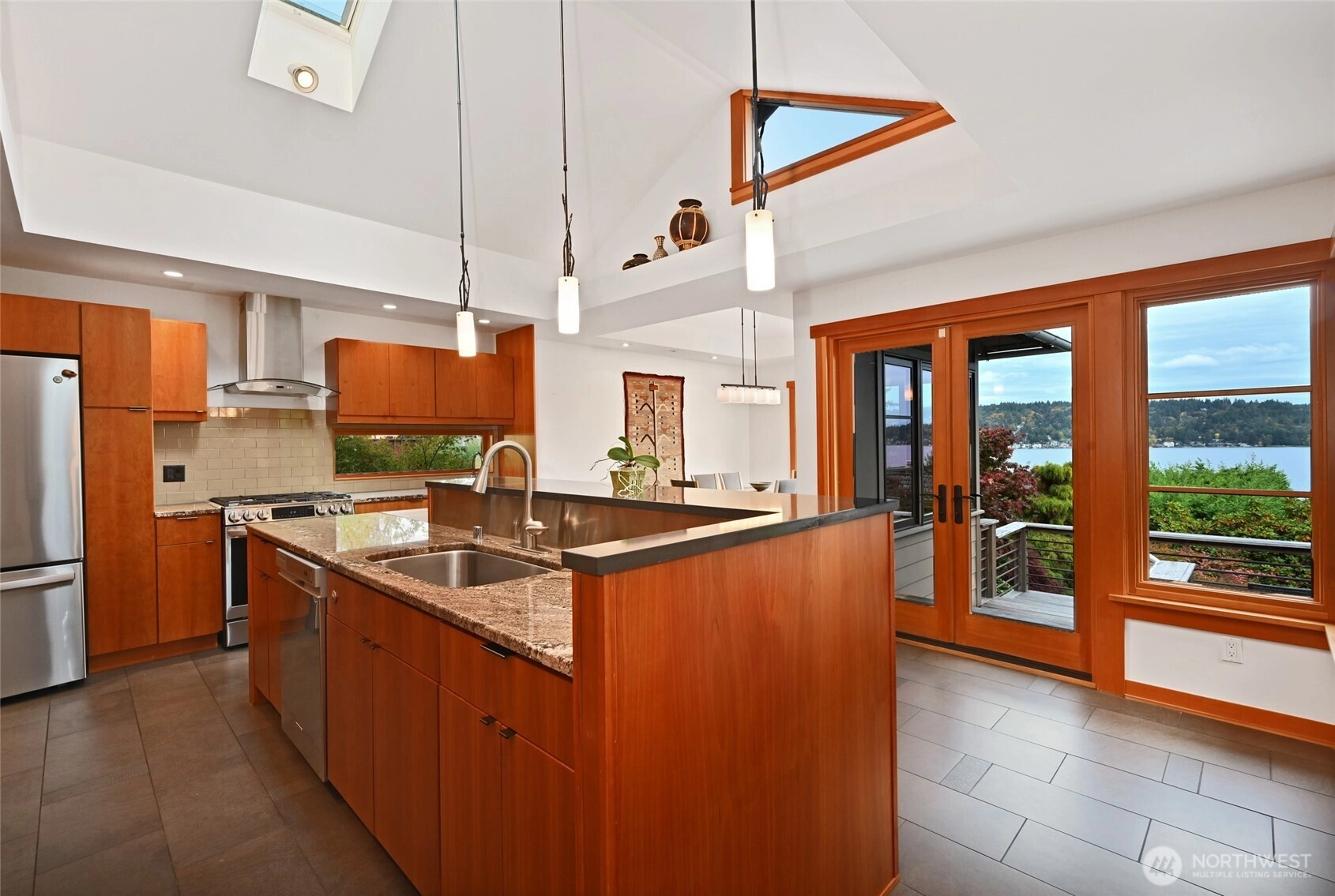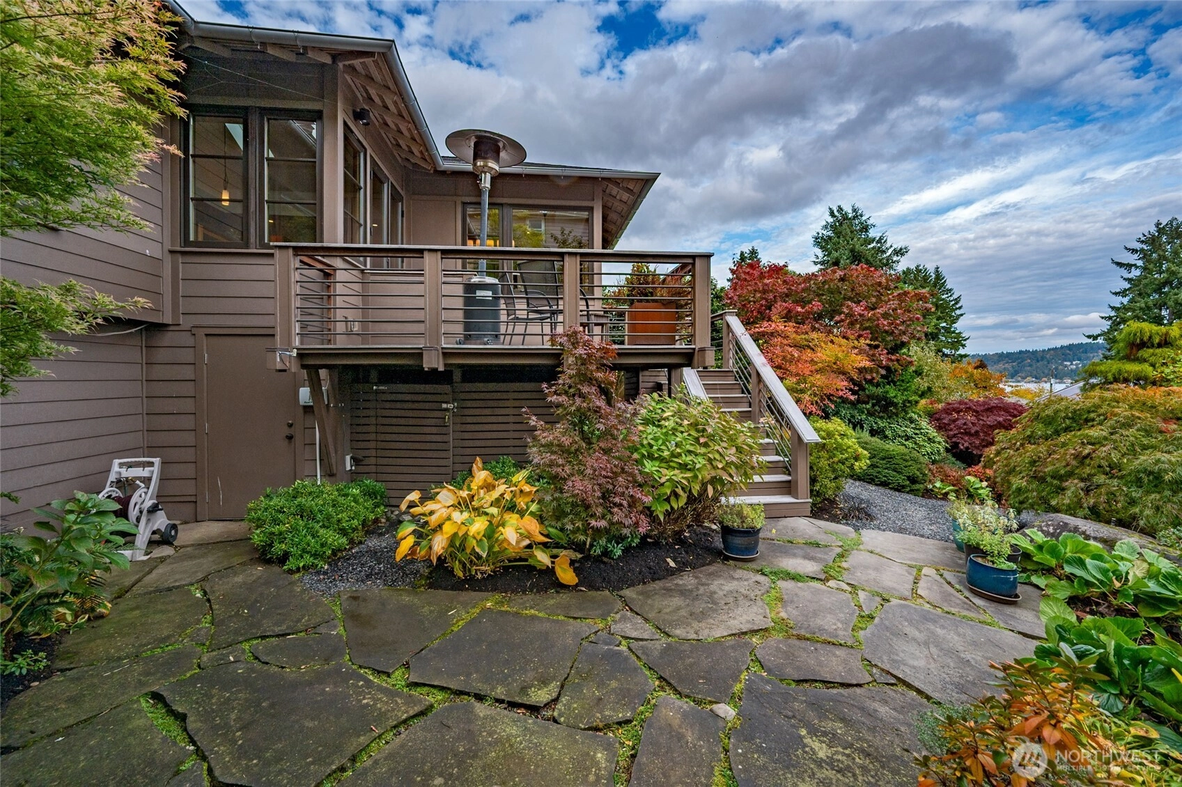 Welcome to this NW Contemporary refined work of art transformed by an Asian-inspired remodel with fir trim, cathedral ceiling and skylights to bring in light. Modern kitchen opens to a view deck for relaxed indoor/outdoor living. Be captivated by sweeping lake & mountain views and gorgeous Japanese gardens designed by Al Kubota and current owners, showcasing vibrant colors in every season. Main floor has primary bedroom and flexible 2nd bed/office space. Finished spectacular view attic. Creative spaces abound! Downstairs is a rec room, non-conforming bedroom, heated studio/shop for gear, projects. Private alley below for boat/camper. Near B-G trail, the park, bus to Children’s. An in-city retreat blending serenity, quality and lifestyle!