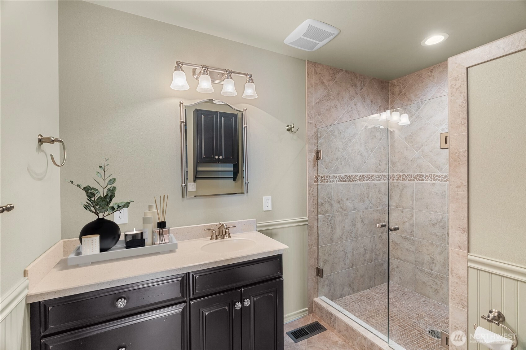 Perched on Broadway Hill with views of Aberdeen and the Chehalis River, this 4 bed, 2.75 bath, 2,545 sq ft home blends style and comfort. Remodeled in 2022 and meticulously cared for, it offers updated flooring throughout, a light-filled living room with a gas fireplace, and a beautifully finished kitchen with granite counters and custom cabinetry. The primary suite feels like a retreat with a spa-style ensuite, drop-in soaking tub and private deck access. The lower level adds flexibility with a family/bonus room, office, bedroom and utility room. An attached garage with shop and two driveways provide ample parking. Outside, the backyard is perfect for entertaining with manicured landscaping, irrigation system & a charming mini doggy condo.