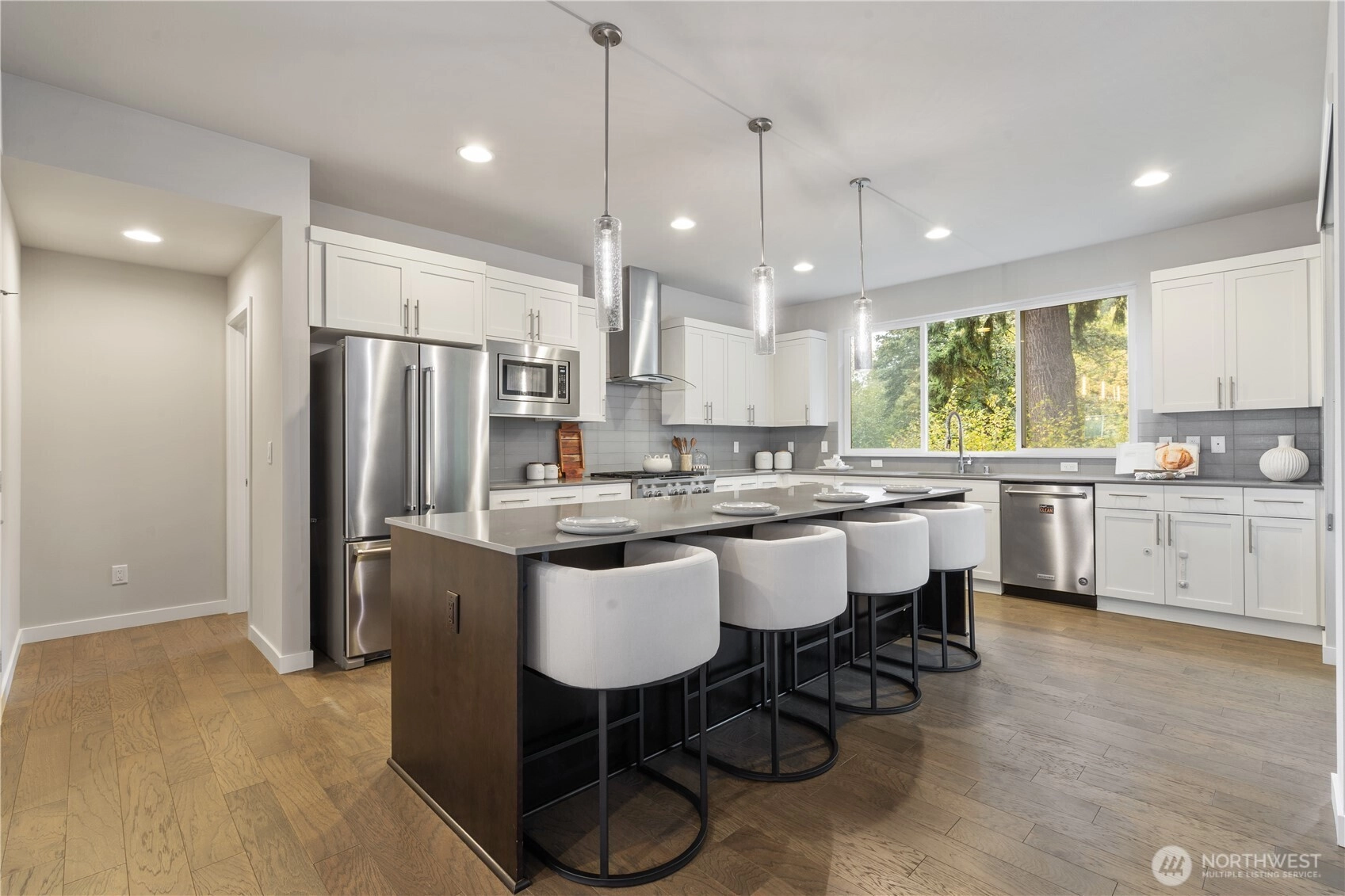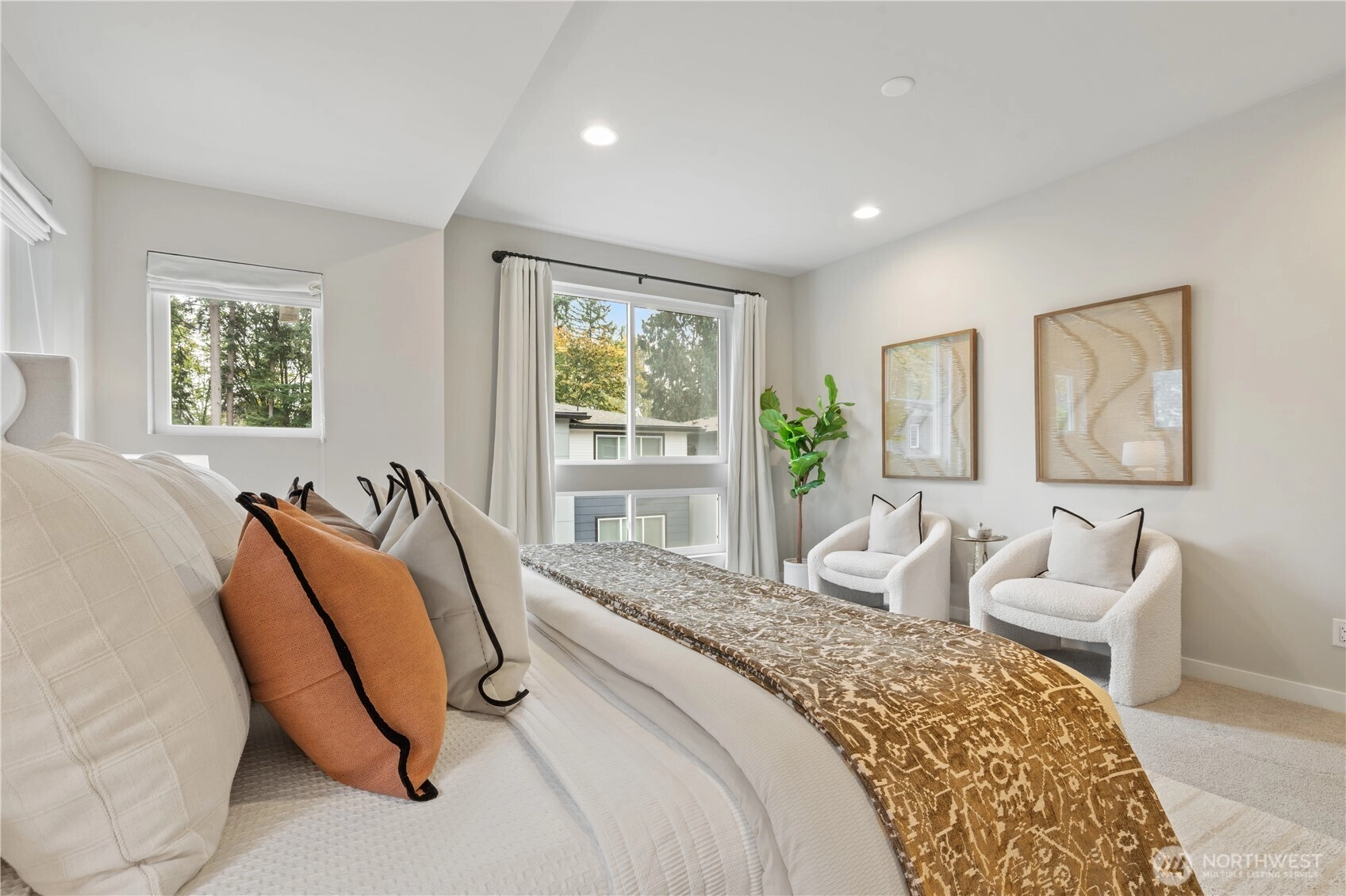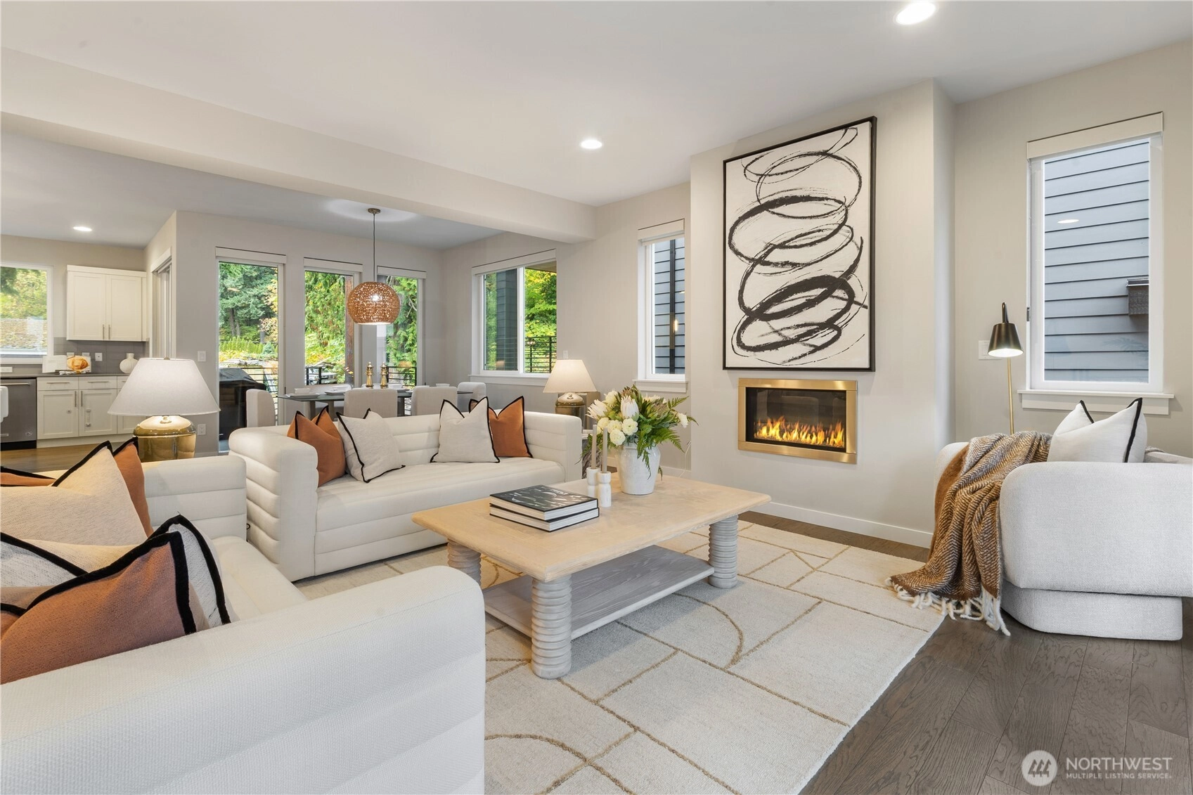 Welcome to this stunning 2020 built NW contemporary in Newcastle’s Taylor Ridge community. Soaring ceilings, walls of windows, and upscale finishes set the tone with hardwood floors, modern metal railings, and a cozy gas fireplace. 4 bedrooms include an upper-level primary suite with 5-piece bath and walk-in closet. A flexible lower level offers a 4th bedroom, bonus room, and ¾ bath, perfect for guests or multi-generational living. Enjoy two decks (one plumbed for gas) and a fully fenced yard. Minutes to trails, Newcastle Elementary, and retails etc. Exterior & yard maintenance all covered by HOA. Top-rated Issaquah School District. Freshly painted and pre-inspected! Move-in ready!