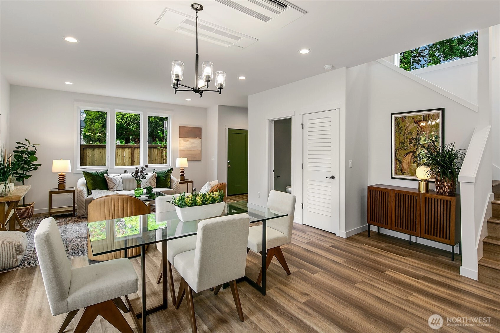 Idyllic Interurban Living! Beautiful, new home w light-filled spaces, high ceilings & modern finishes! Open concept living/dining create seamless flow. Stunning kitchen w quartz countertops, generous island, slow-close cabinetry, LG appliances. Large, fenced yard w patio surrounds you with green space. 3 good-sized bds, full ba, laundry on 2nd level. Striking primary suite w walk-in closet, luxe bath + flex room up (office, nursery, art studio, exercise room). Easy parking/storage right off kitchen. Sited on a designated 'Healthy Street’, across from park & one block to the Interurban Trail, this gem hits all the marks! Your dream home in a picturesque setting - close to dining, shopping, transit, freeways.